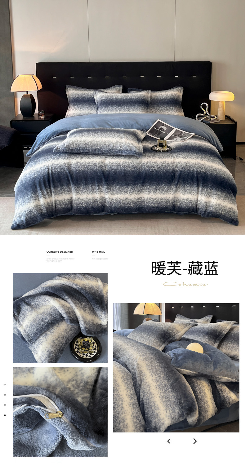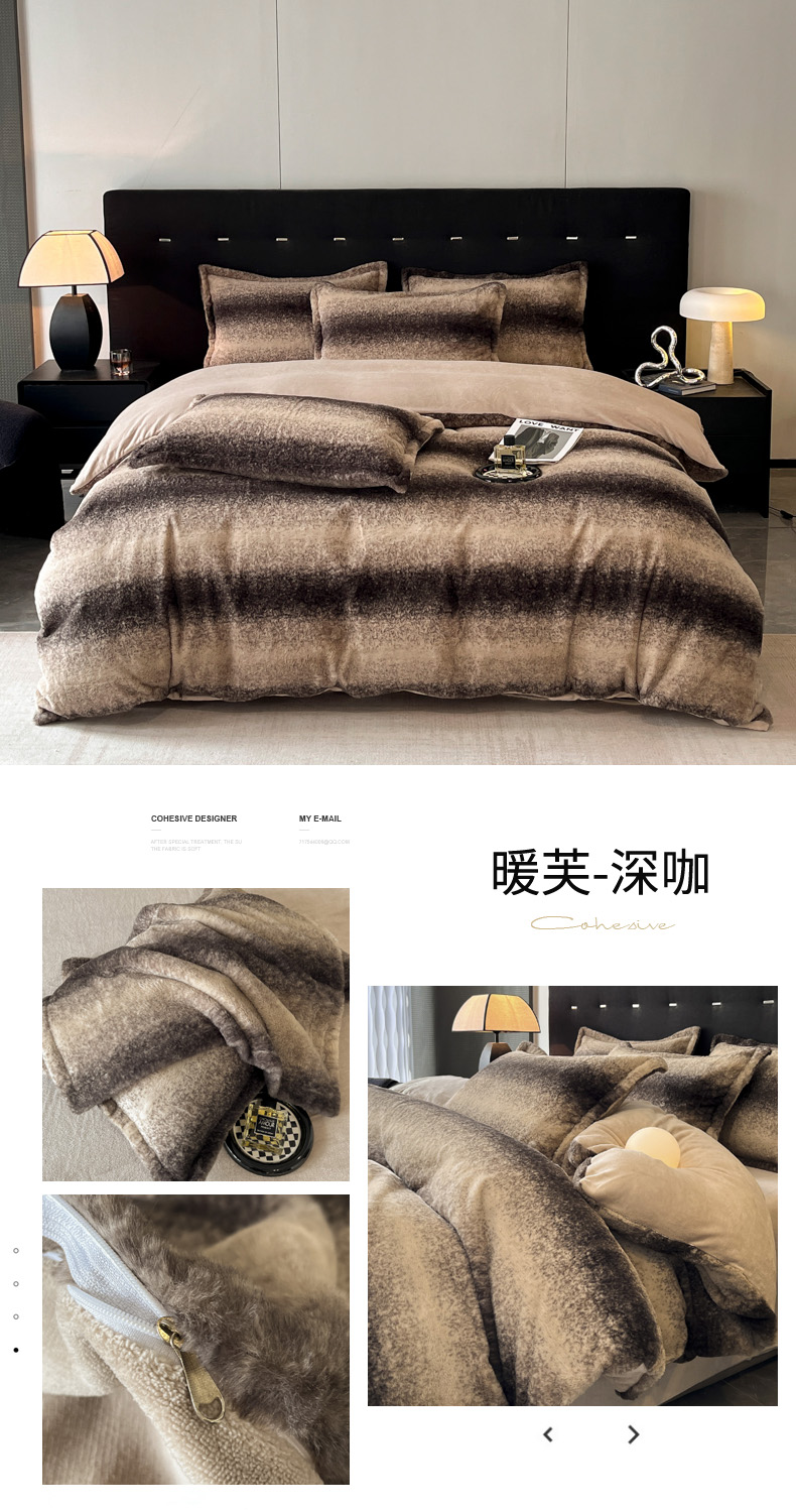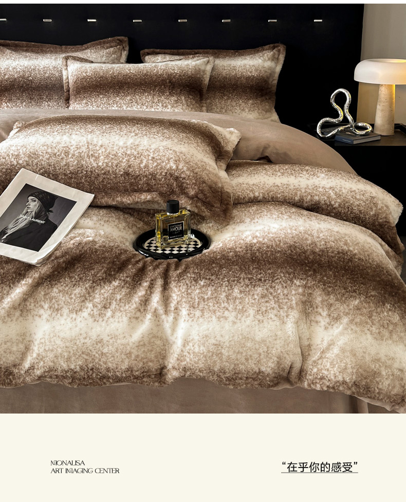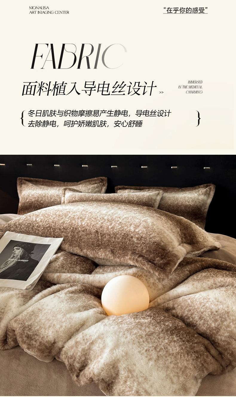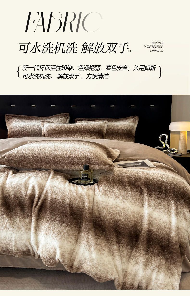 当前位置: 91家纺网 > 商品网购 > 床品套件 > 四件套 > 兔毛绒四件套 > 慕尚家纺 2025新款高端亲肤舒适暖芙兔毛四件套 暖芙-白调咖