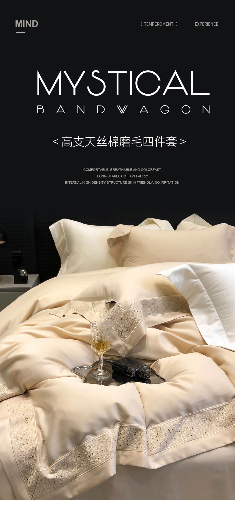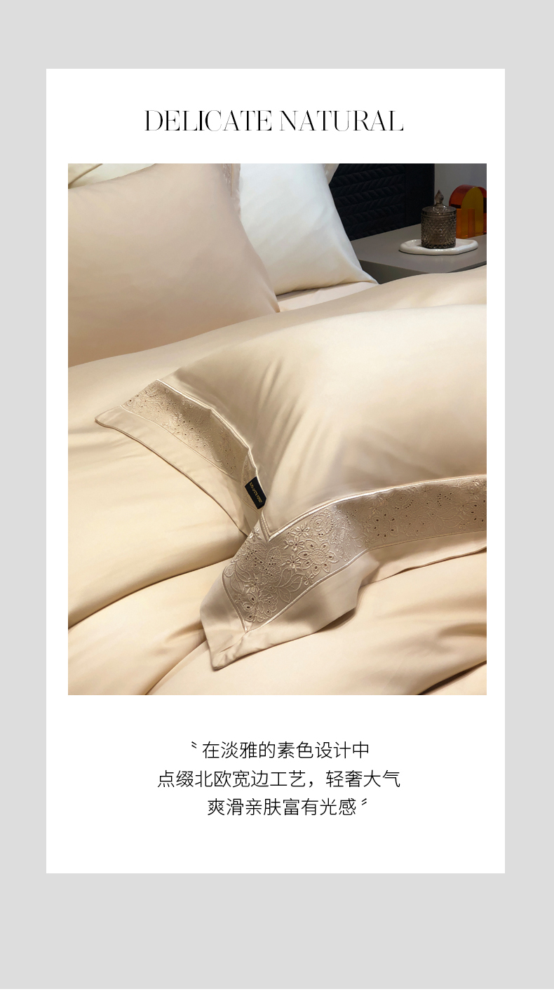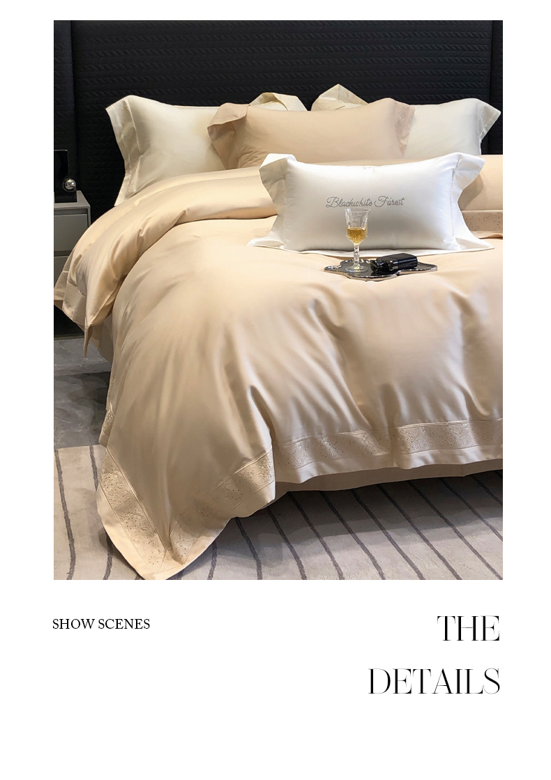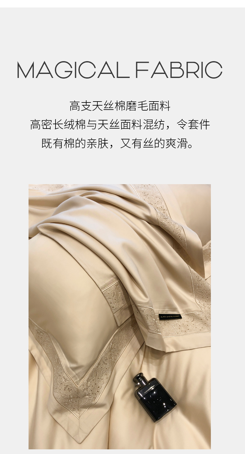 (总)黑白森林2024款 80X80S高支天丝棉四件套镂空蕾丝花边天丝全棉,尚美-晨夕粉,尚美-古象白,尚美-青砂绿,尚美-银雪灰