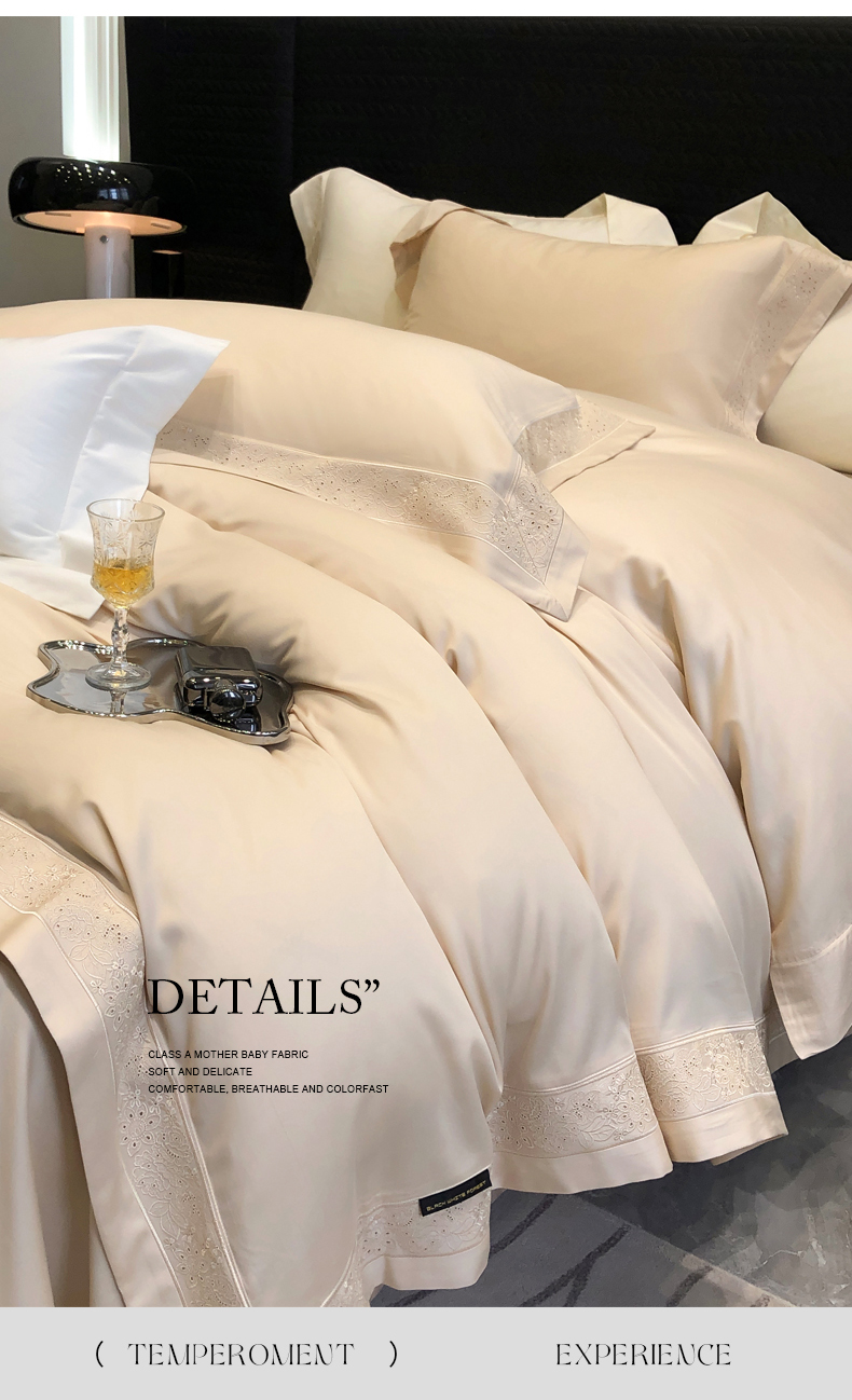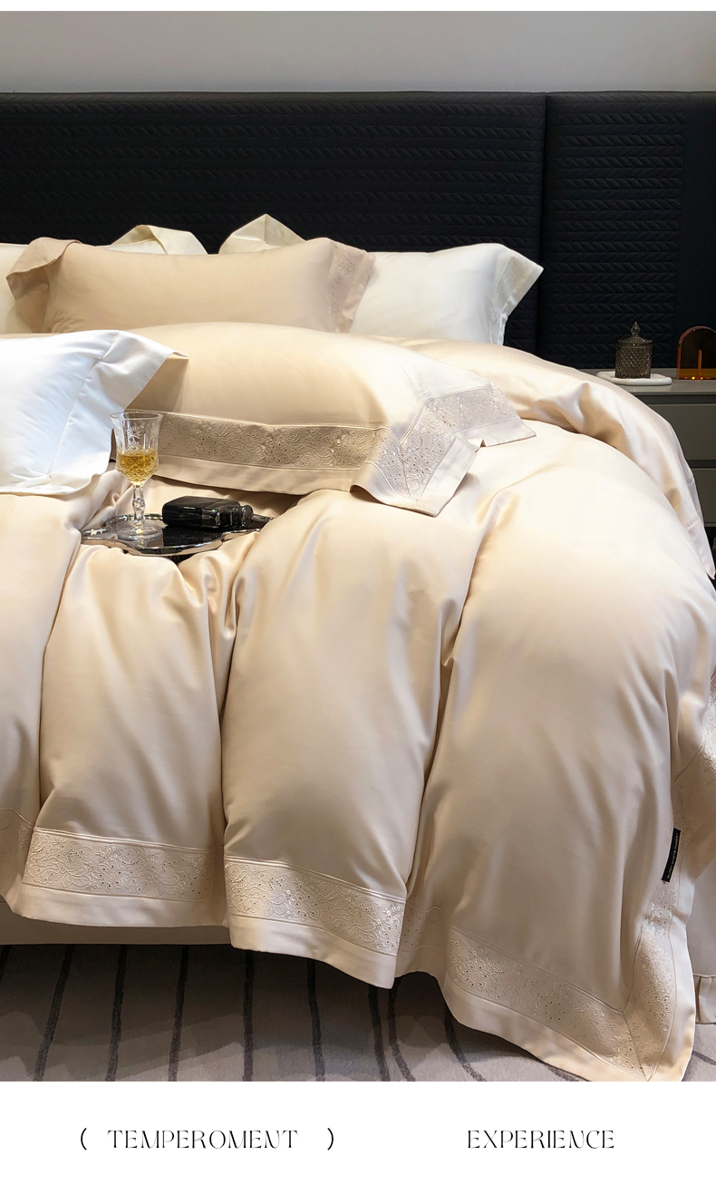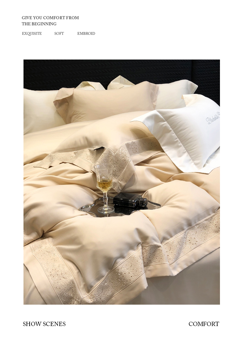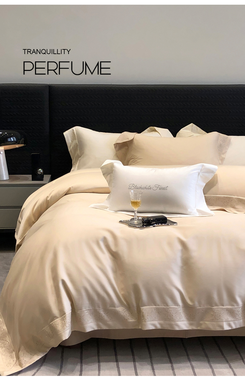 (总)黑白森林2024款 80X80S高支天丝棉四件套镂空蕾丝花边天丝全棉,尚美-晨夕粉,尚美-古象白,尚美-青砂绿,尚美-银雪灰