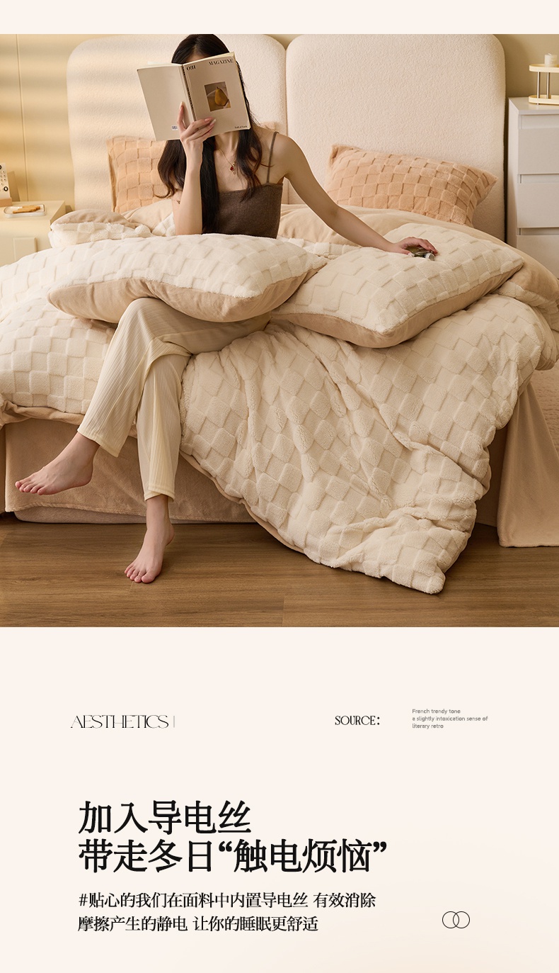 当前位置: 91家纺网 > 商品网购 > 床品套件 > 四件套 > 牛奶绒四件套 > 晨曦家纺 2024新款塔芙绒牛奶绒四件套-初暖系列 初暖-白拼奶咖