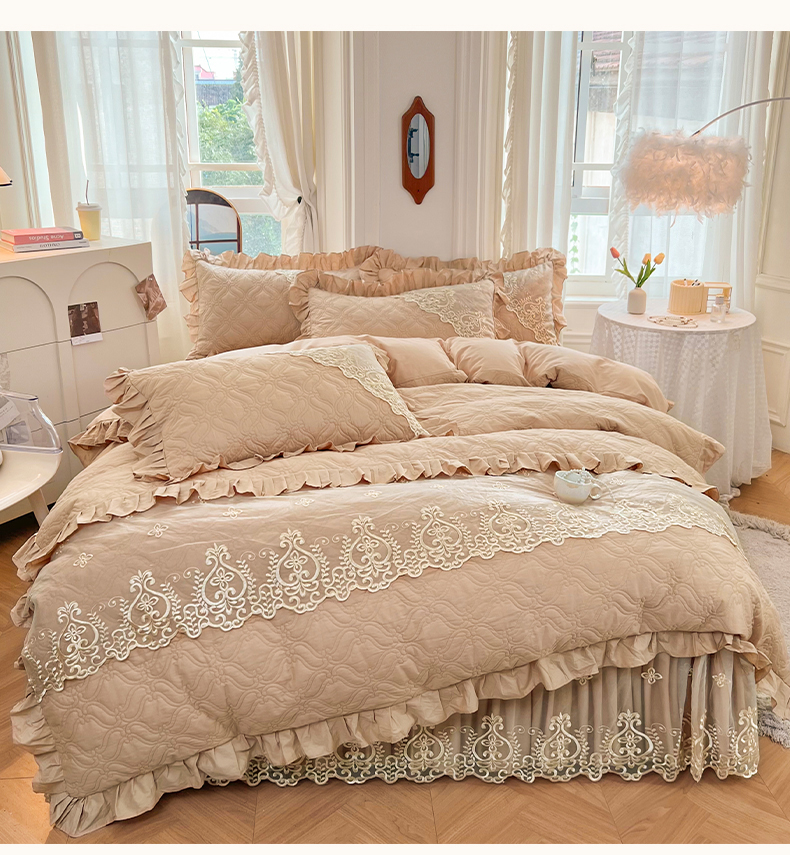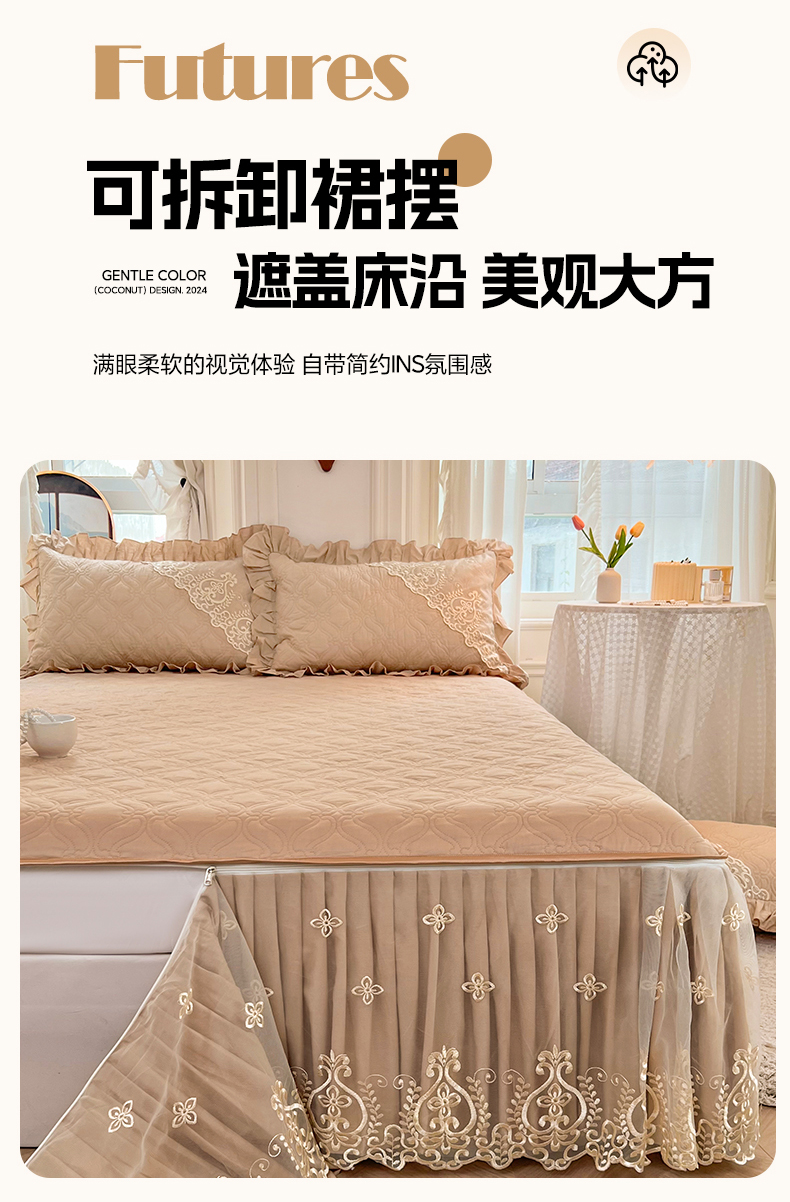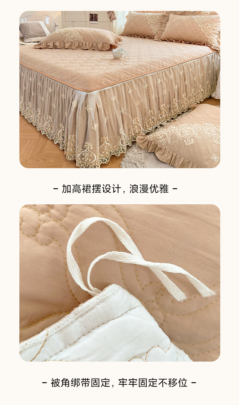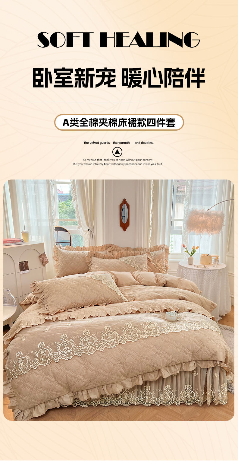 当前位置: 91家纺网 > 商品网购 > 床品套件 > 四件套 > 全棉普通四件套 > 罗艺轩 2024新款公主风全棉加厚可脱卸床笠式床裙四件套 慕雅-香槟