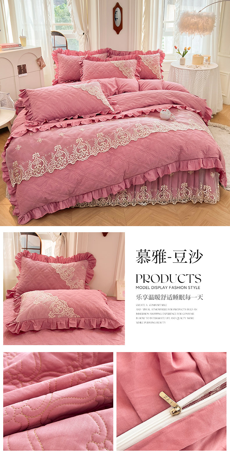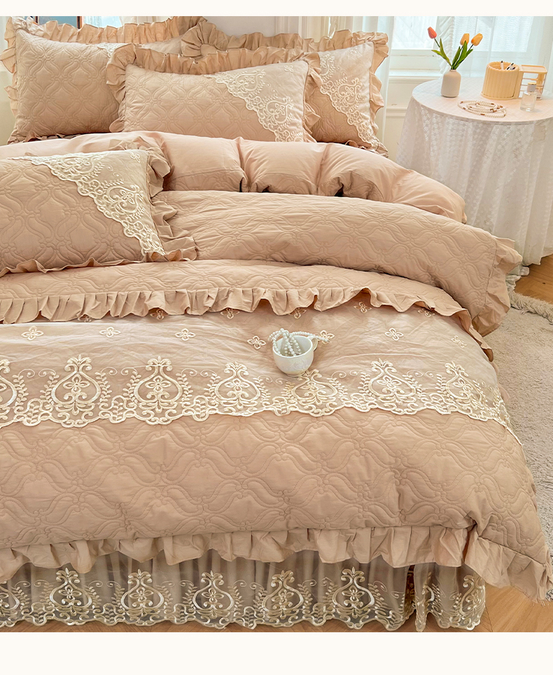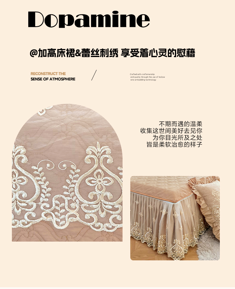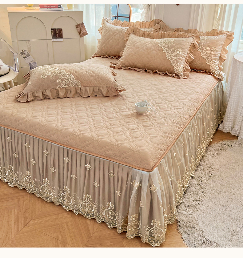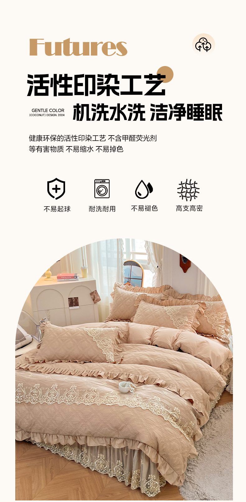 当前位置: 91家纺网 > 商品网购 > 床品套件 > 四件套 > 全棉普通四件套 > 罗艺轩 2024新款公主风全棉加厚可脱卸床笠式床裙四件套 慕雅-香槟