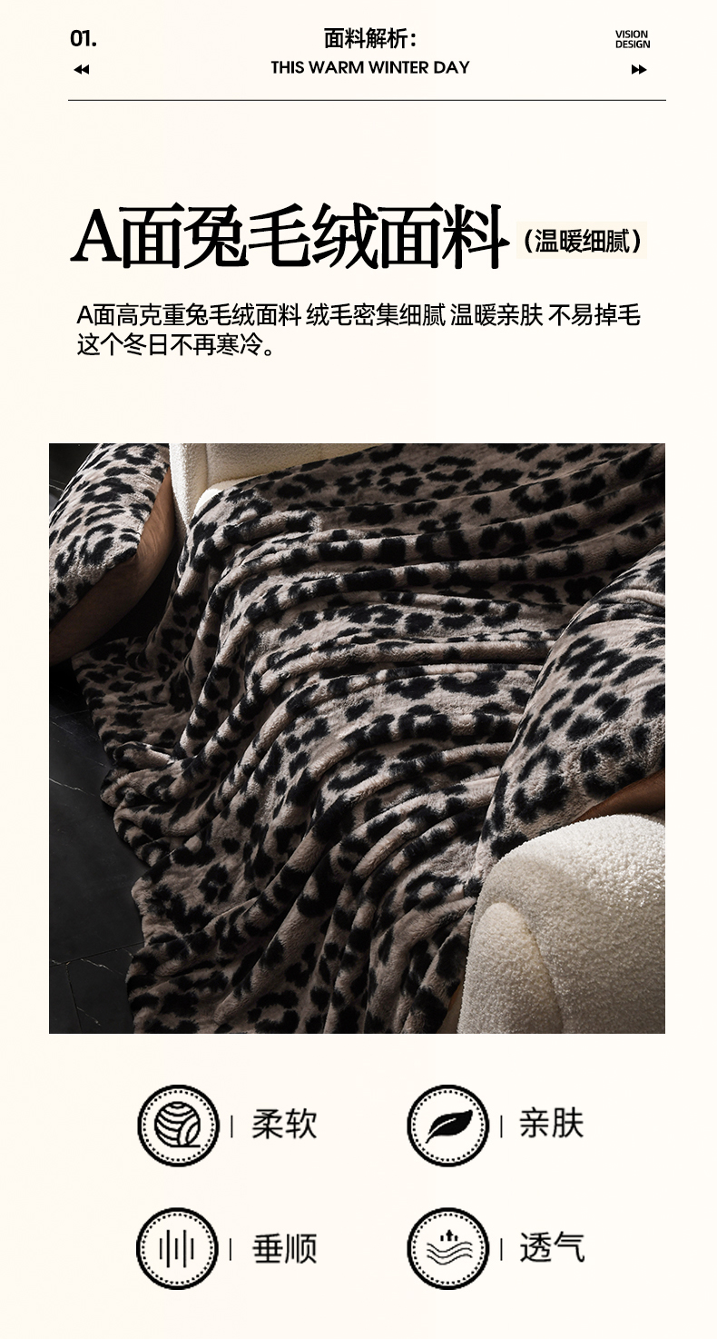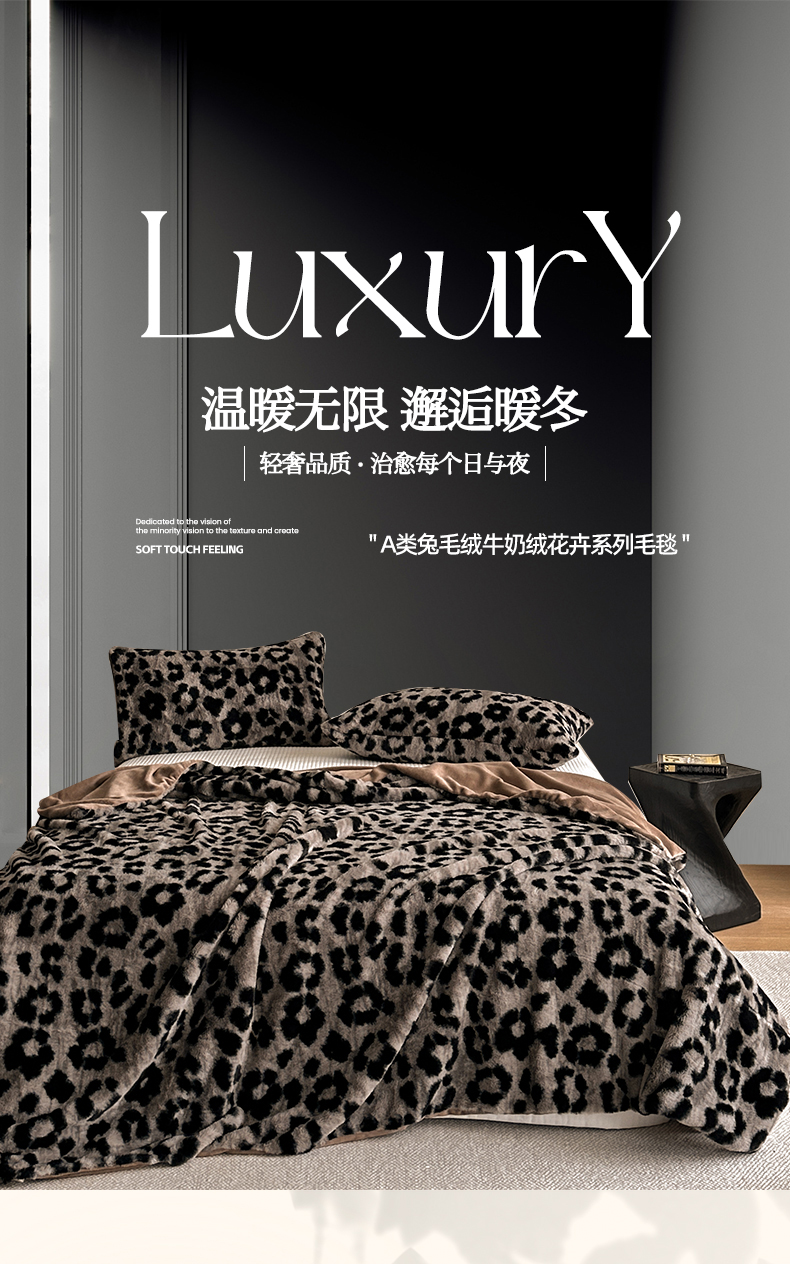 商品名称:网客 2024新款兔毛绒毯-繁花系列 性感豹纹