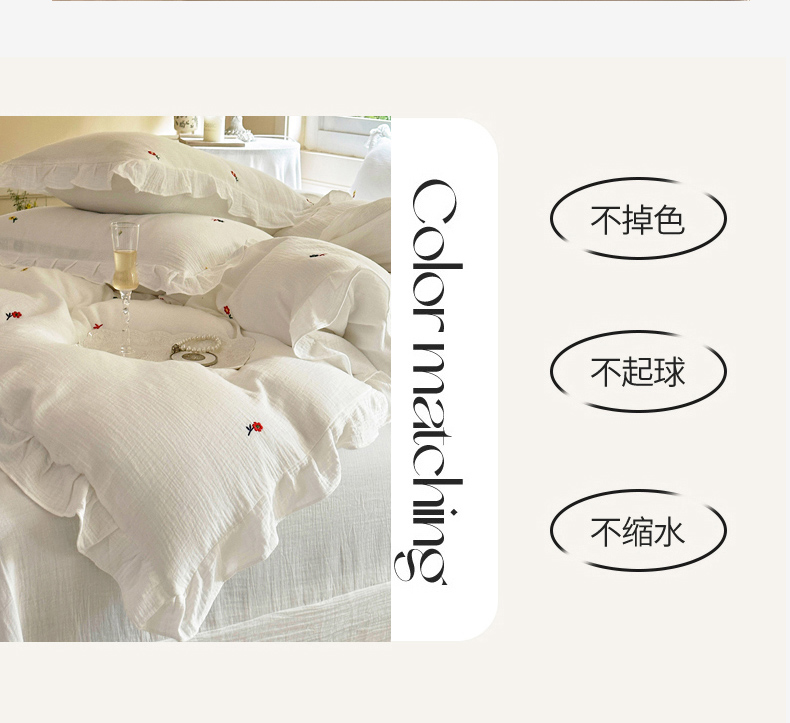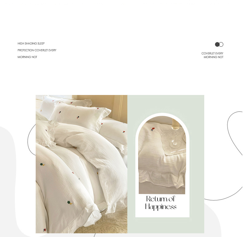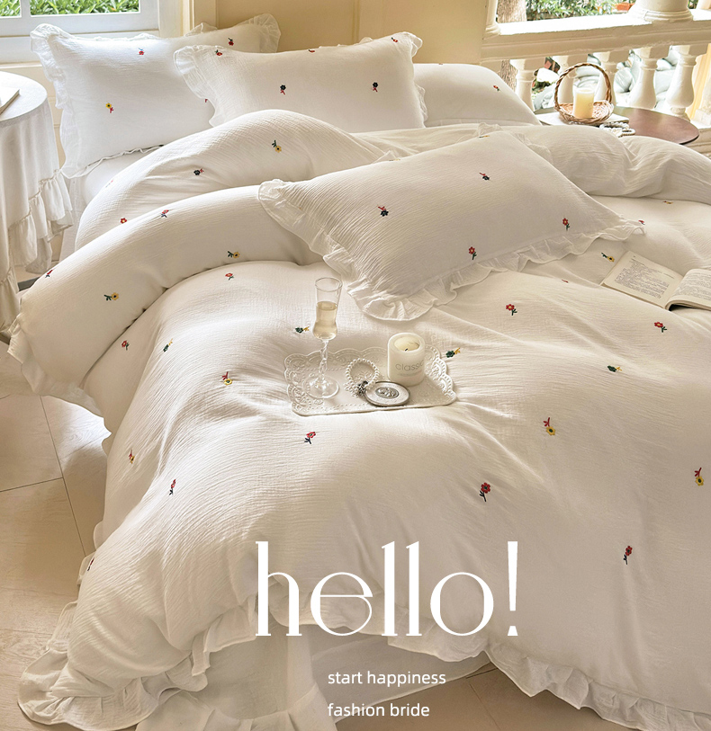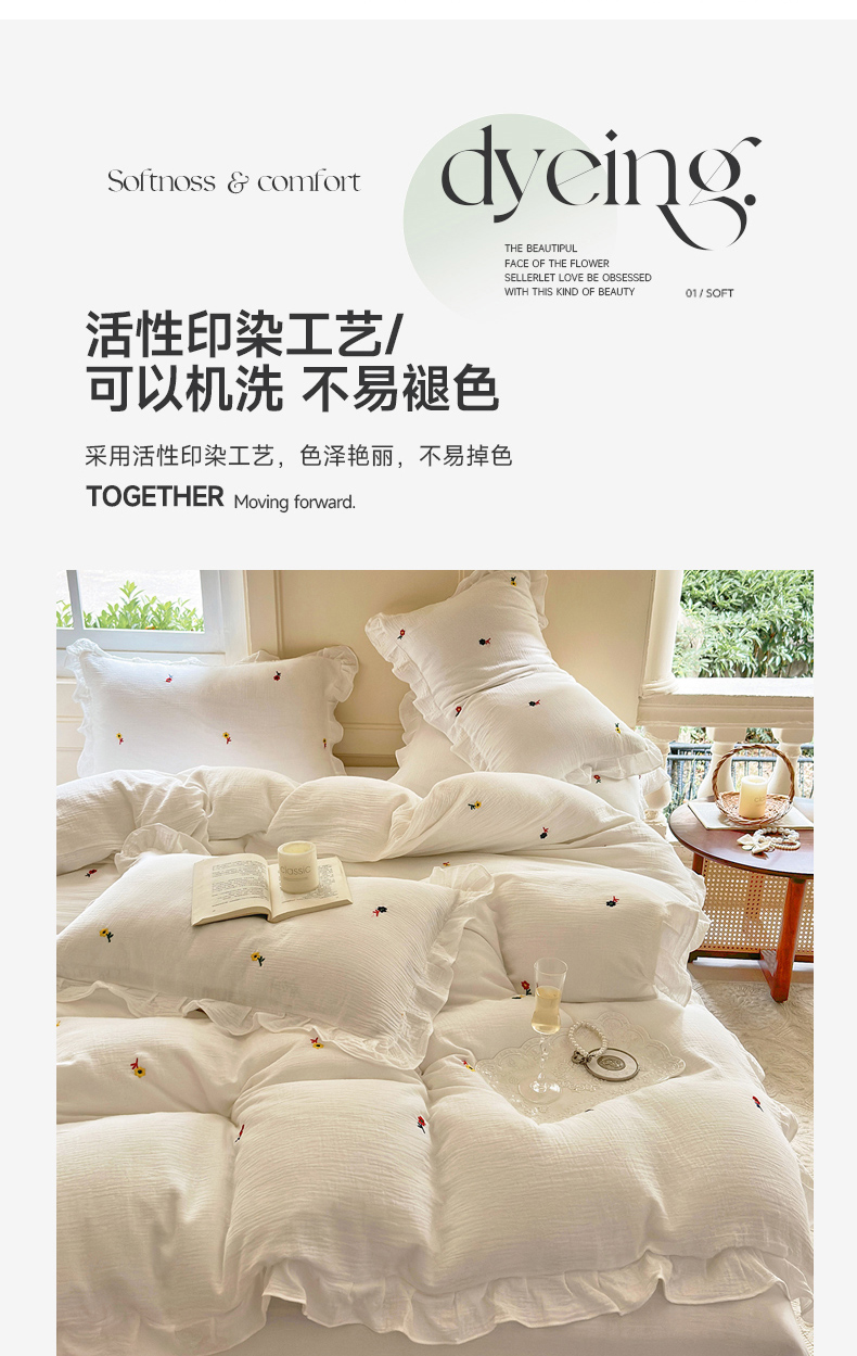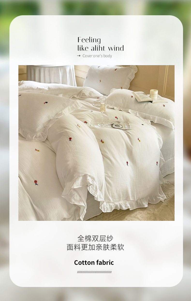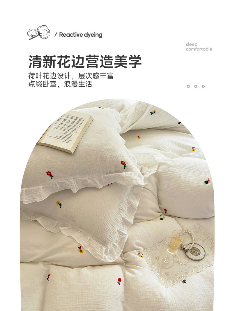商品名称:木楌 2024全棉皱皱纱荷叶边刺绣工艺款四件套 乔伊斯花园