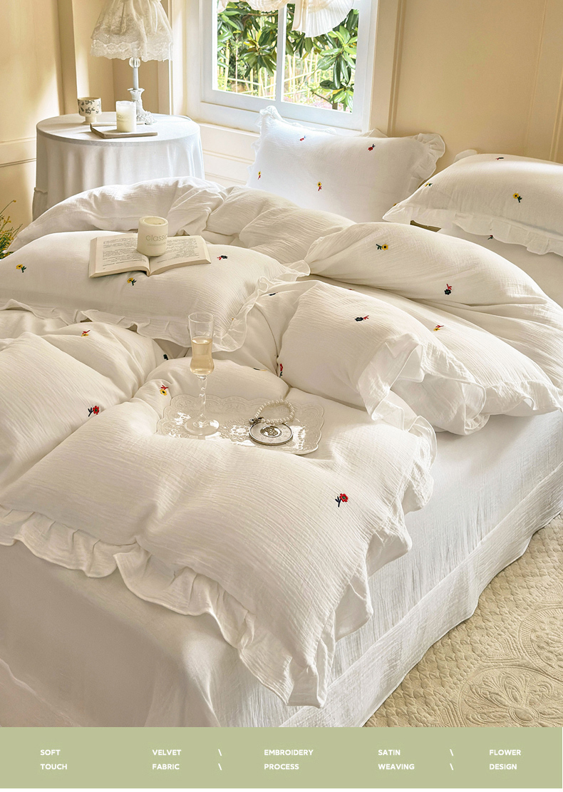 木楌 2024全棉皱皱纱荷叶边刺绣工艺款四件套 乔伊斯花园