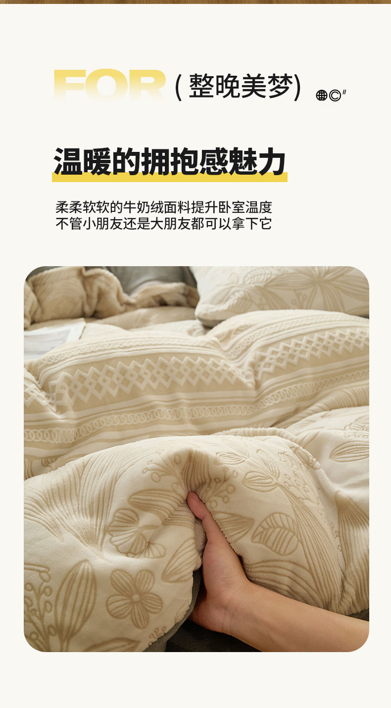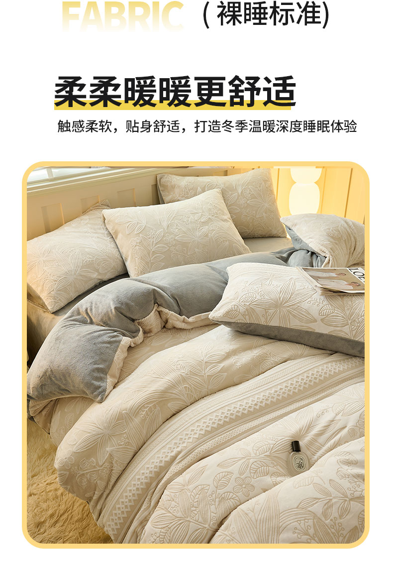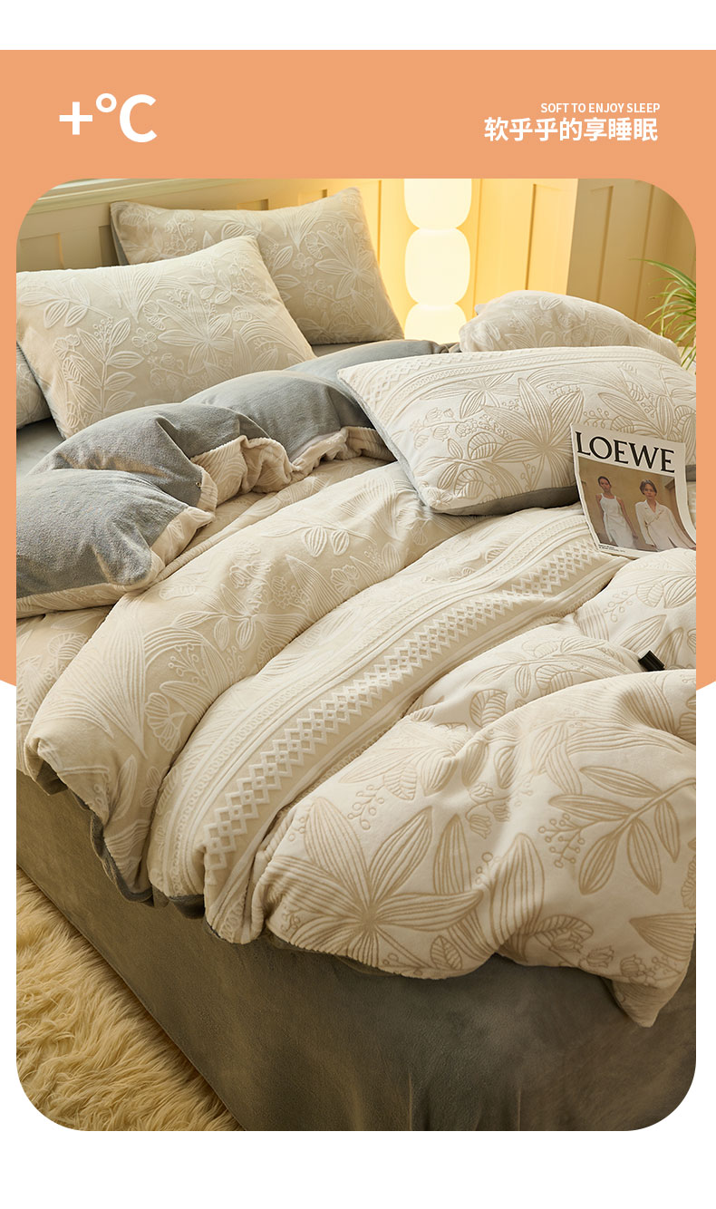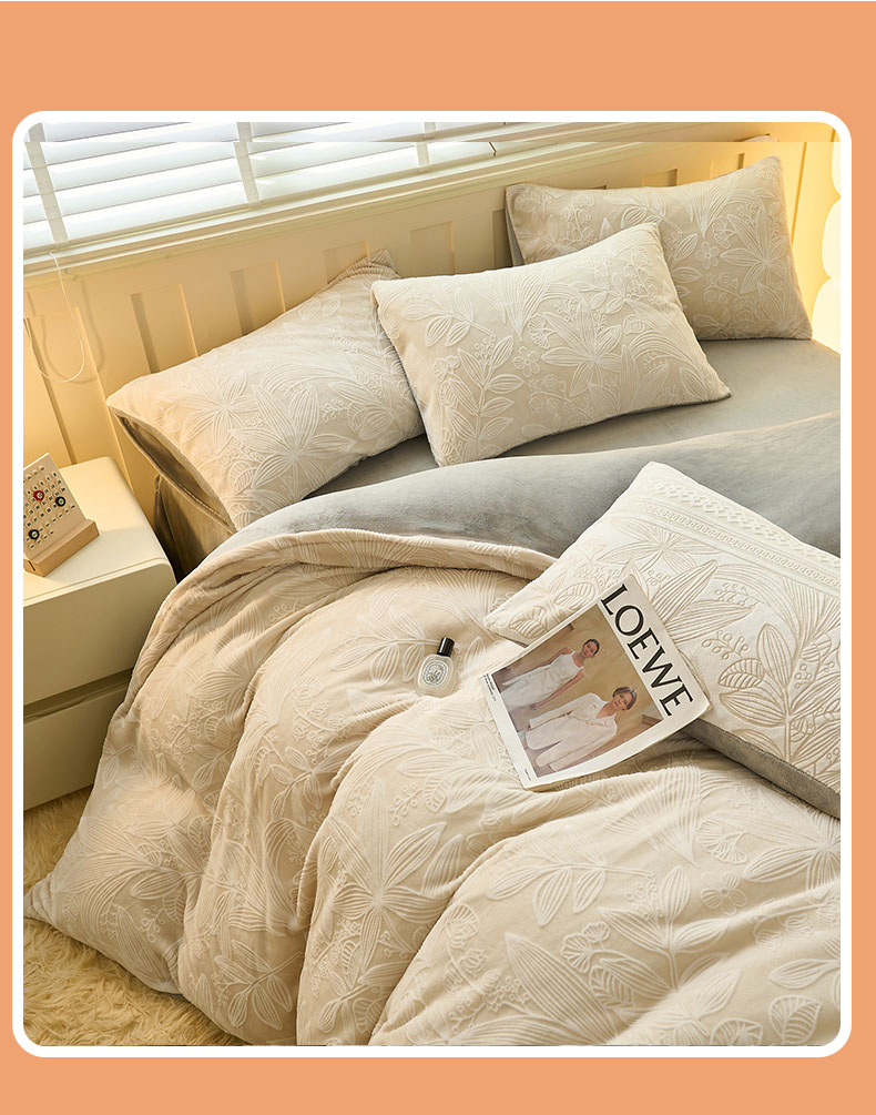 鑫琪莱家纺 2024新款着色烂花牛奶绒四件套 枝繁-质朴