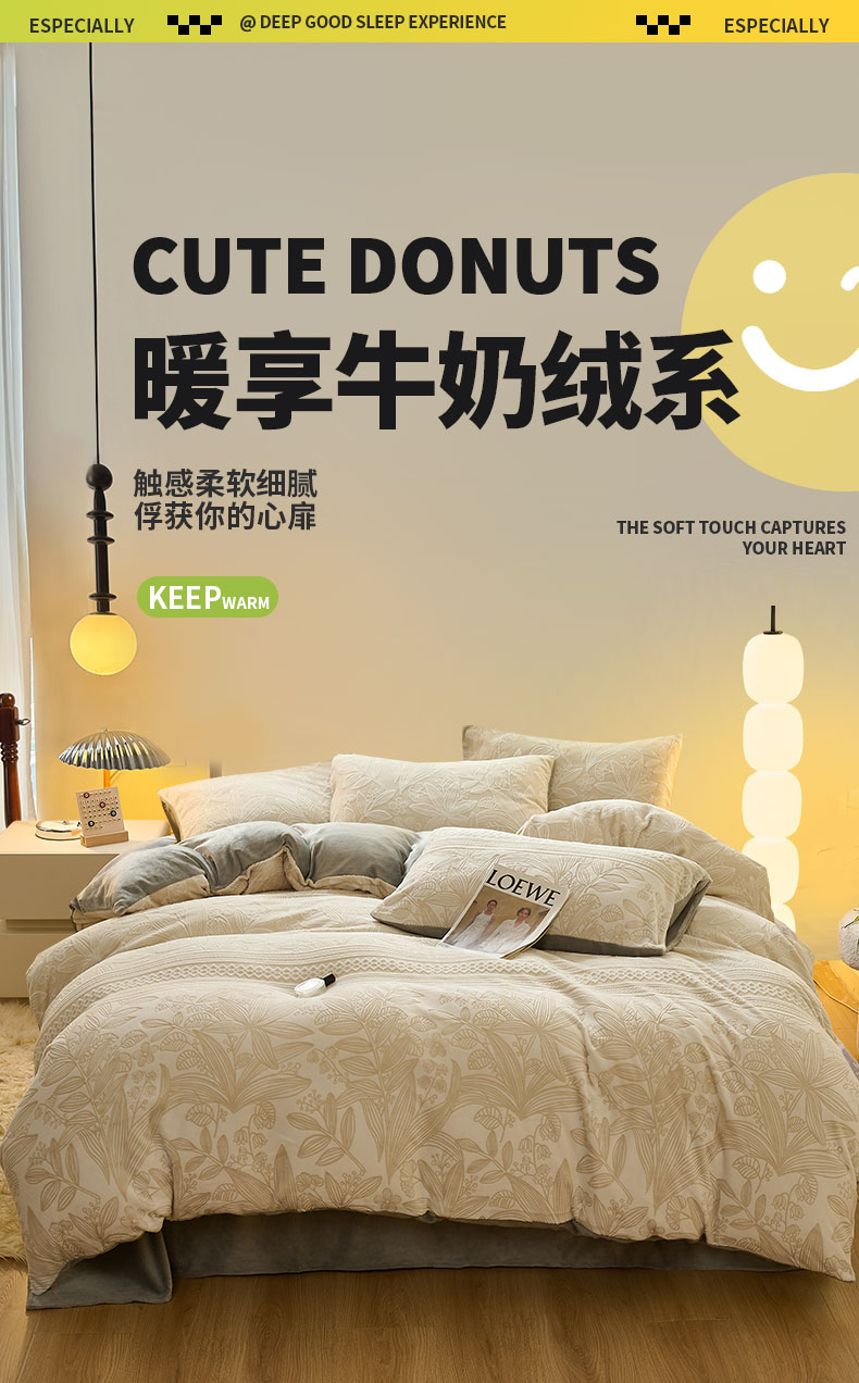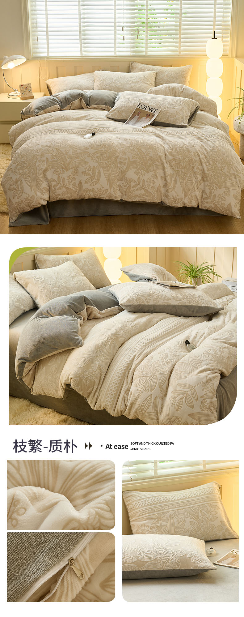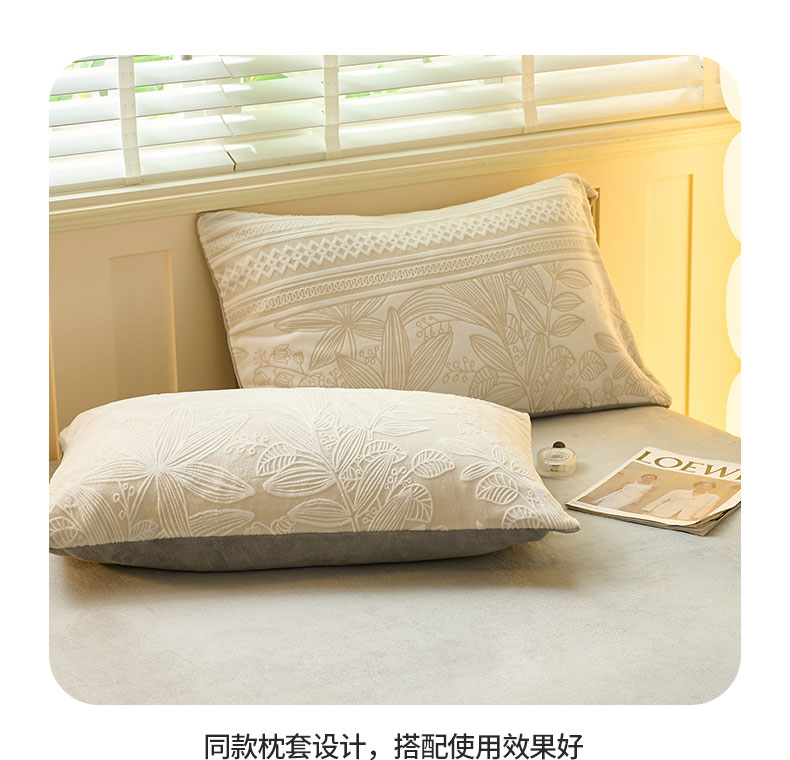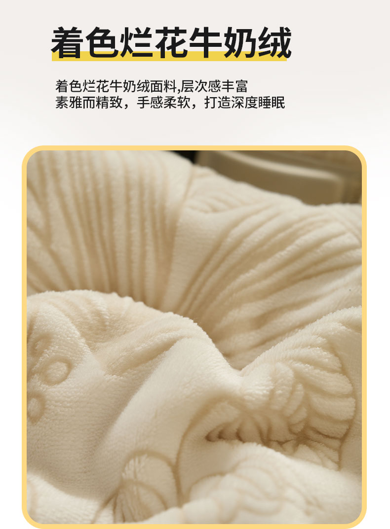 鑫琪莱家纺 2024新款着色烂花牛奶绒四件套 枝繁-质朴