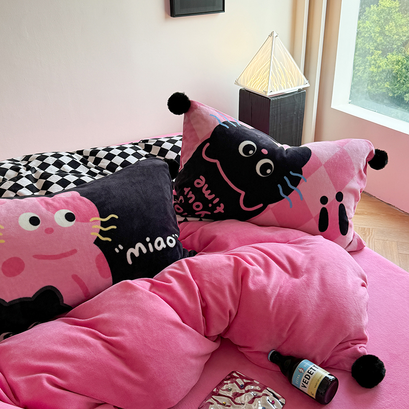 (总)柚子YOUTH 2025新款加厚牛奶绒卡通毛巾绣四件套-印加绣送同款毛毯,蛋糕小狗,公主猫,头套猫,兔兔花园,小伙伴,雪纳瑞