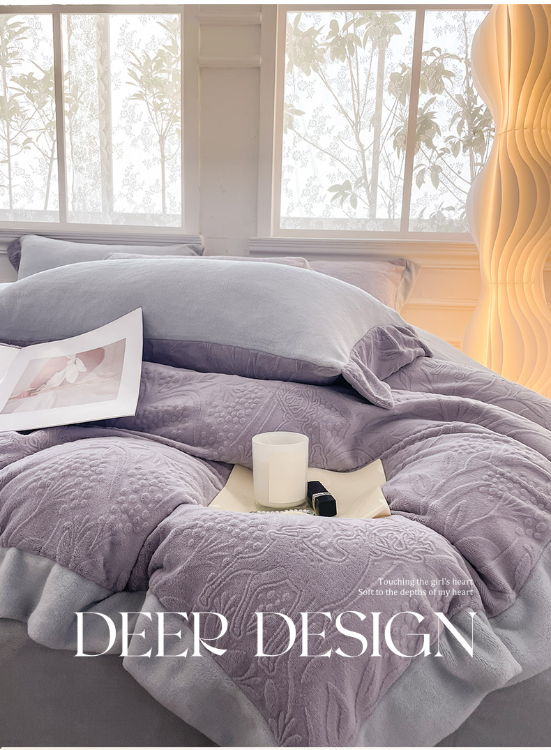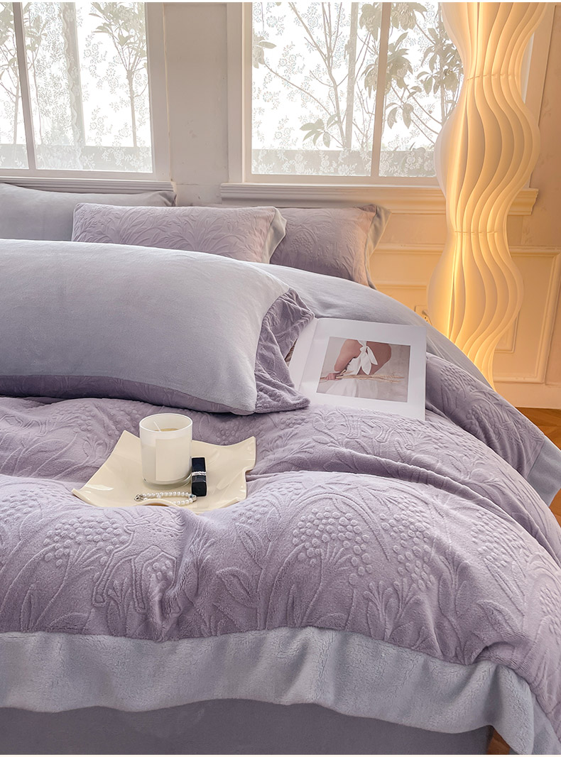 2024新款A类雕花绒牛奶绒四件套宝宝绒婴儿绒床单被套保暖套件新品-米鹿提 风信紫