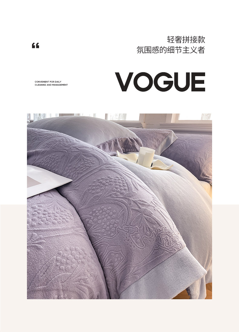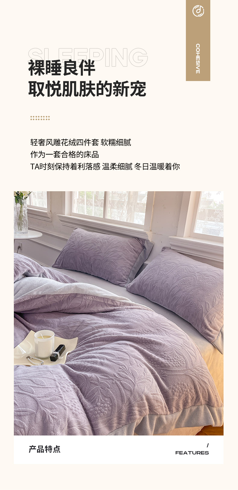 (总) 2024新款A类雕花绒牛奶绒宝宝绒兔绒新品保暖四件套套件 -米鹿提,白桃色,淡雅米,风信紫,琉璃蓝,芝奶绿