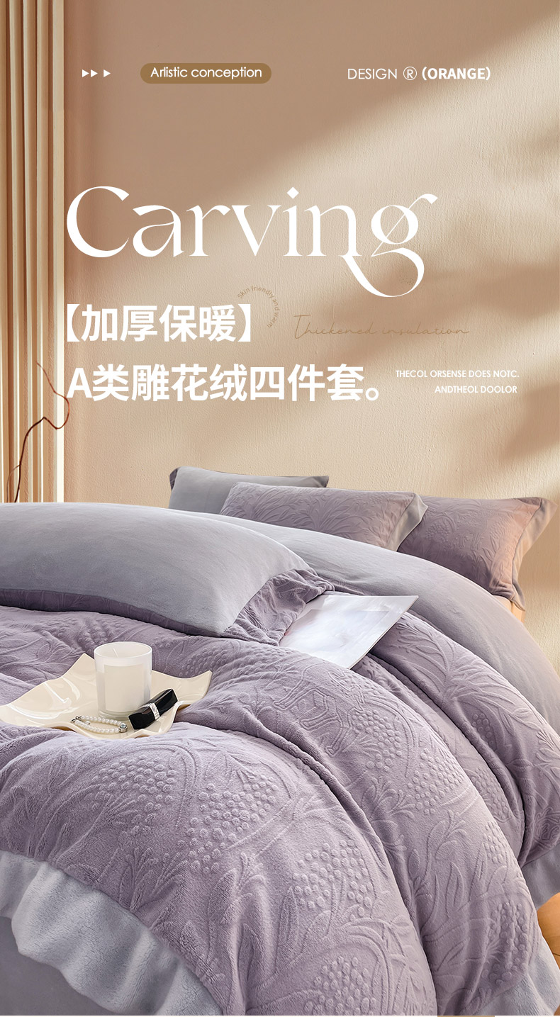 (总)梦馨家纺2024新款A类雕花绒牛奶绒兔绒婴儿绒保暖四件套-安贝拉,安贝拉-静谧粉,安贝拉-琉璃蓝,安贝拉-暖棕色,安贝拉-雅士灰