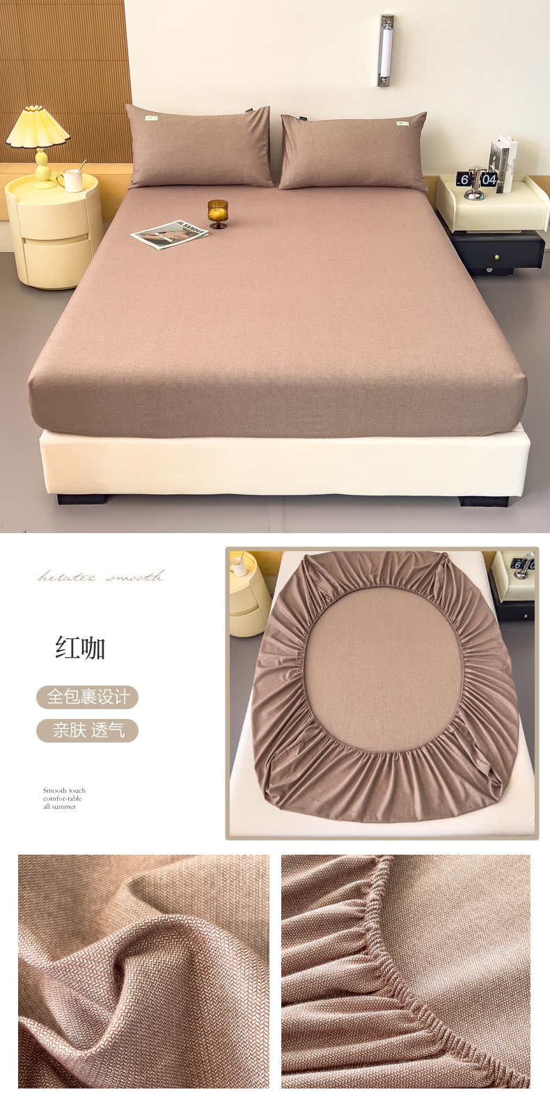 商品名称:2024新款色织提花磨毛床笠三件套 红咖