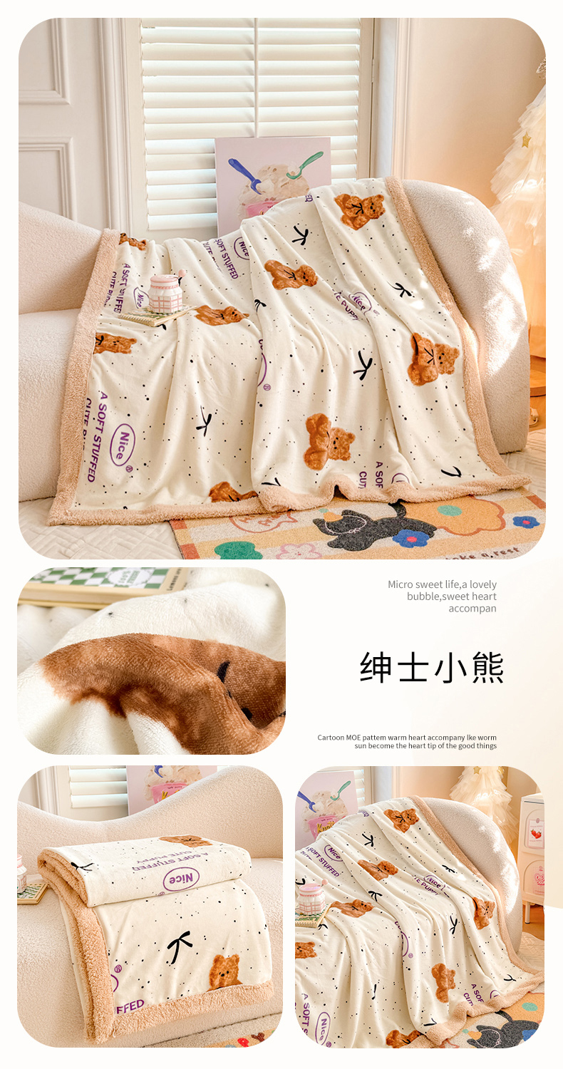 商品名称:我心家纺 2024新款高克重羊羔绒毛毯毯子 绅士小熊