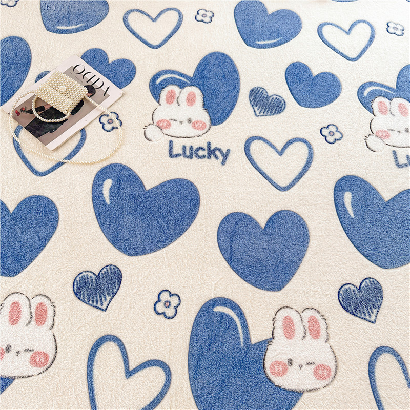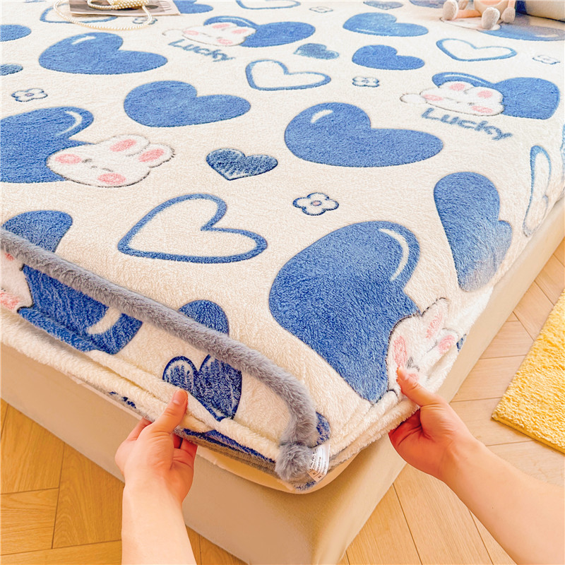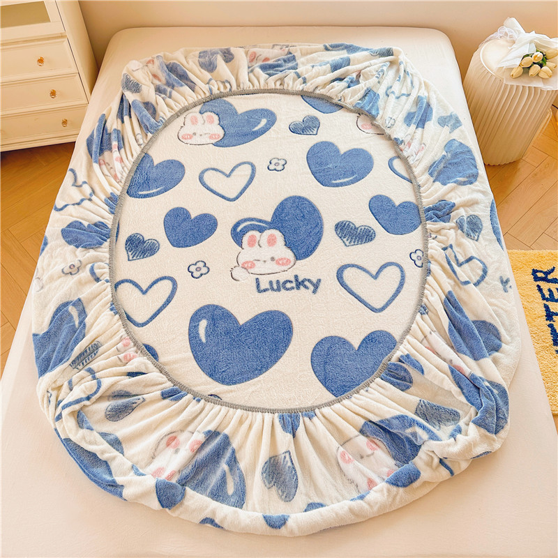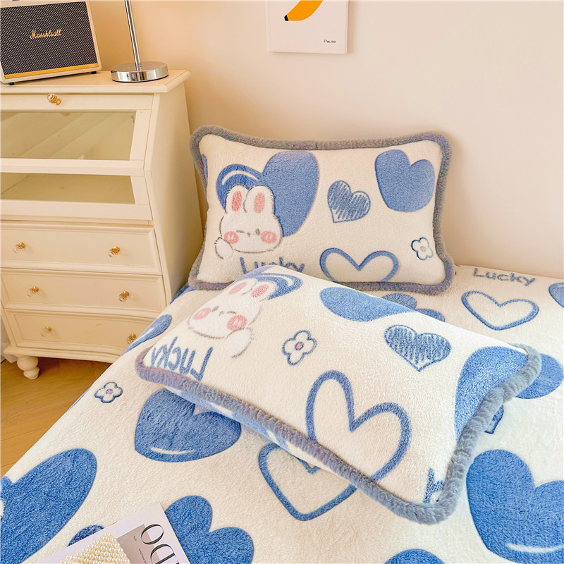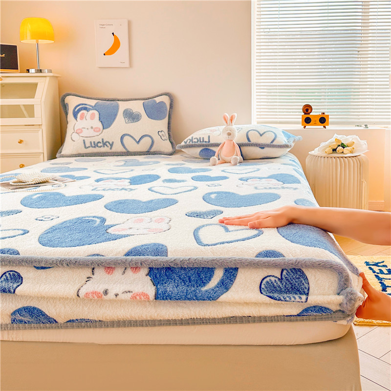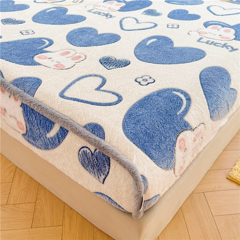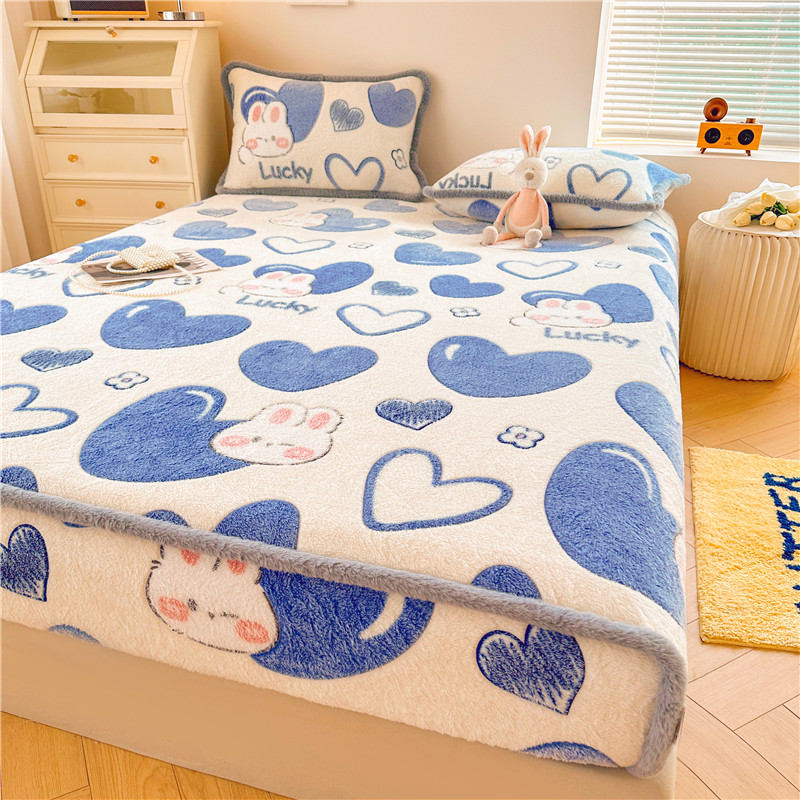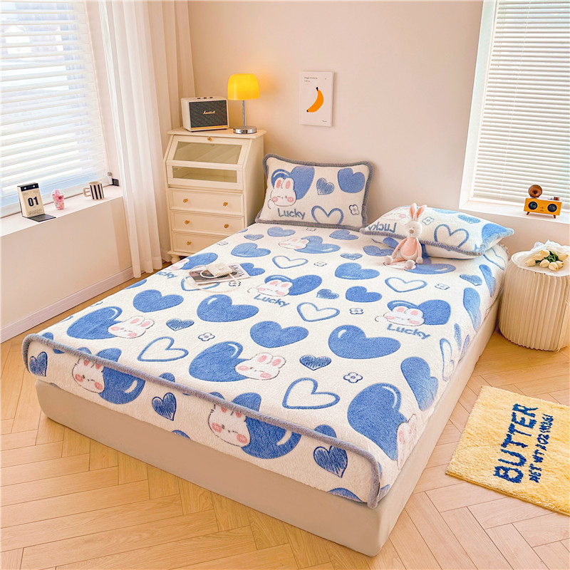 喜居 2024新款雪花绒床笠印花牛奶绒床笠三件套单床笠 爱心兔