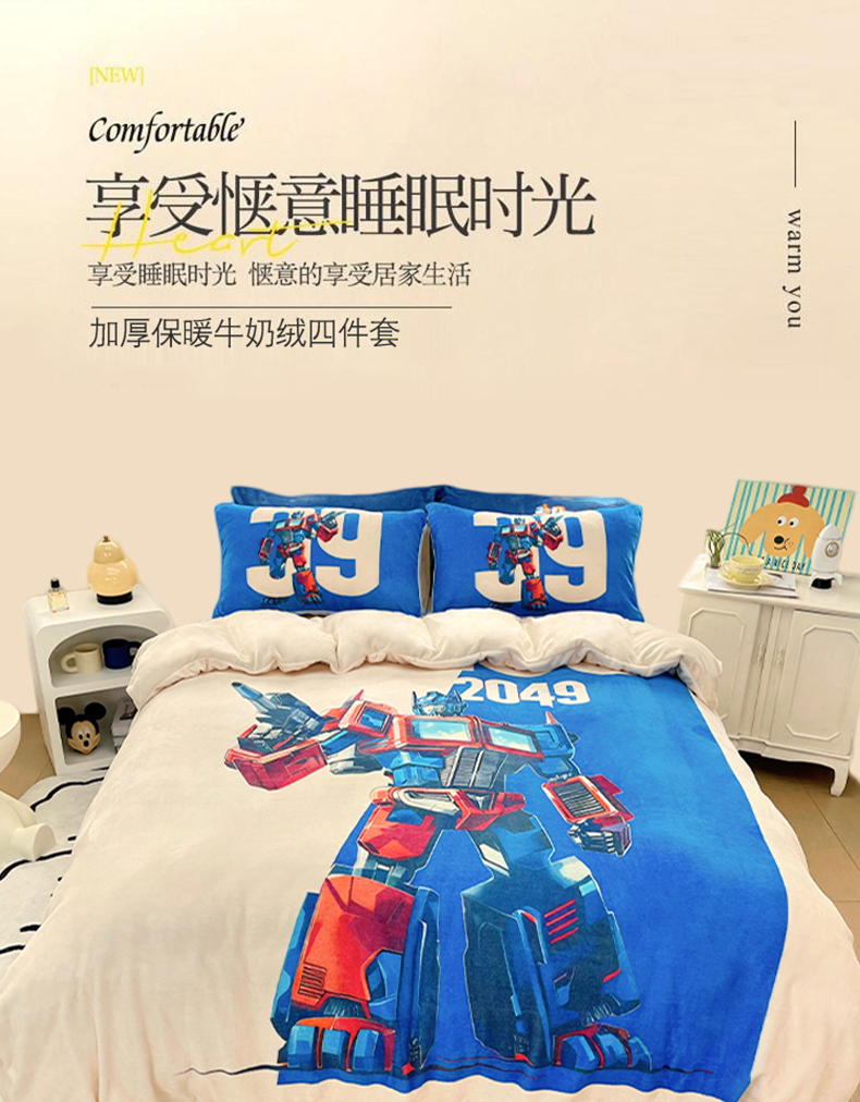 浩诚 2024新款加厚保暖牛奶绒四件套印花卡通系列 百变金刚