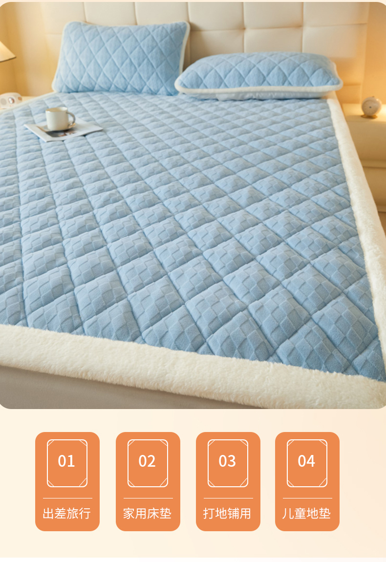 当前位置: 91家纺网 > 商品网购 > 床垫/床褥 > 普通床垫 > 鑫钰 2024新款宝宝绒牛奶绒烂花大豆夹棉床褥床护垫-菱形格 菱形格-天蓝