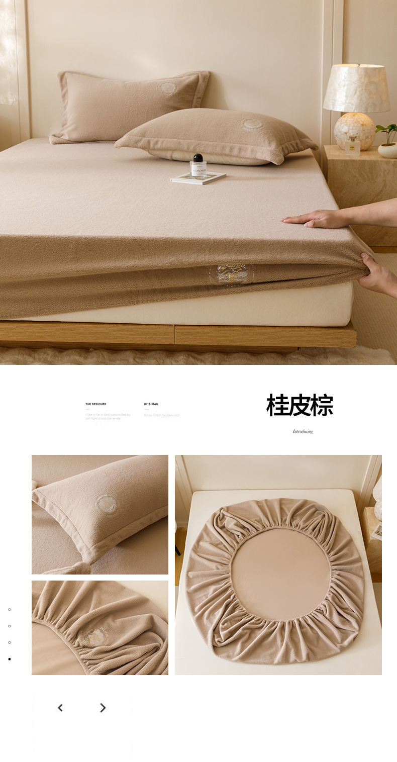 商品名称:金奇达 2024秋冬新品保暖加厚绒类多莉羊绒床笠三件套-【多莉羊绒】 桂皮棕