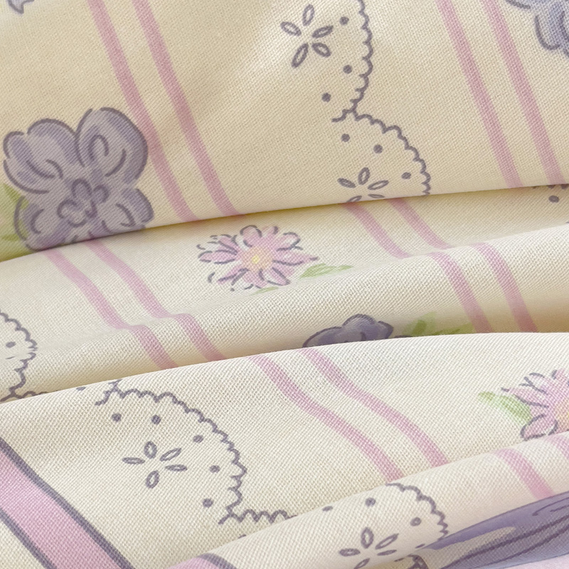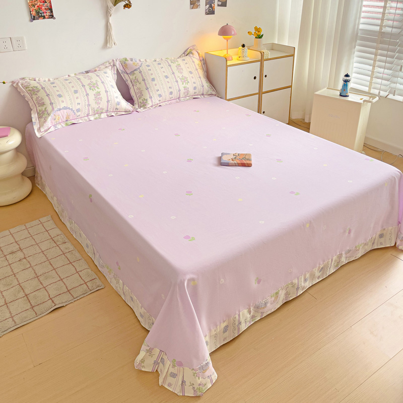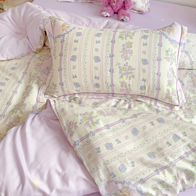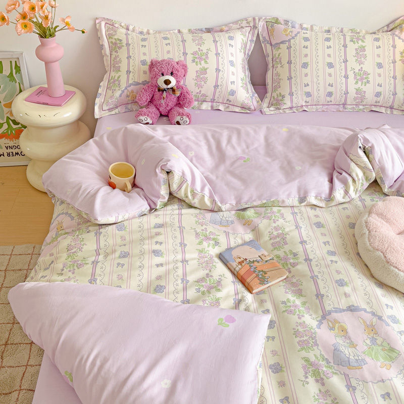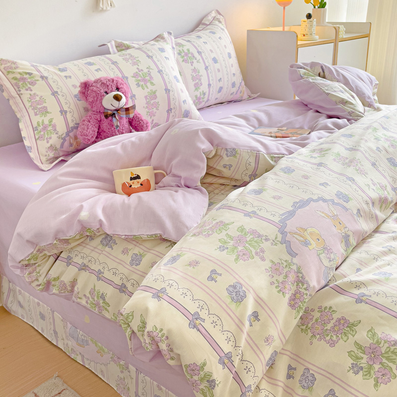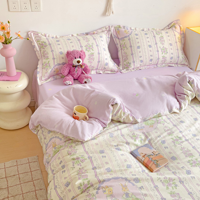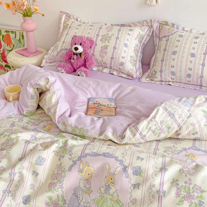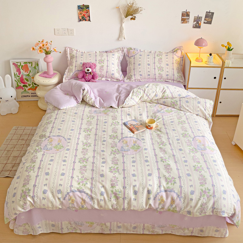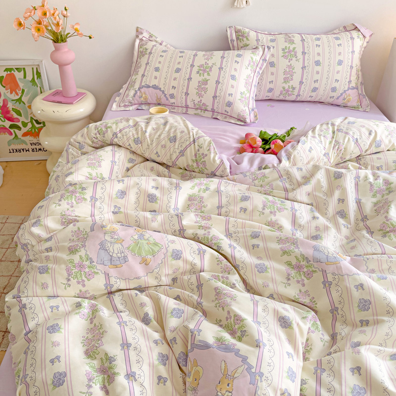 乐童家纺 2024新款直播爆款13070纯棉印花吊边款一字绣四件套 罗拉萌兔