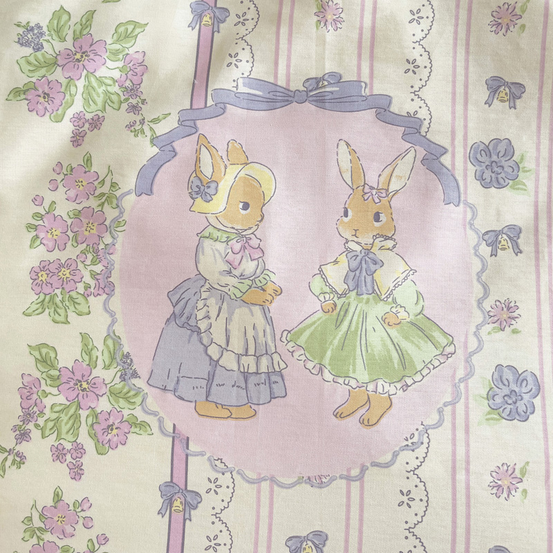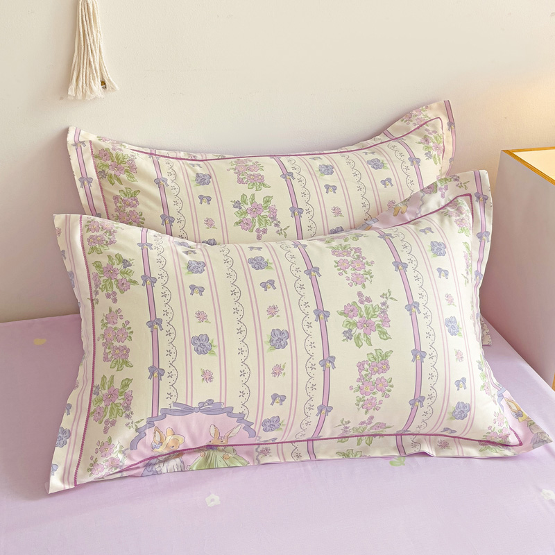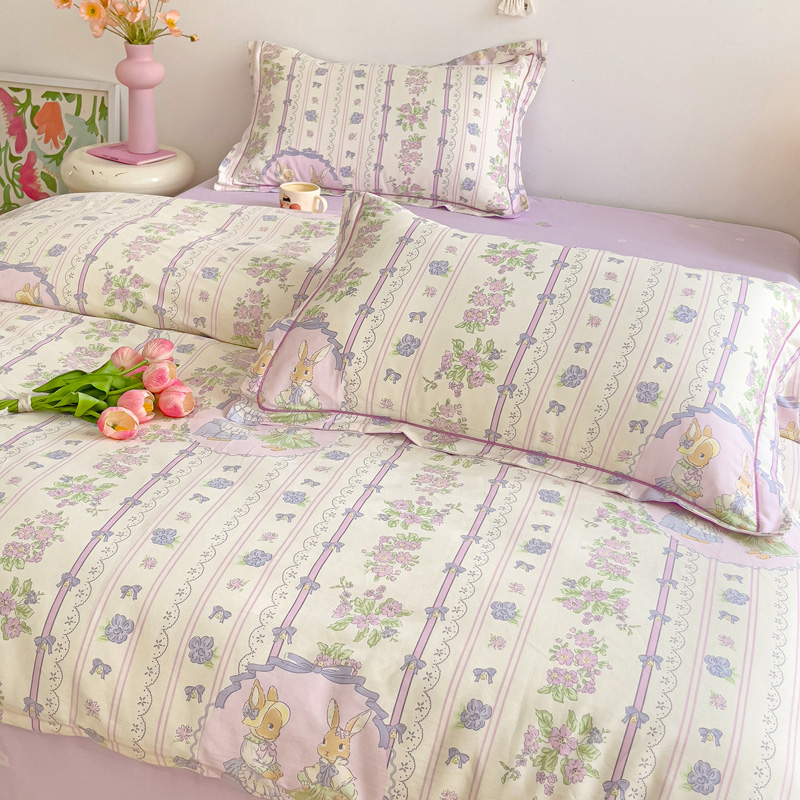 商品名称:乐童家纺 2024新款直播爆款13070纯棉印花吊边款一字绣四件套 罗拉萌兔