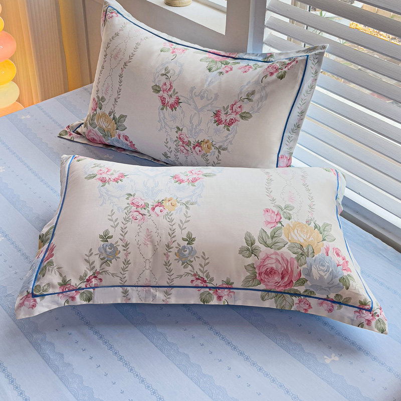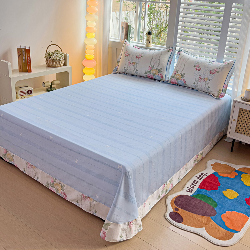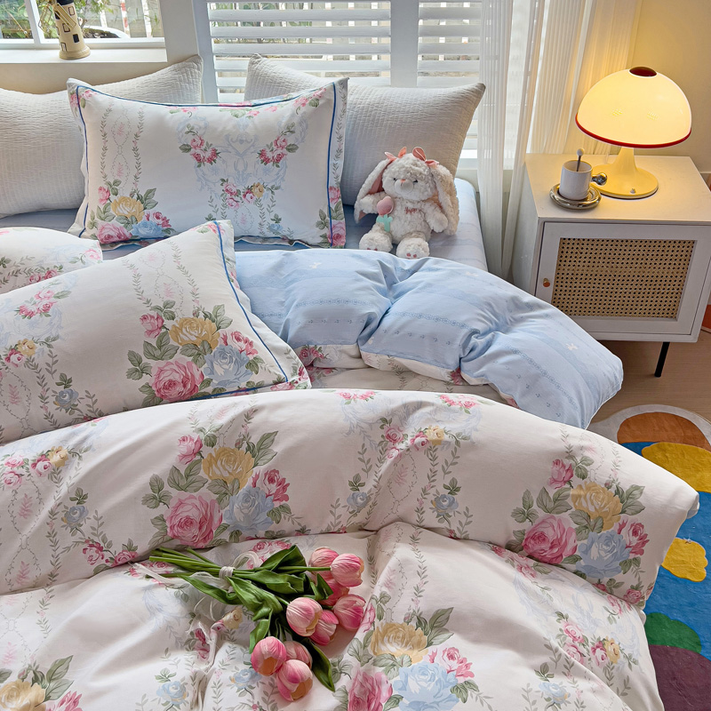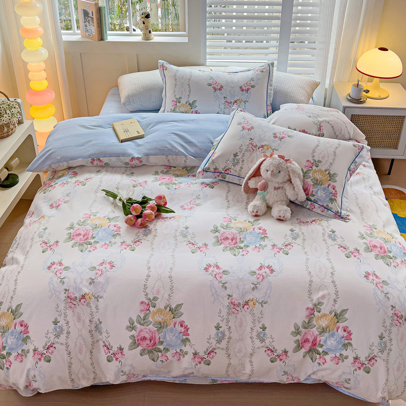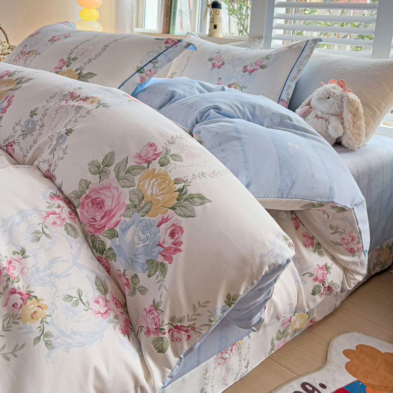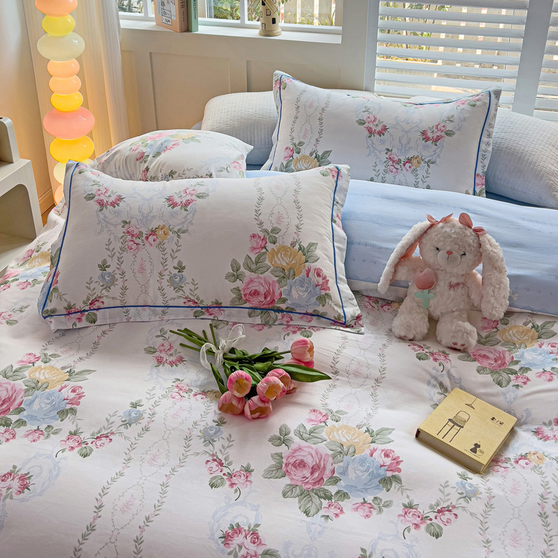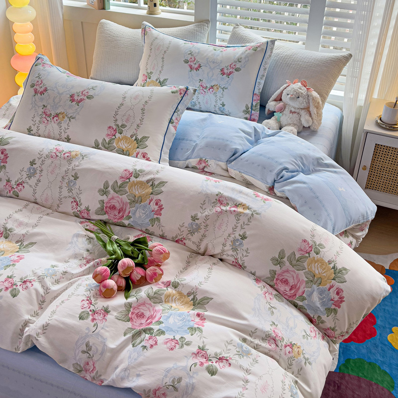 商品名称:乐童家纺 2024新款直播爆款13070纯棉印花吊边款一字绣四件套 夏日花园