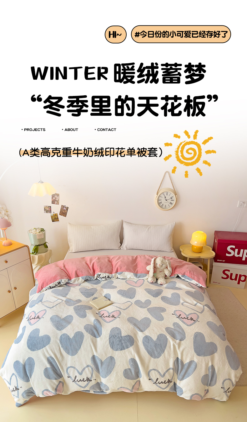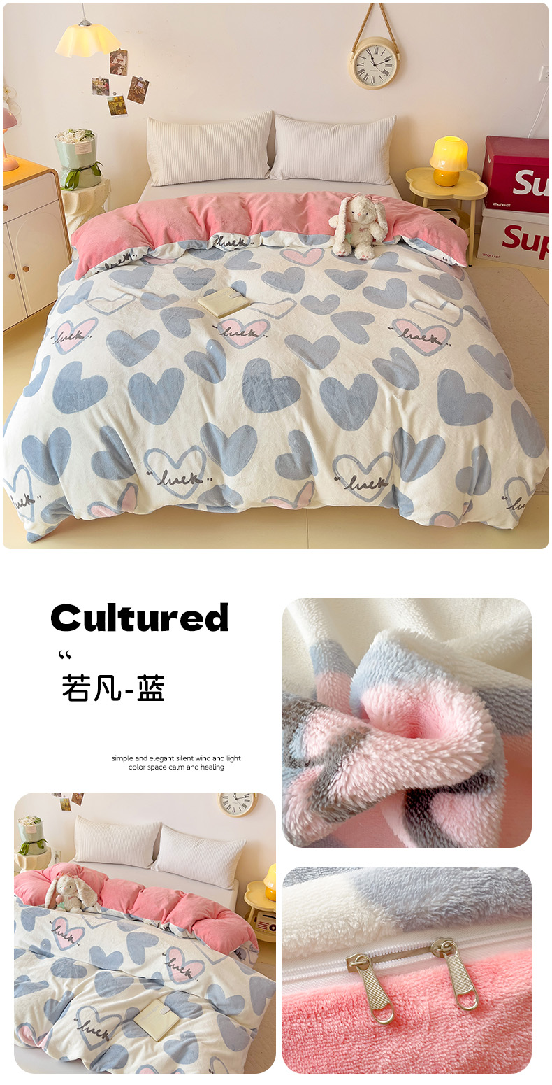 • 91家纺网 家纺一手货源 找家纺 大柏树 2025新款A类高克重亲肤舒适牛奶绒印花四件套-单被套可定制 若凡-蓝