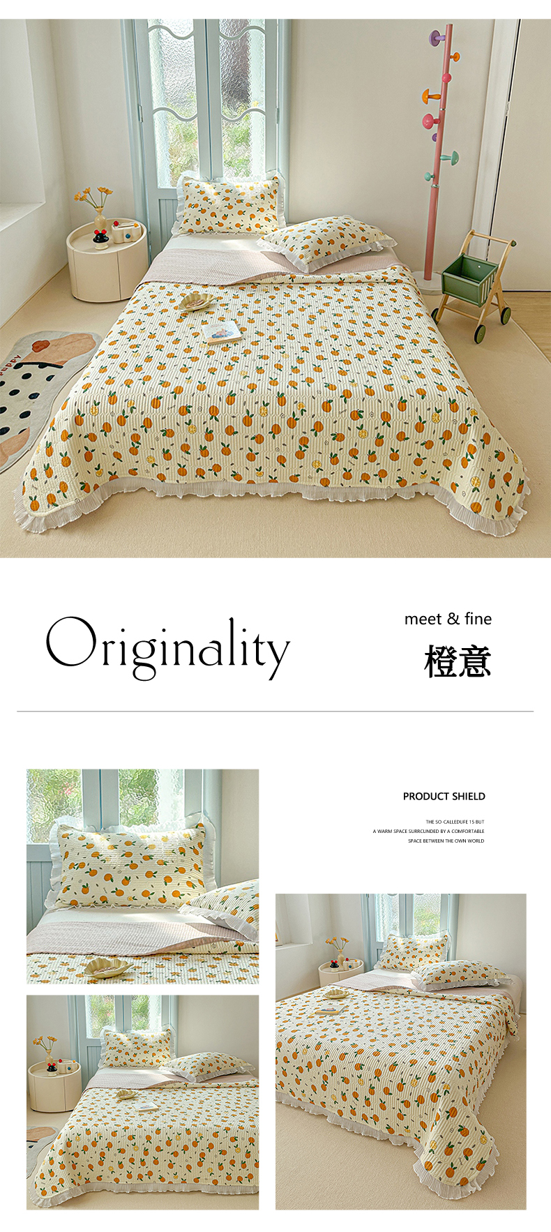 商品名称:源舜家纺 2025新款水洗双层纱床盖 橙意