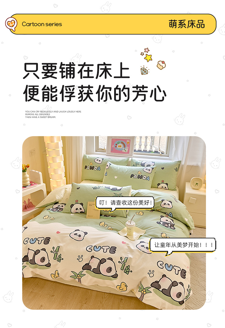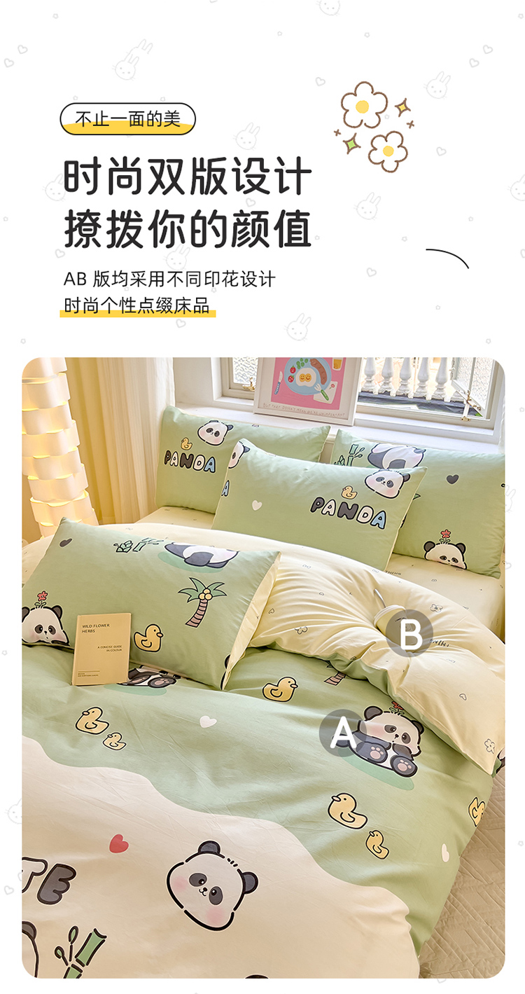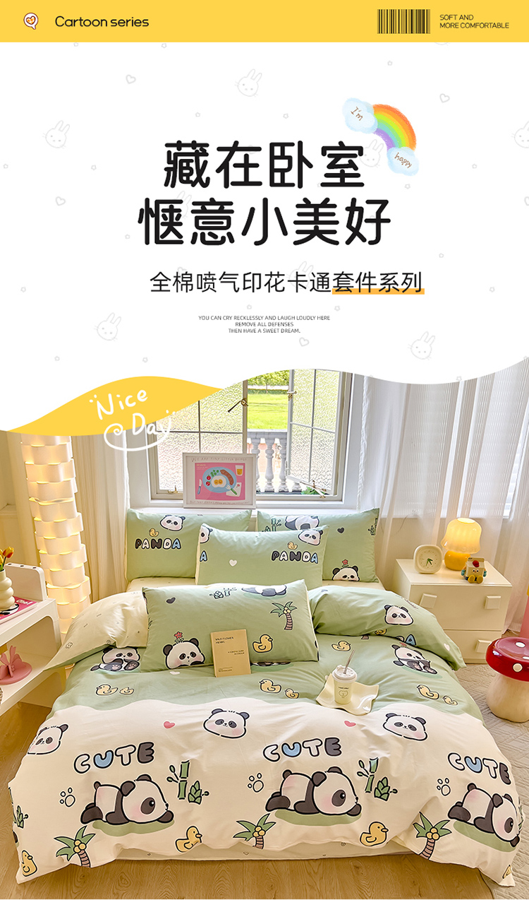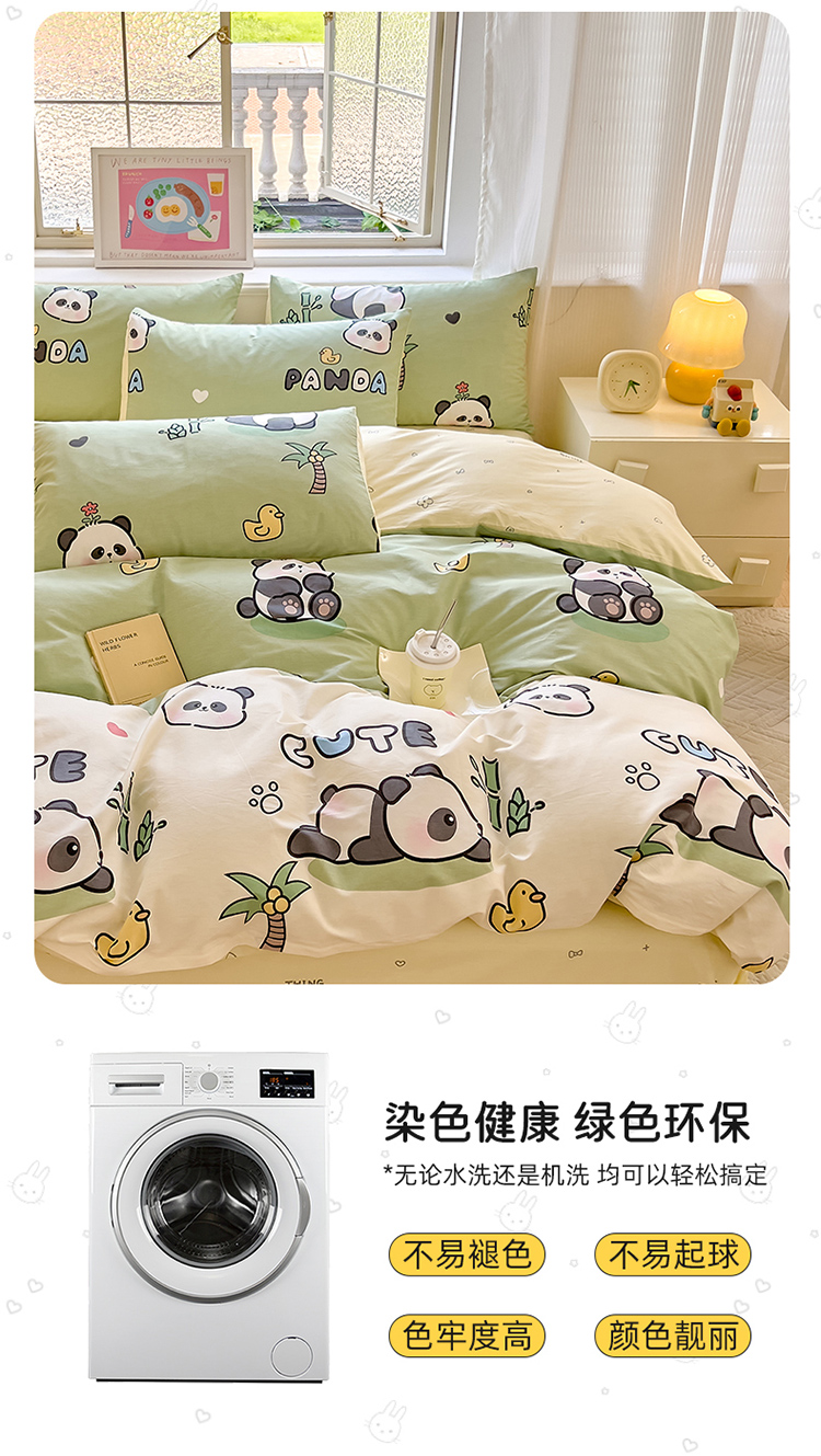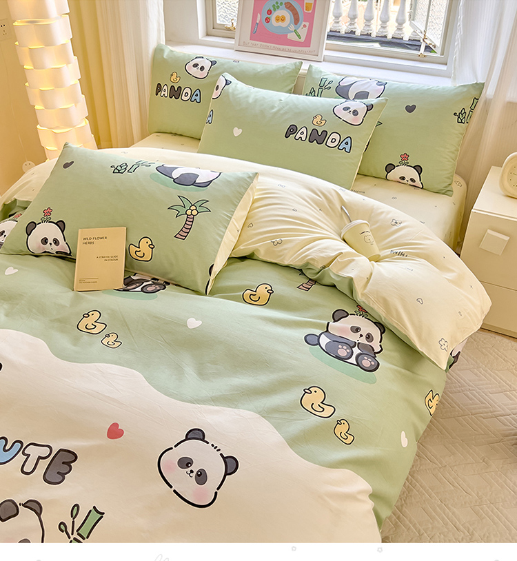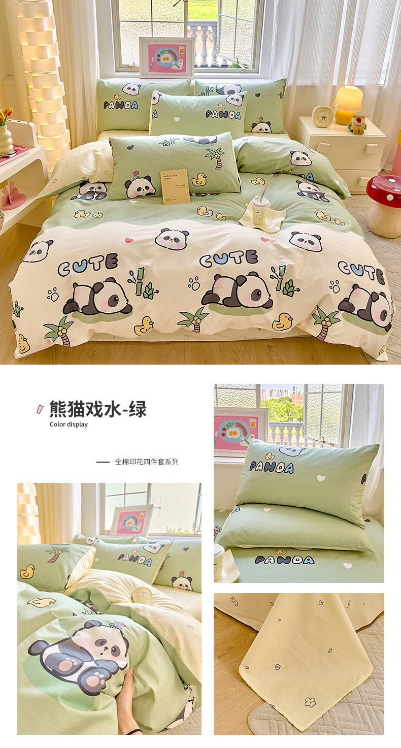 当前位置: 91家纺网 > 商品网购 > 床品套件 > 四件套 > 全棉普通四件套 > 拾物记 2024新款A类12868全棉喷气印花四件套 熊猫戏水-绿