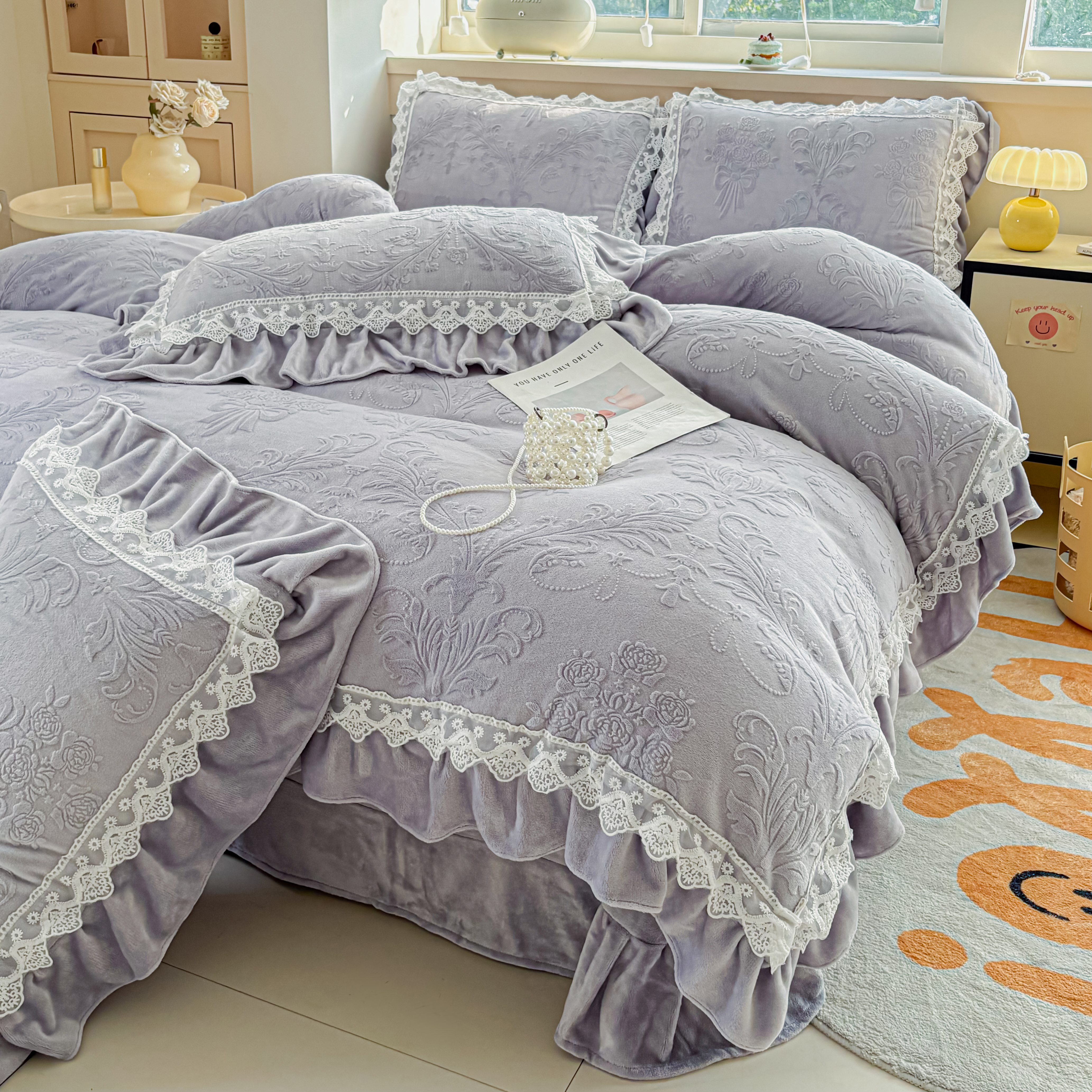 (总)锦格家纺 2025新款A类雕花牛奶绒花边四件套,米雅绿,米雅玉粉,米雅黄,蒂娜蓝,蒂娜玉粉