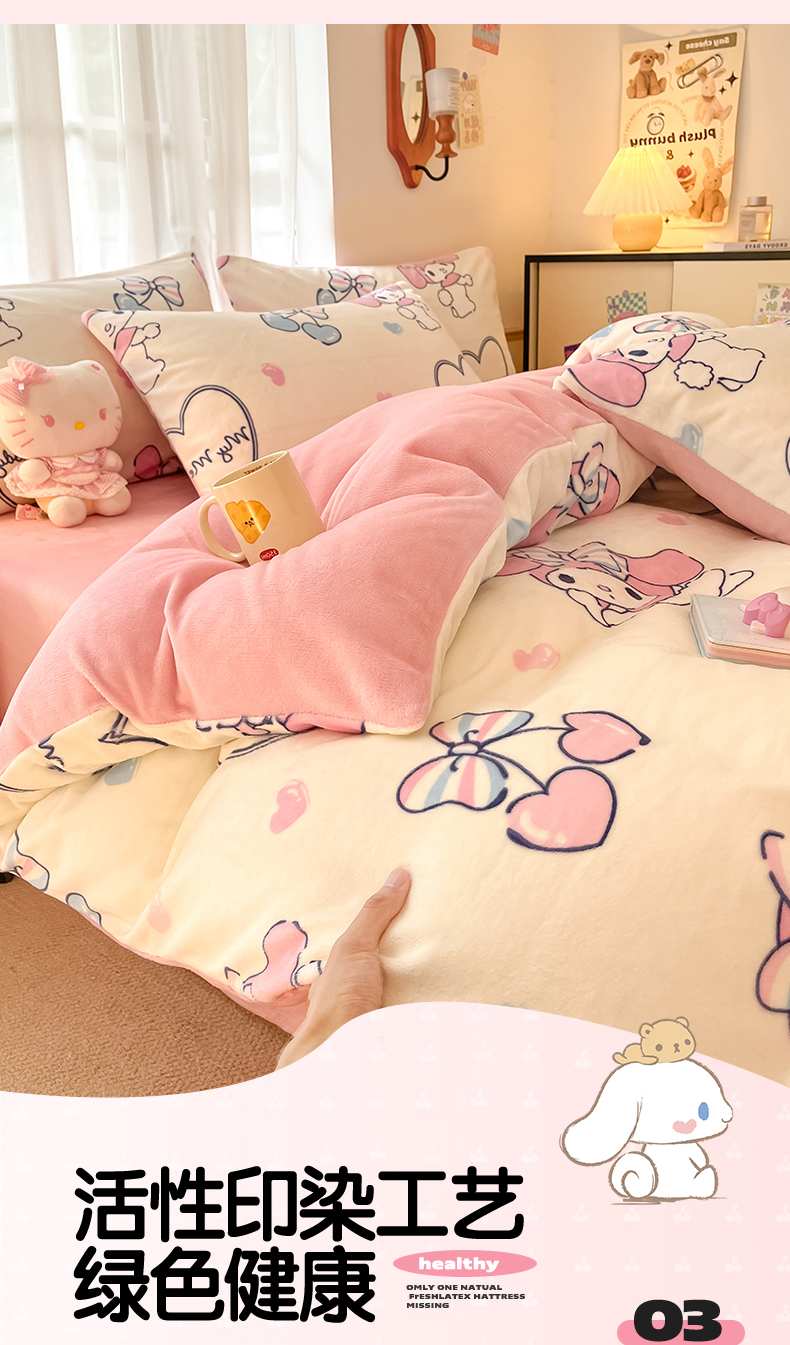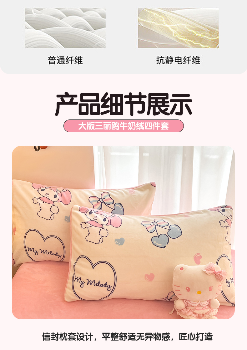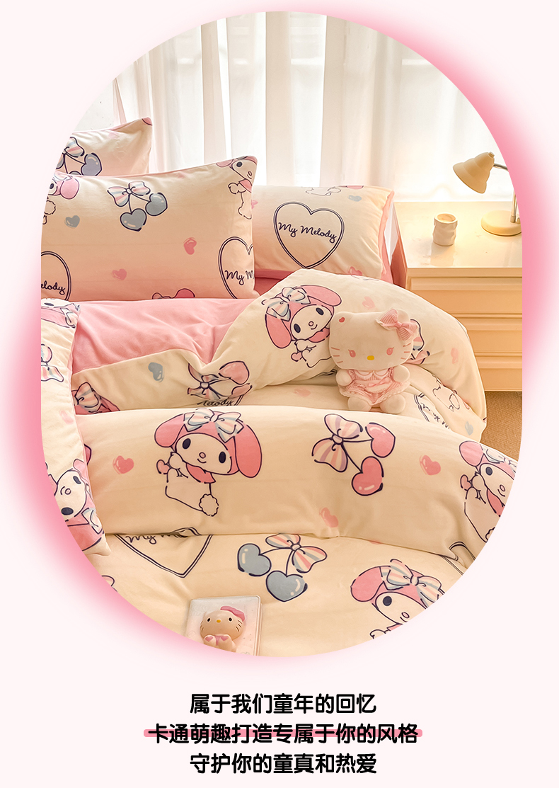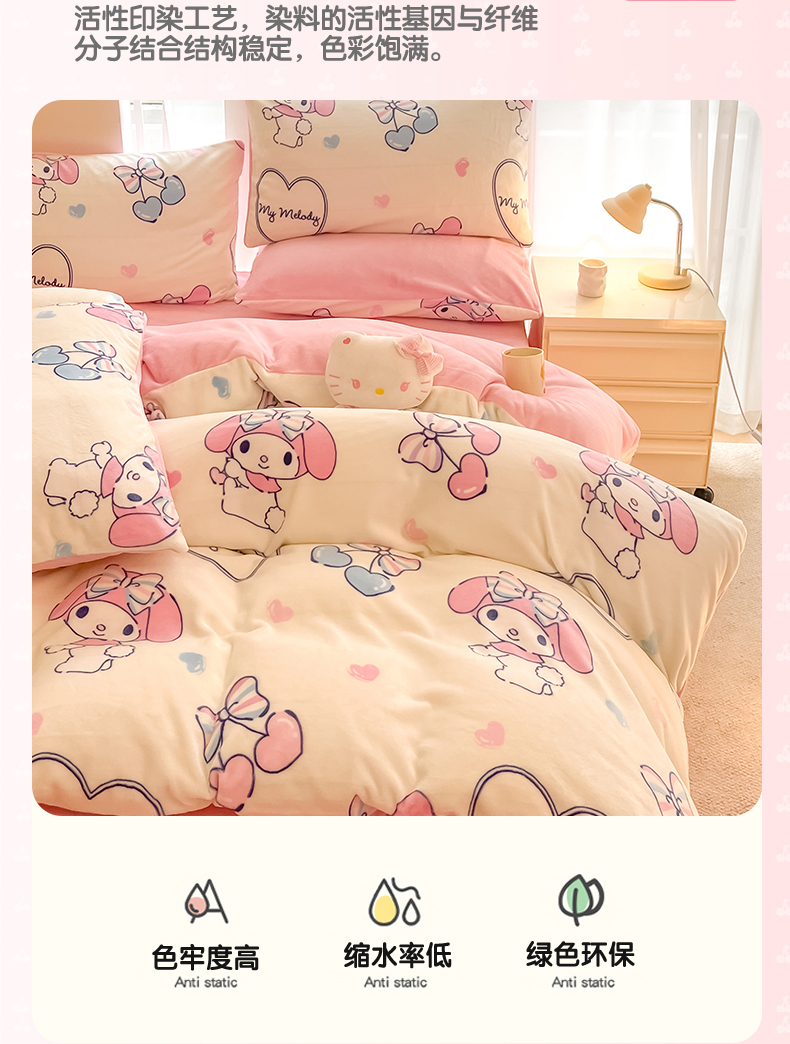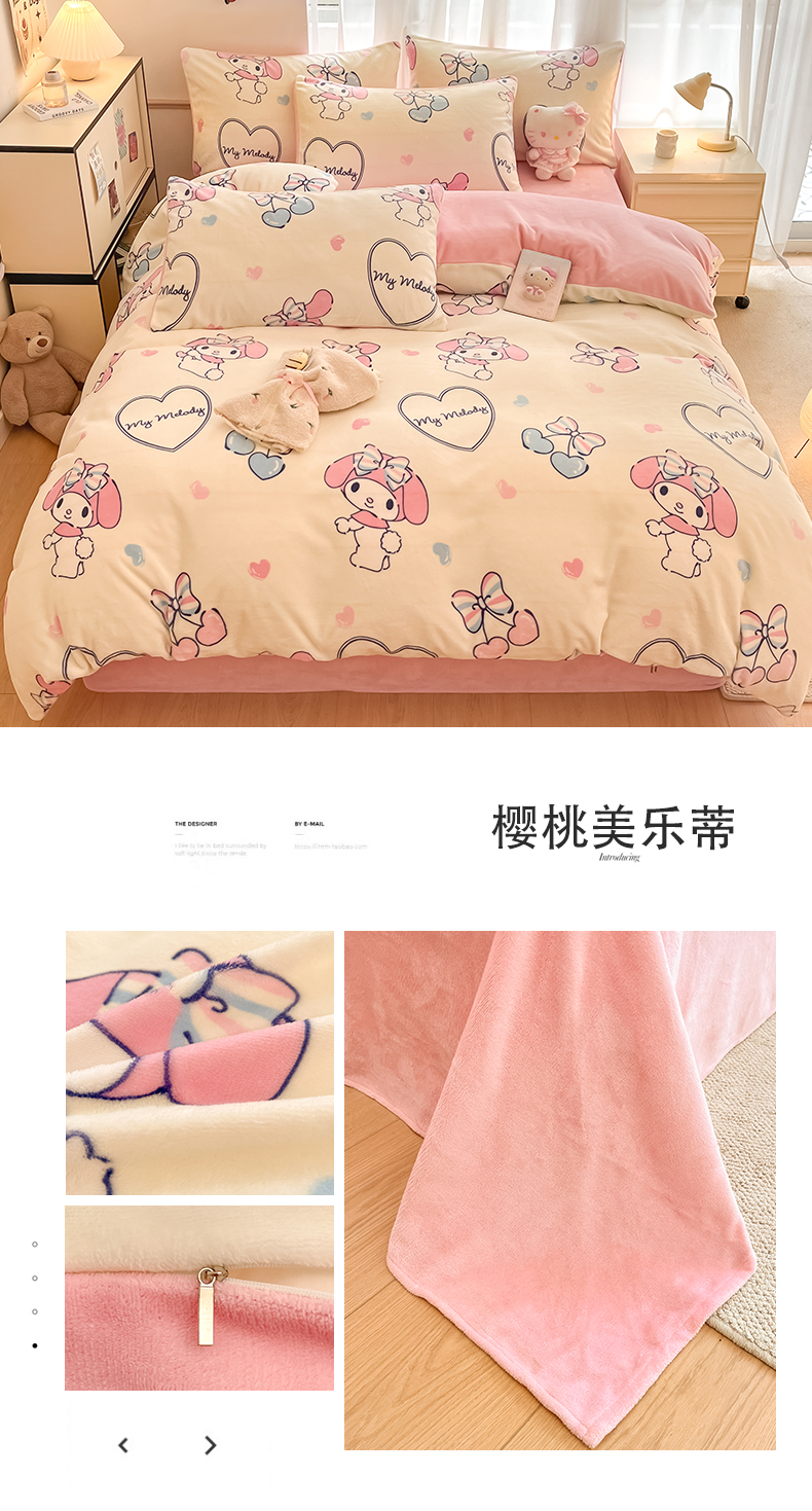 商品名称:星座家纺 2025新款三丽鸥小版牛奶绒四件套 樱桃美乐蒂
