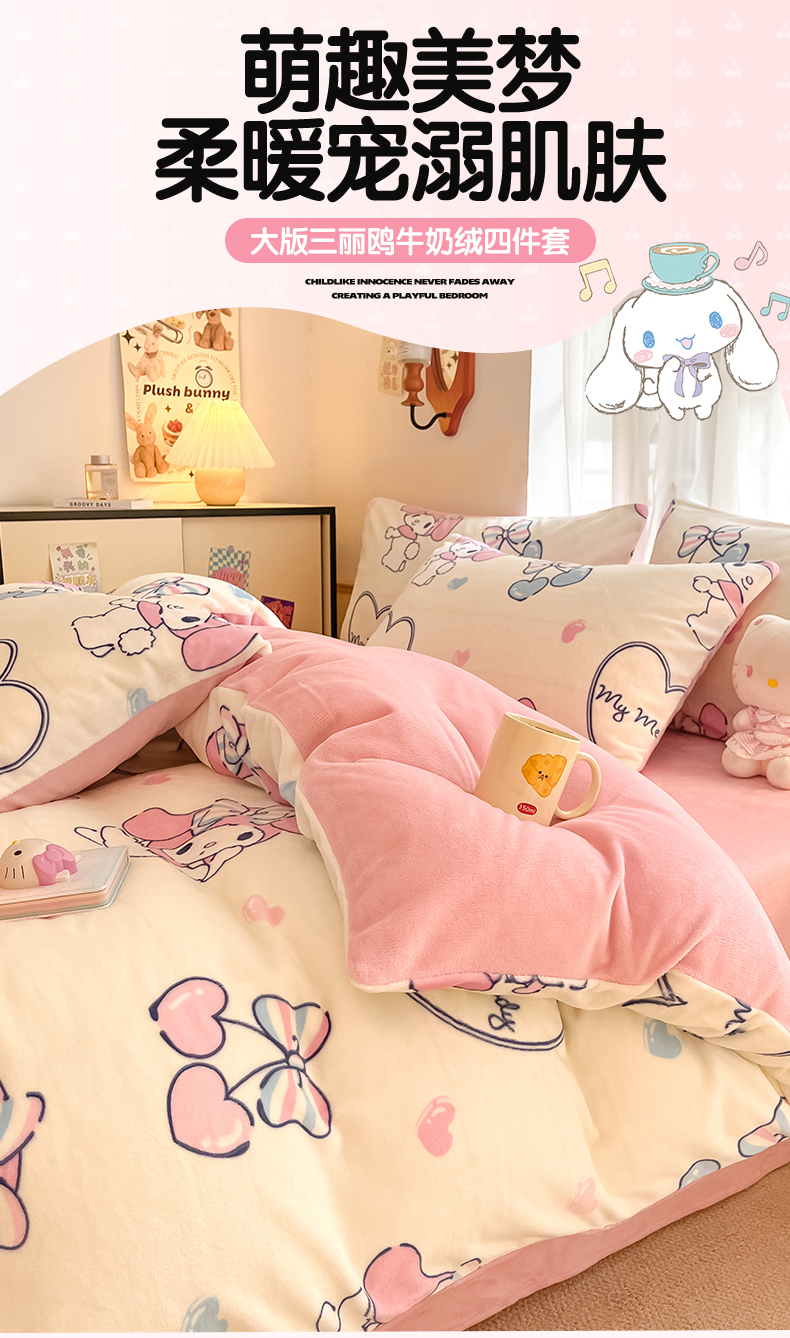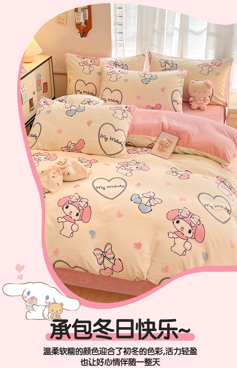 星座家纺 2025新款三丽鸥小版牛奶绒四件套 樱桃美乐蒂