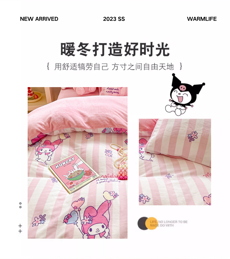 星座家纺 2025新款三丽鸥小版牛奶绒四件套 甜甜美乐蒂