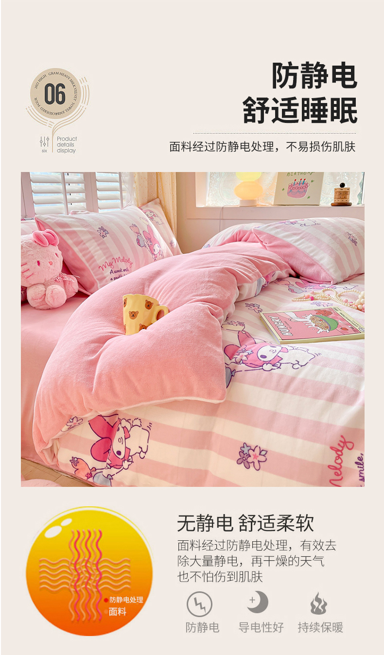 商品名称:星座家纺 2025新款三丽鸥小版牛奶绒四件套 甜甜美乐蒂