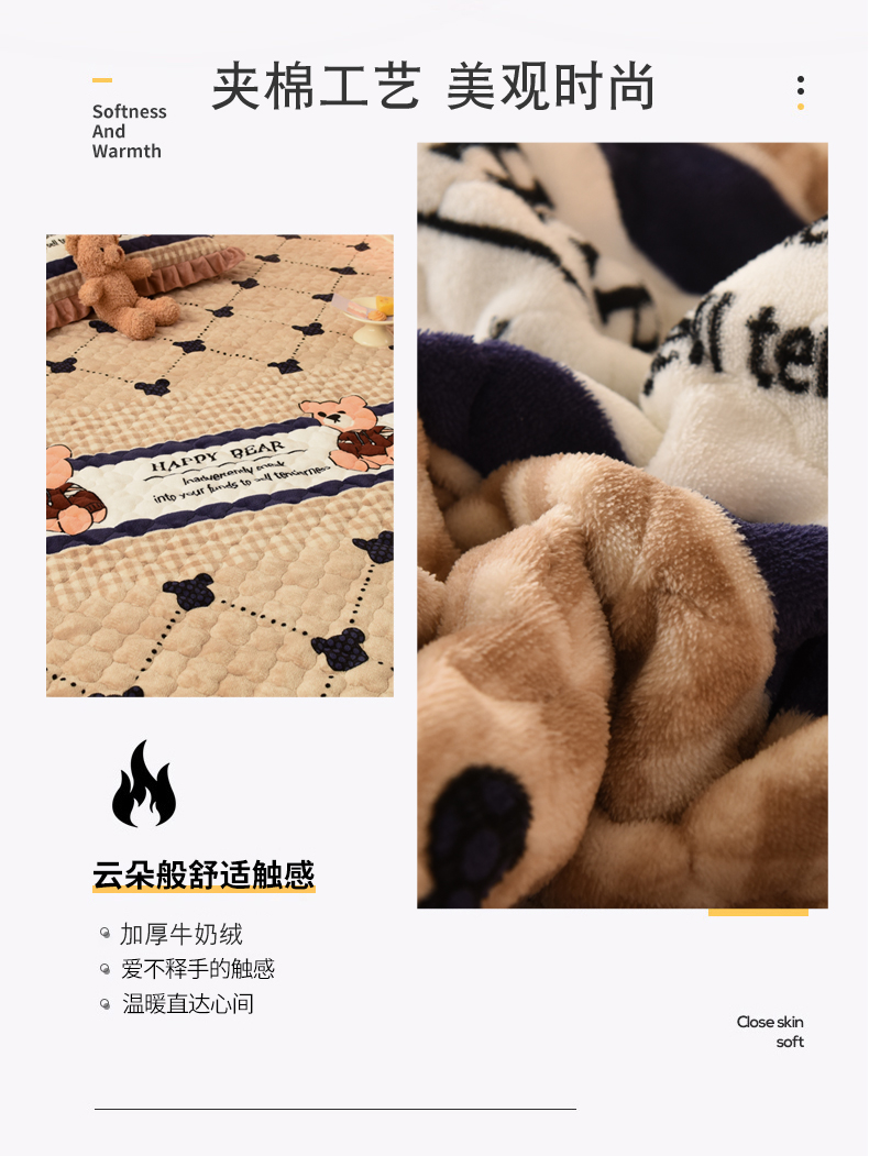 (总)美达家纺 2025新款高克重牛奶绒花边款夹棉床盖三件套,巴拉巴拉,格子萌熊,恐龙星球,梦蝶,时来运转,甜蜜奶吧,微笑熊,针织熊