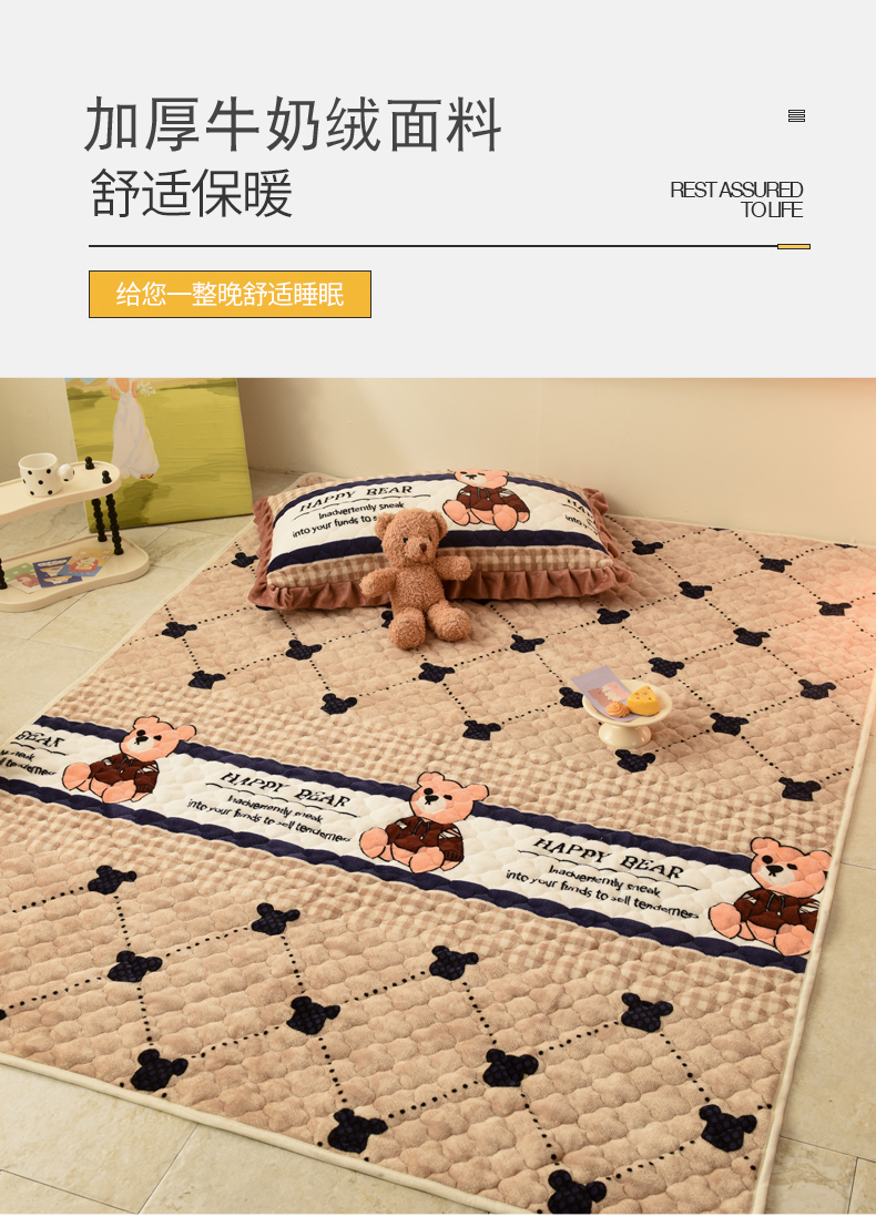 (总)美达家纺 2025新款高克重牛奶绒夹棉床垫,巴拉巴拉,格子萌熊,恐龙星球,梦蝶,时来运转,甜蜜奶吧,微笑熊,针织熊