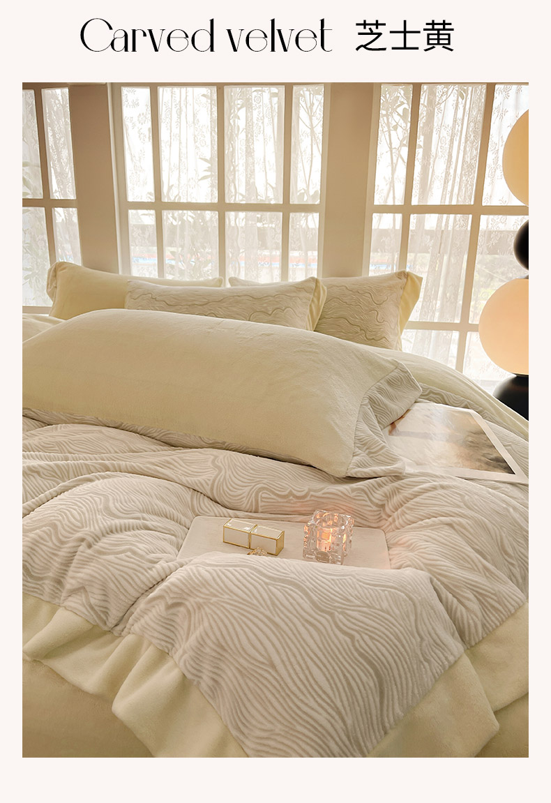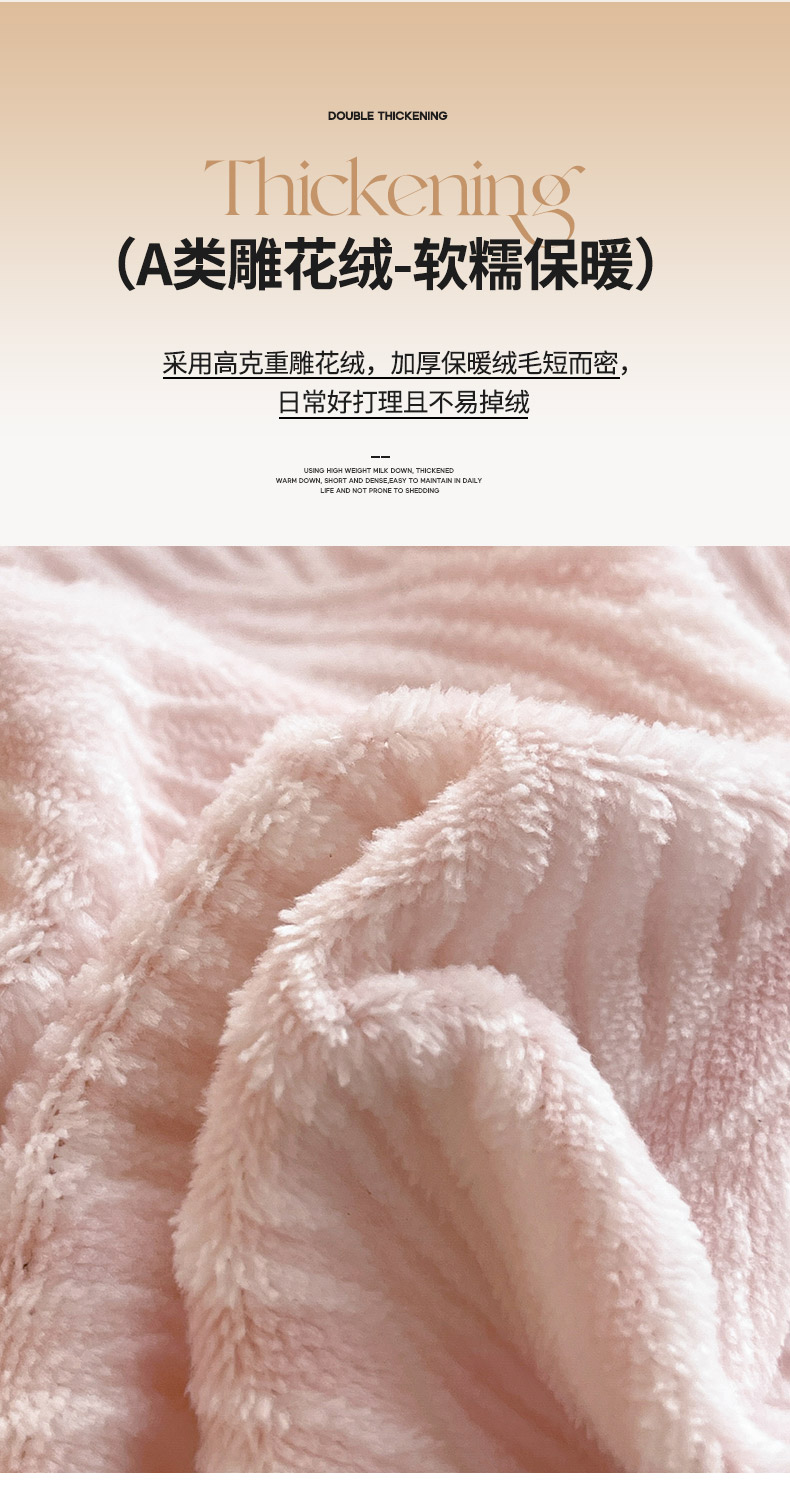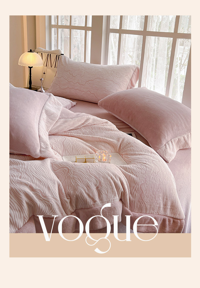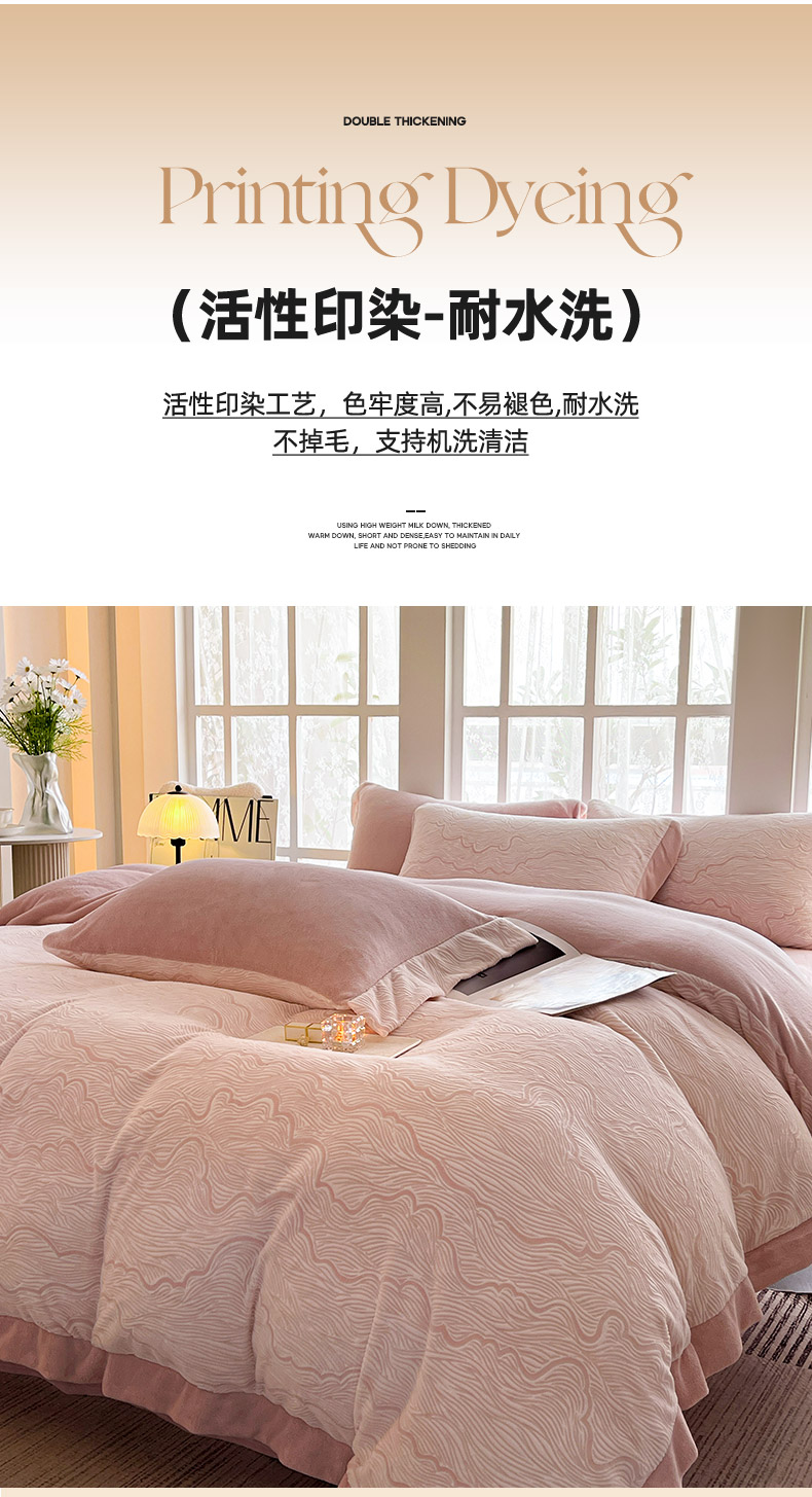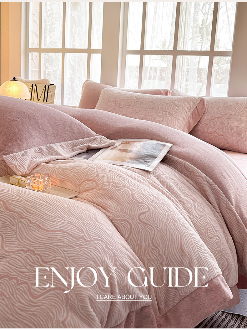 秋冬季A类加厚保暖牛奶绒四件套刺绣雕花宝宝绒被套床单床笠床上用品 嘉梦纳-静谧粉