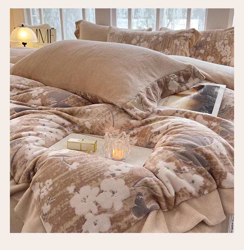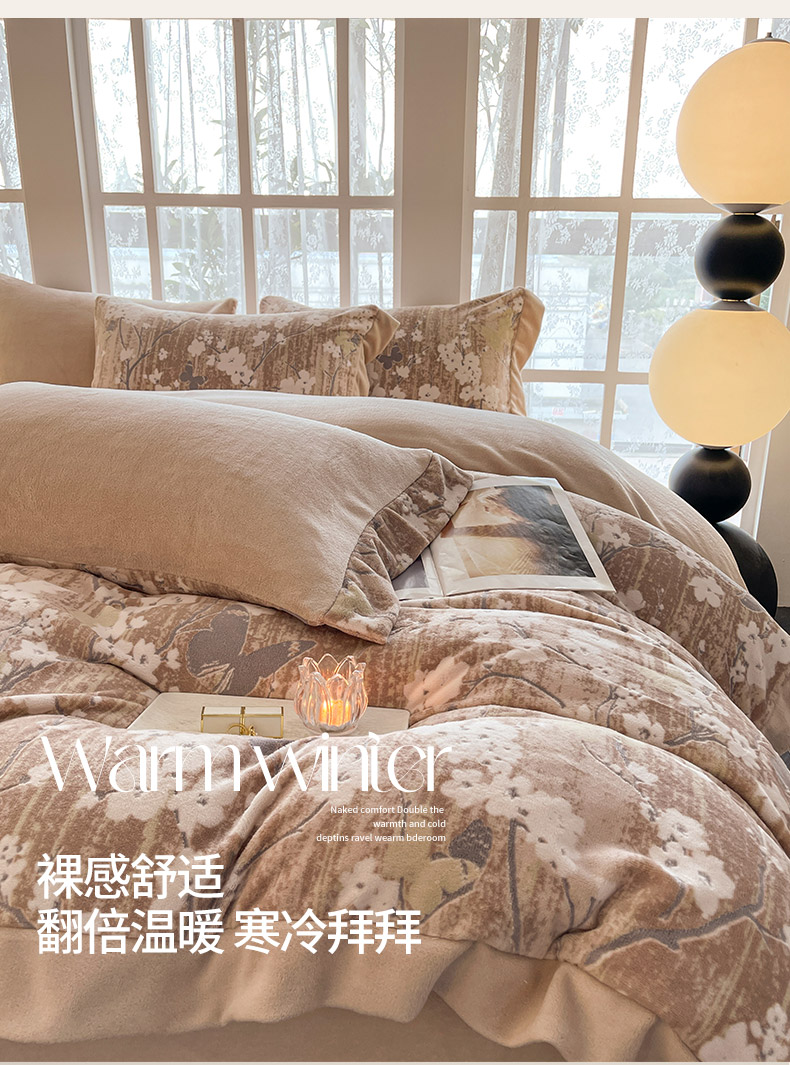 秋冬9斤重加厚保暖牛奶绒四件套刺绣数码宝宝绒被套床单床笠床上用品 塞尔纳-暖棕色
