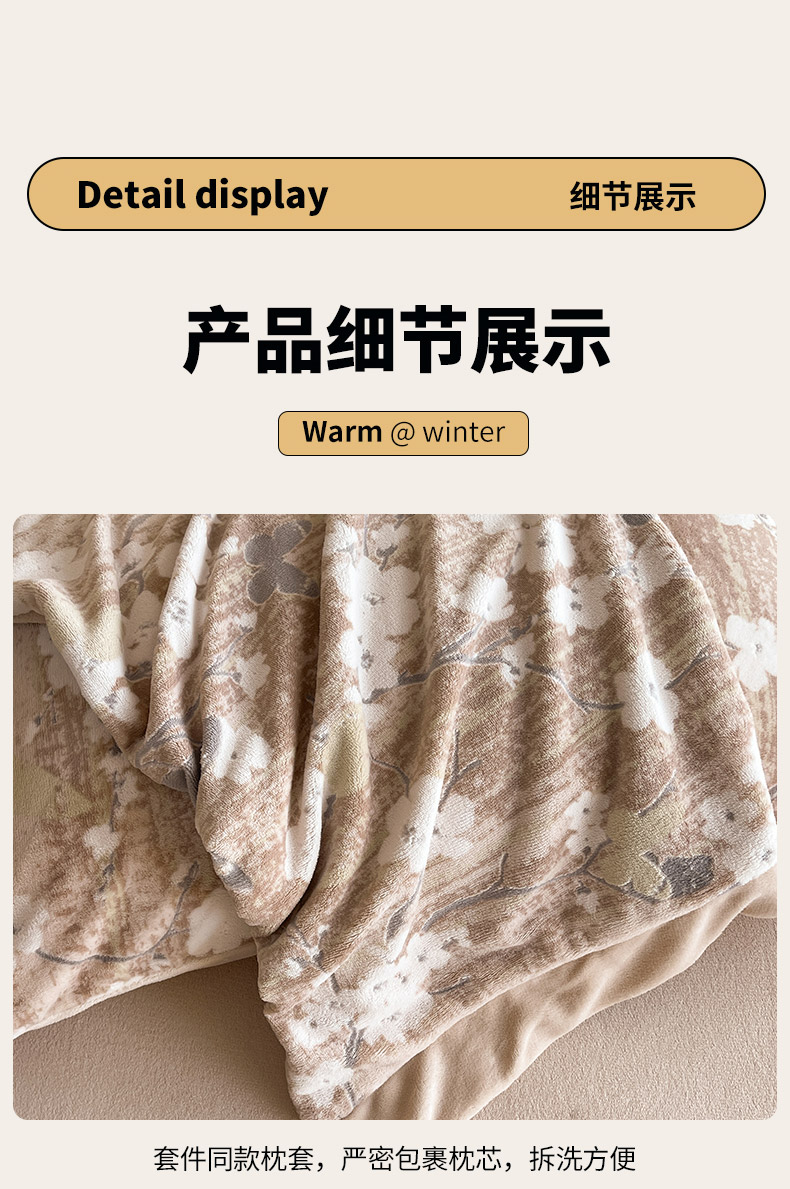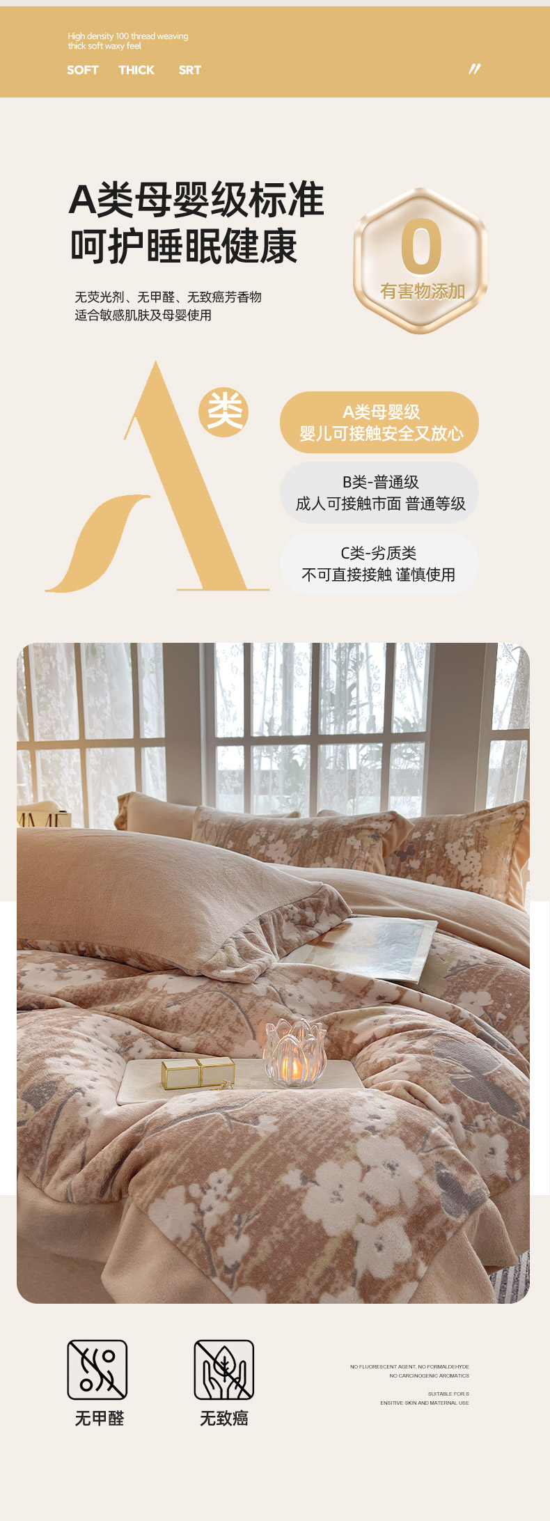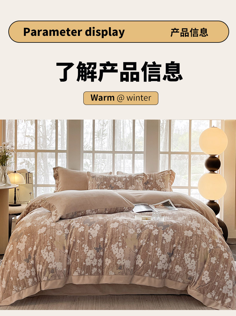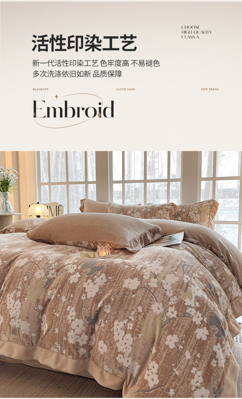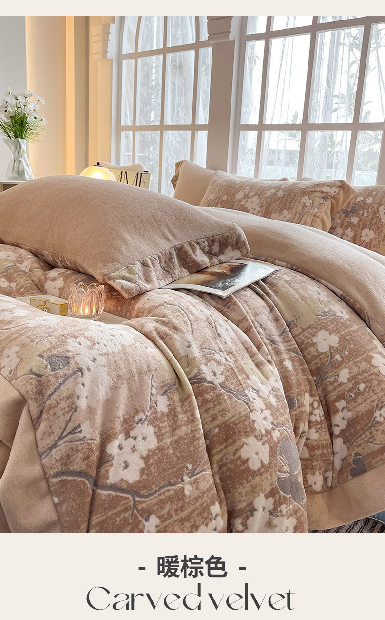 商品名称: 秋冬9斤重加厚保暖牛奶绒四件套刺绣数码宝宝绒被套床单床笠床上用品 塞尔纳-暖棕色