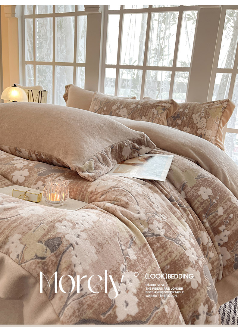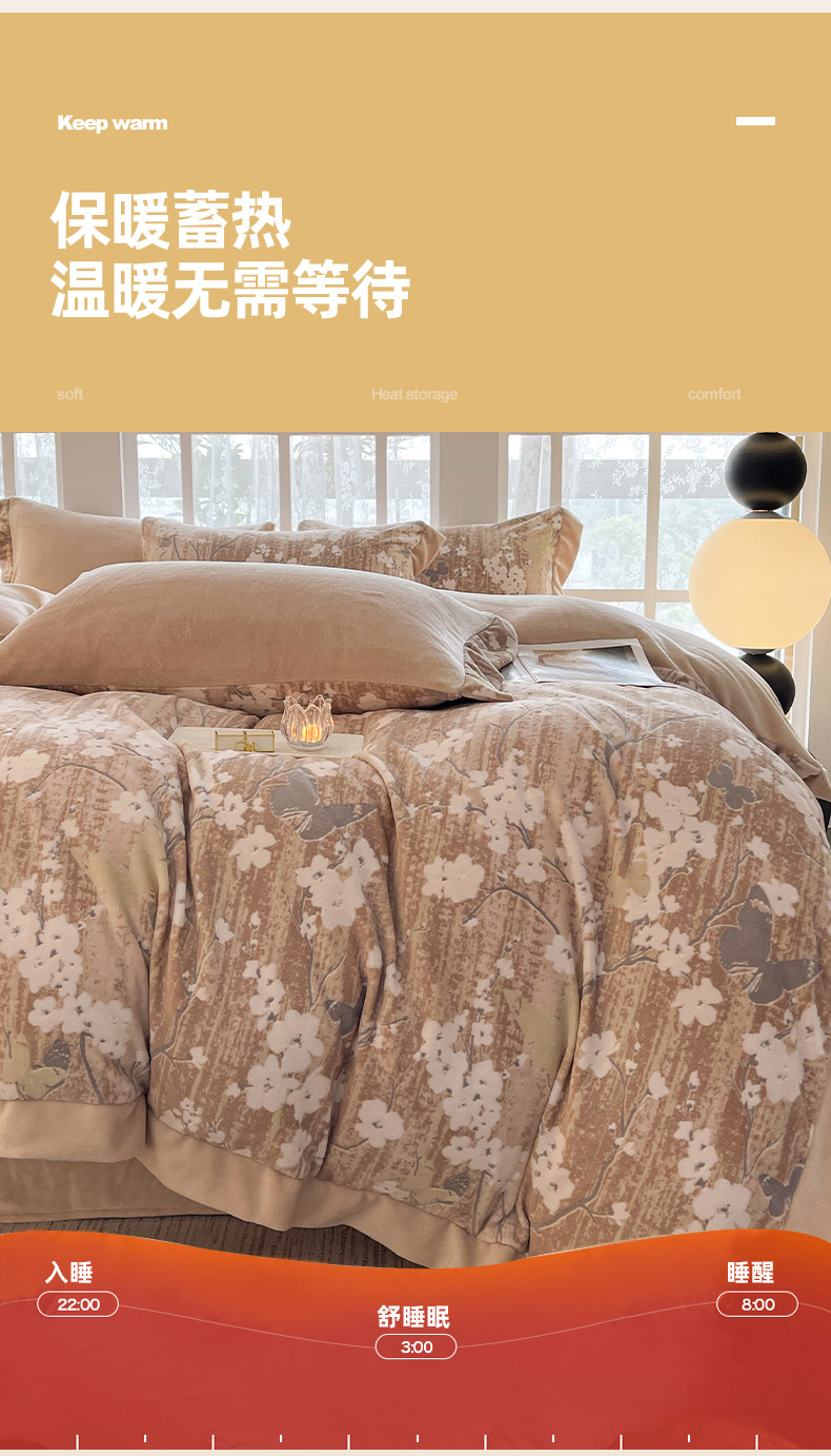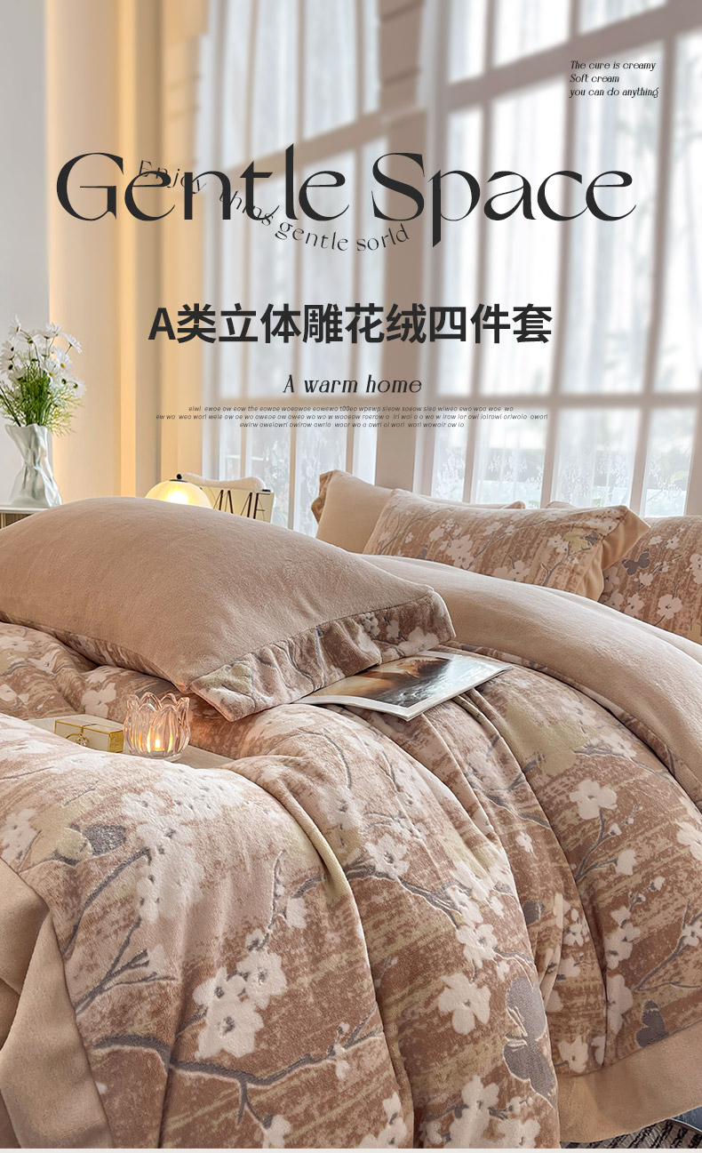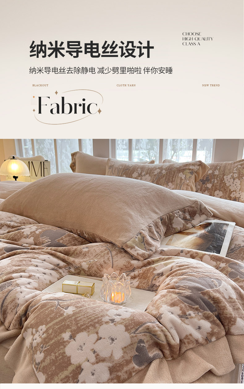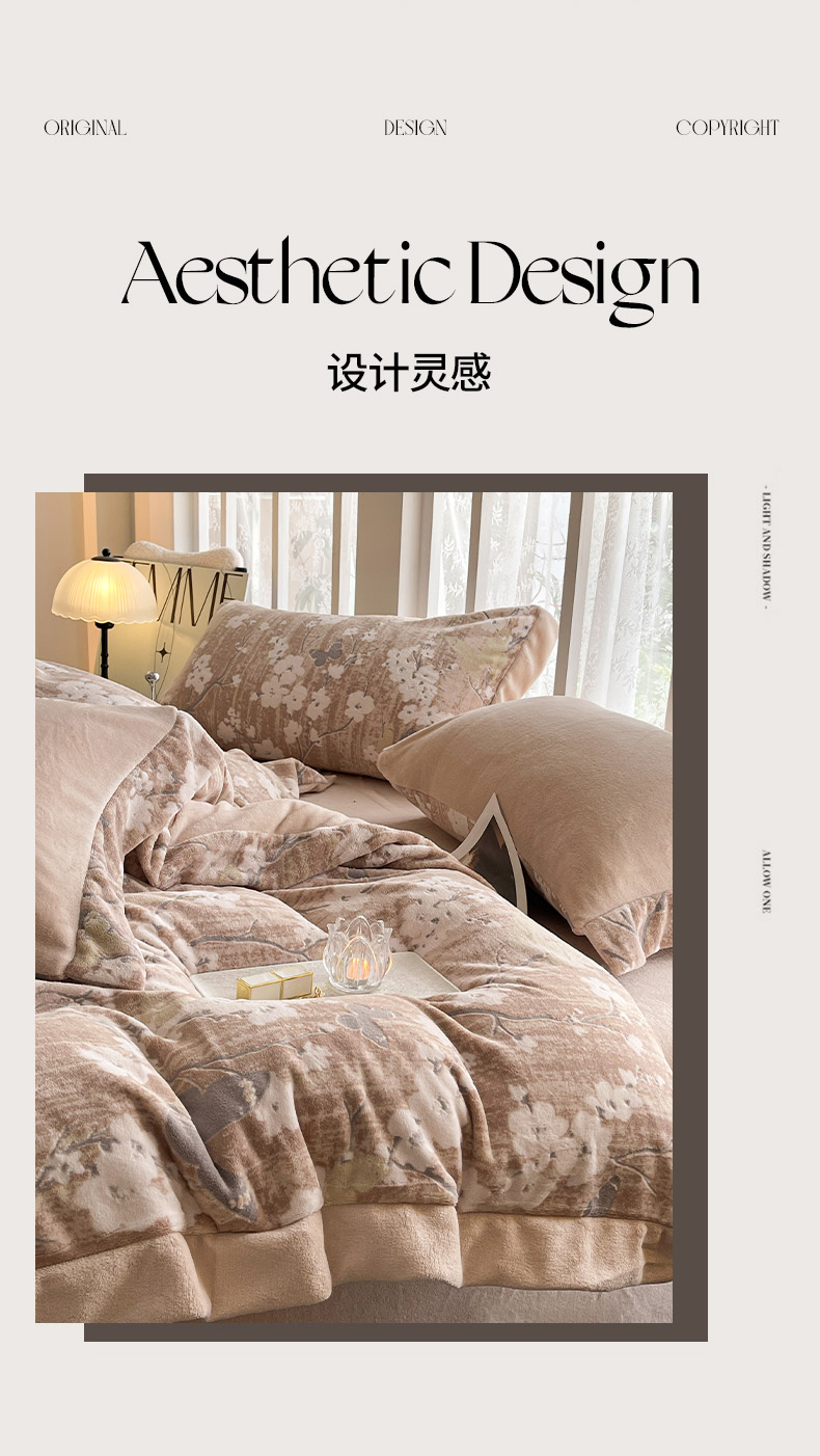 商品名称: 秋冬9斤重加厚保暖牛奶绒四件套刺绣数码宝宝绒被套床单床笠床上用品 塞尔纳-暖棕色