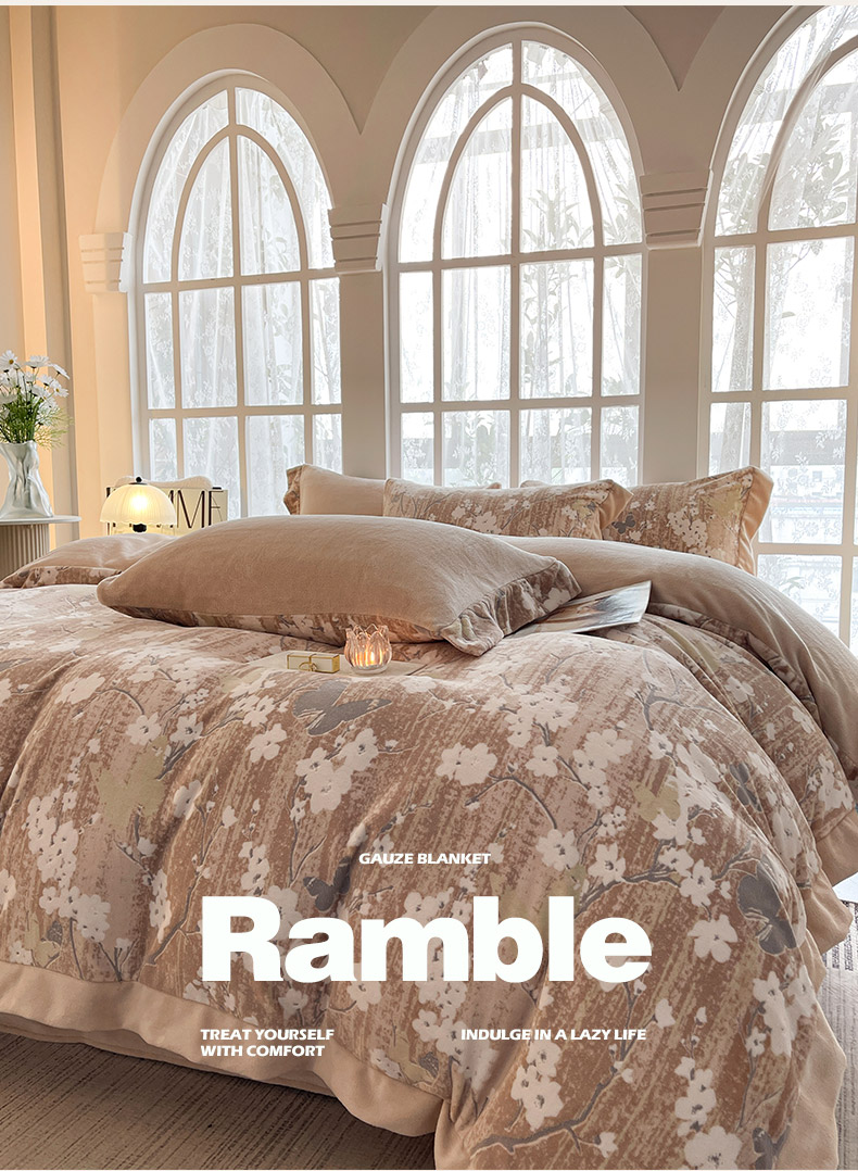 (总)乔利卡沃 2025秋冬季A类加厚全棉磨毛四件套纯棉保暖美式轻奢长绒棉数码印花高端床上用品,花弄影-黄,花弄影-蓝,花弄影-米,花弄影-紫