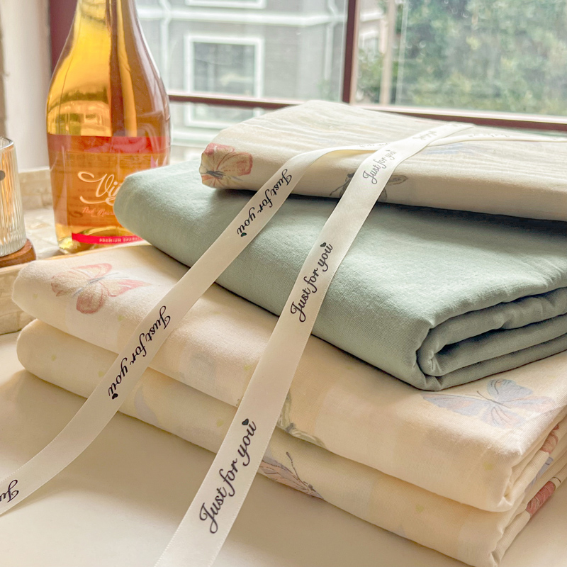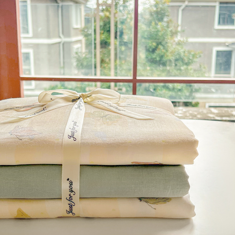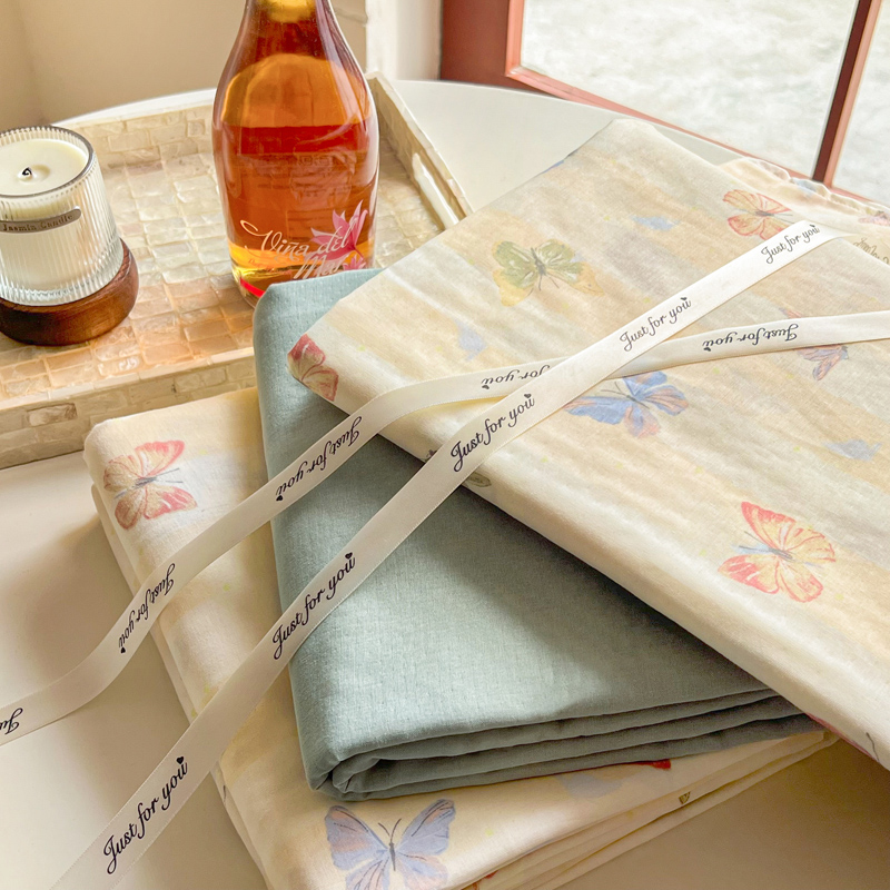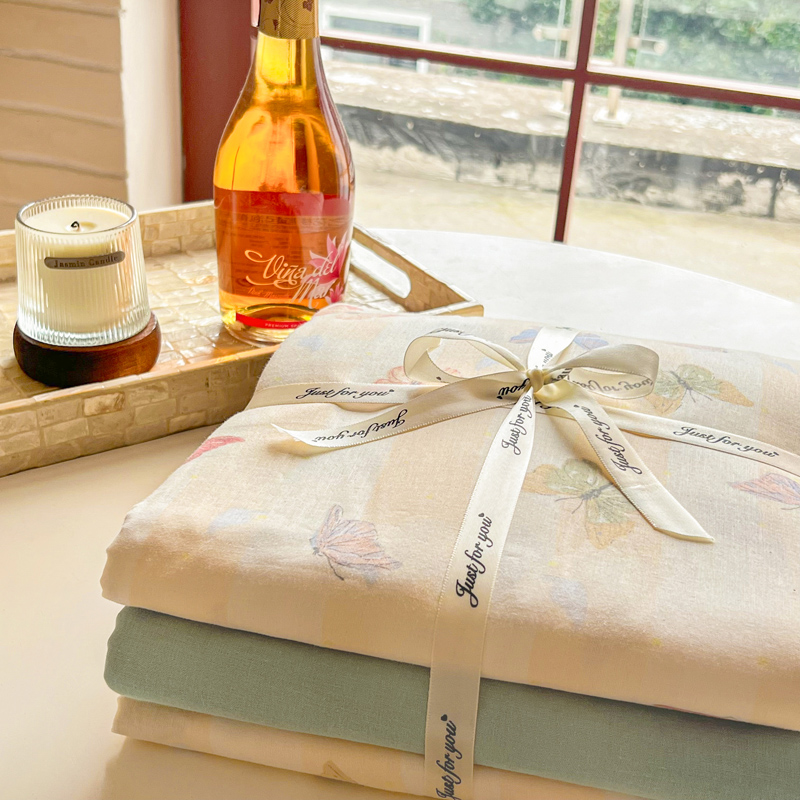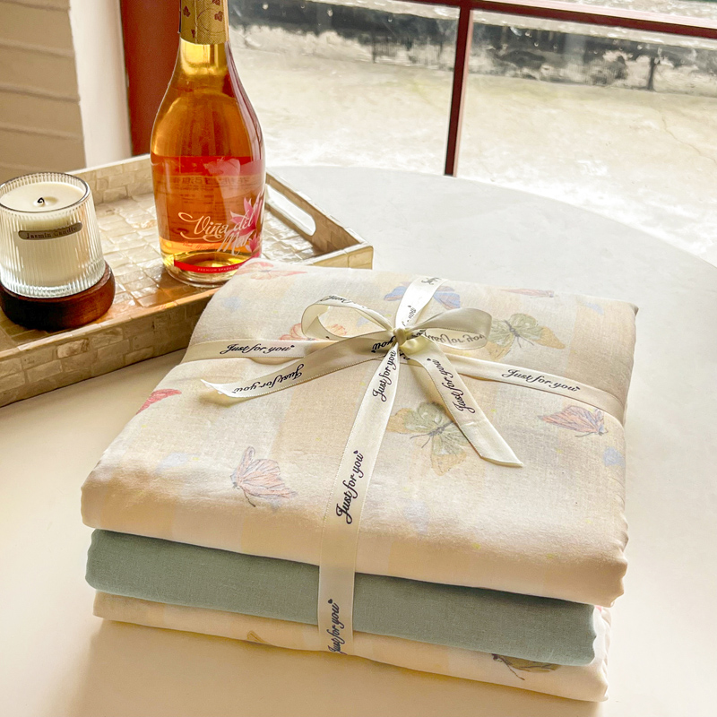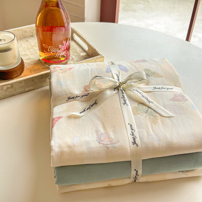 一比一家纺 2025新款全棉母婴级抗菌有氧全棉双层纱亲肤全棉小清新印花三件套四件套 蝶舞