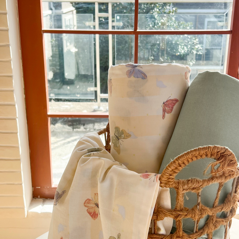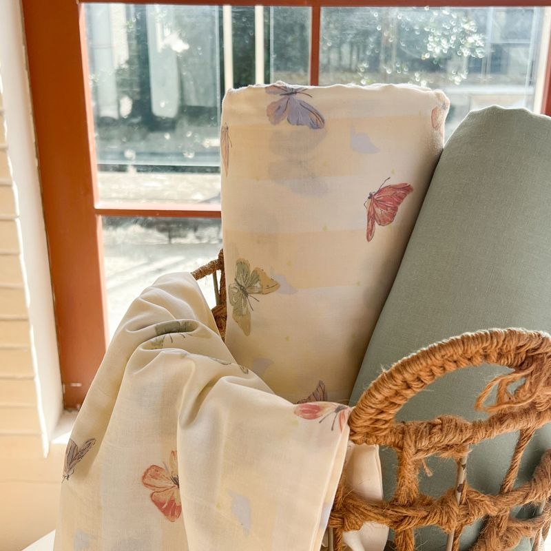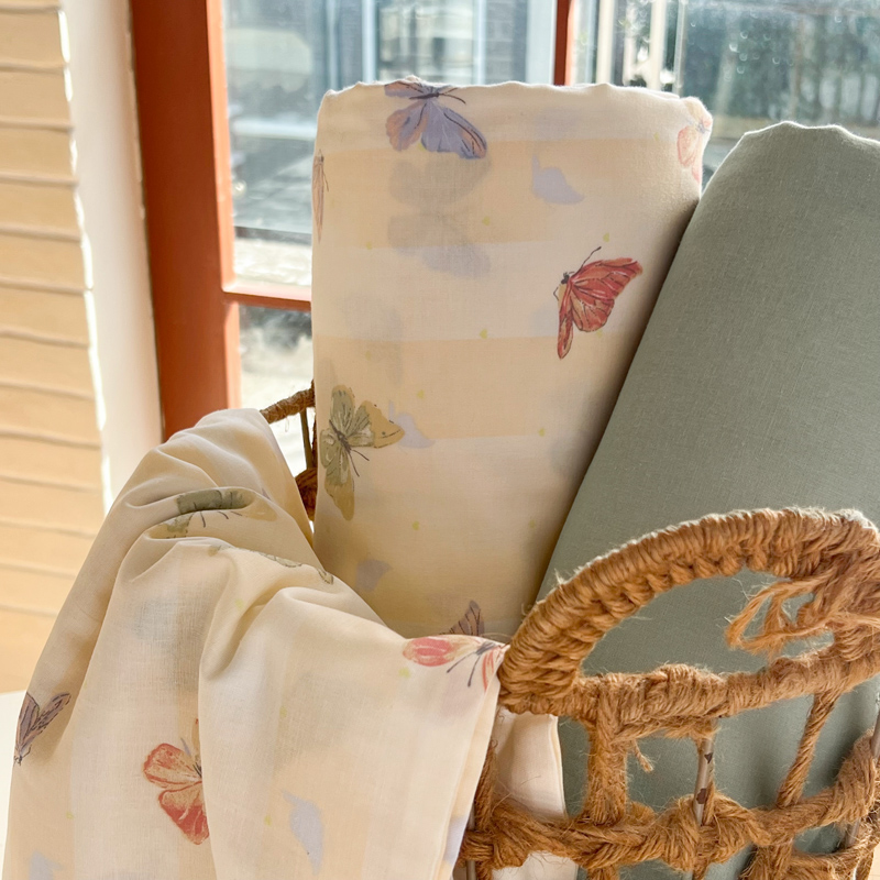 商品名称:一比一家纺 2025新款全棉母婴级抗菌有氧全棉双层纱亲肤全棉小清新印花三件套四件套 蝶舞