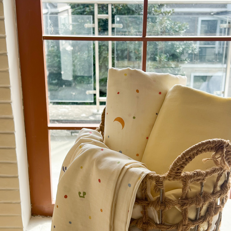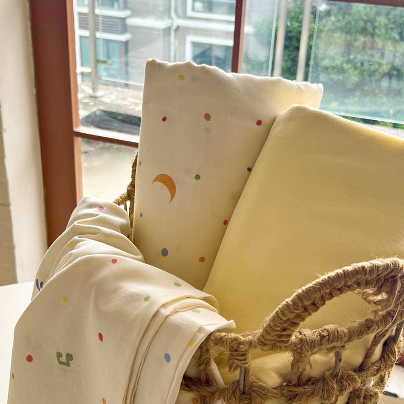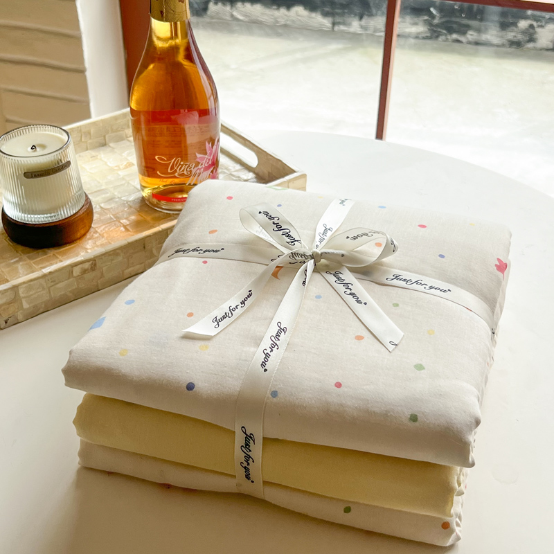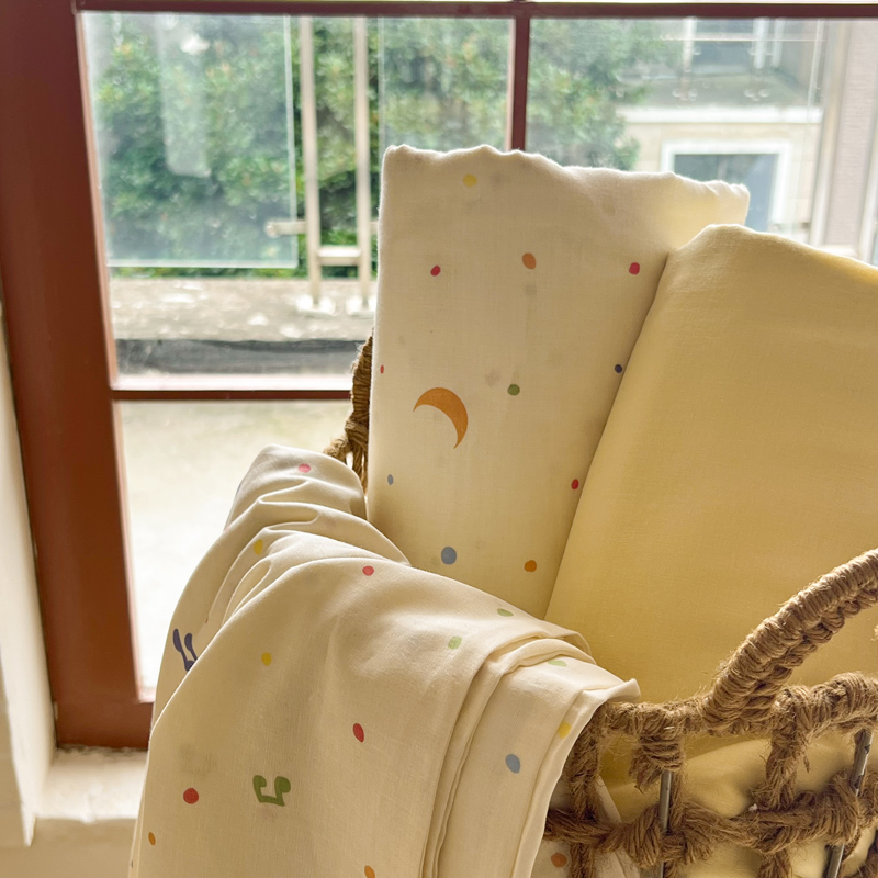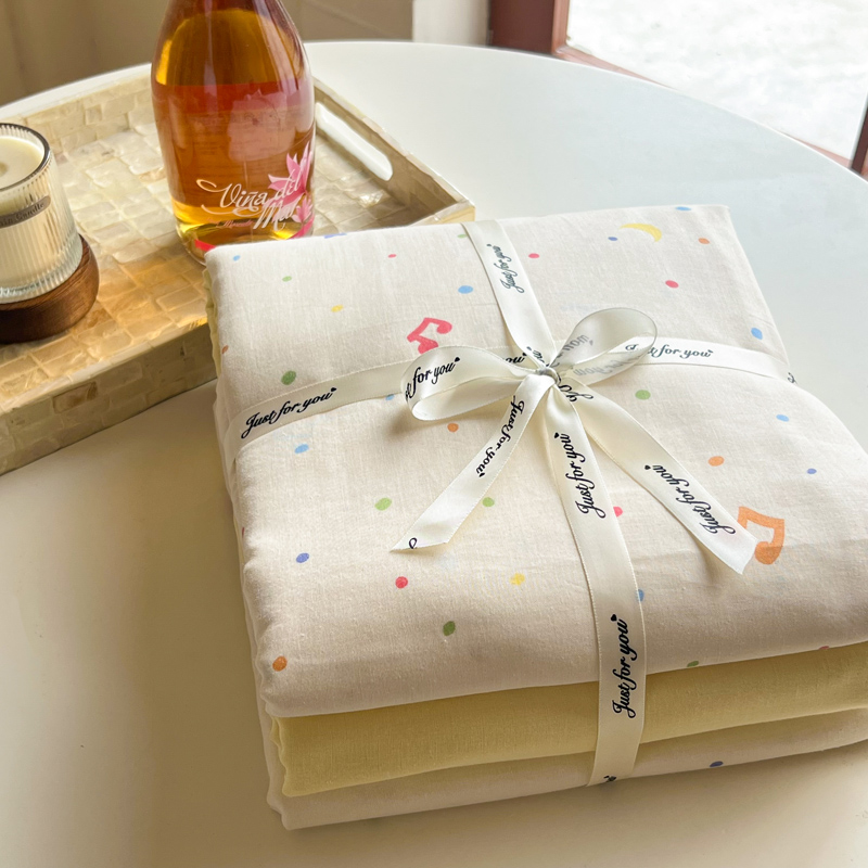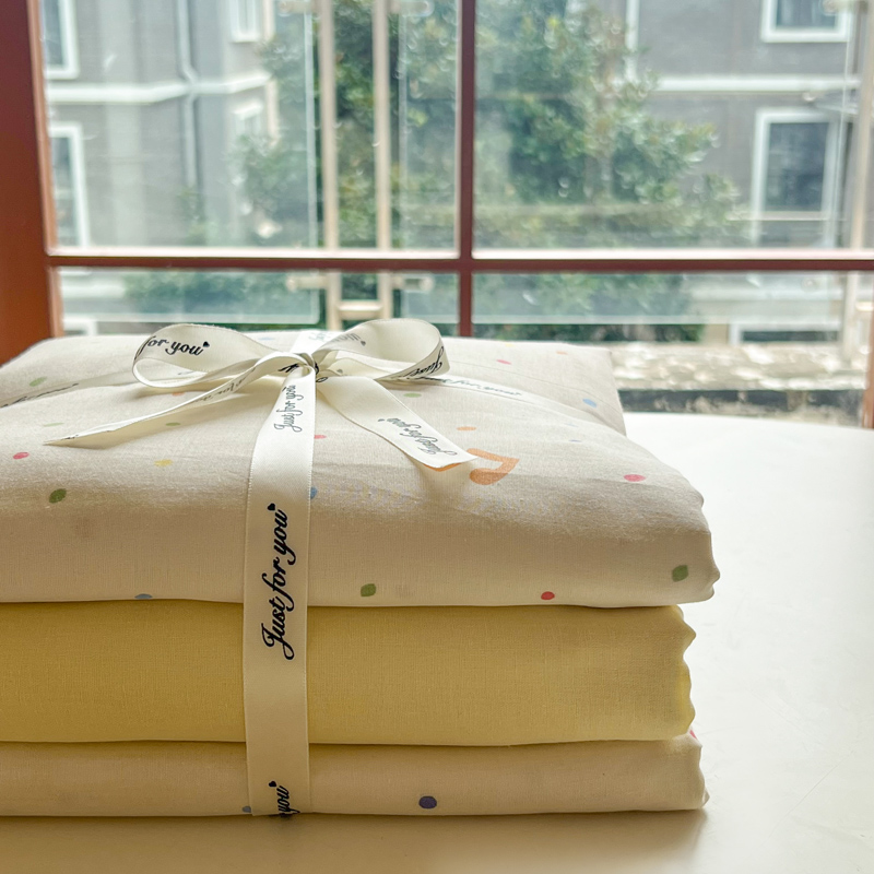 商品名称:一比一家纺 2025新款全棉母婴级抗菌有氧全棉双层纱亲肤全棉小清新印花三件套四件套 奶油派