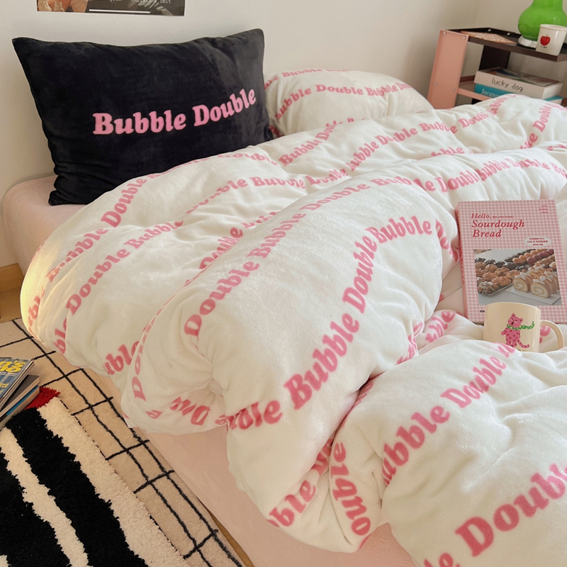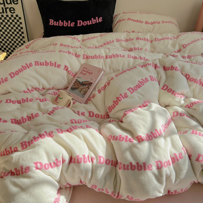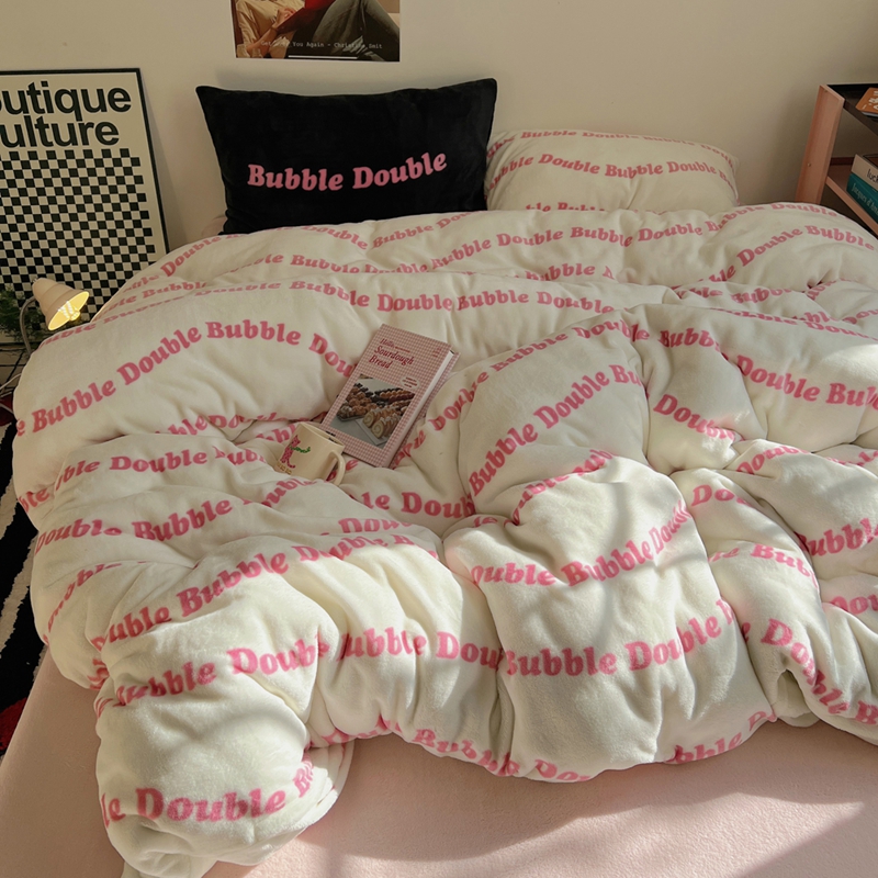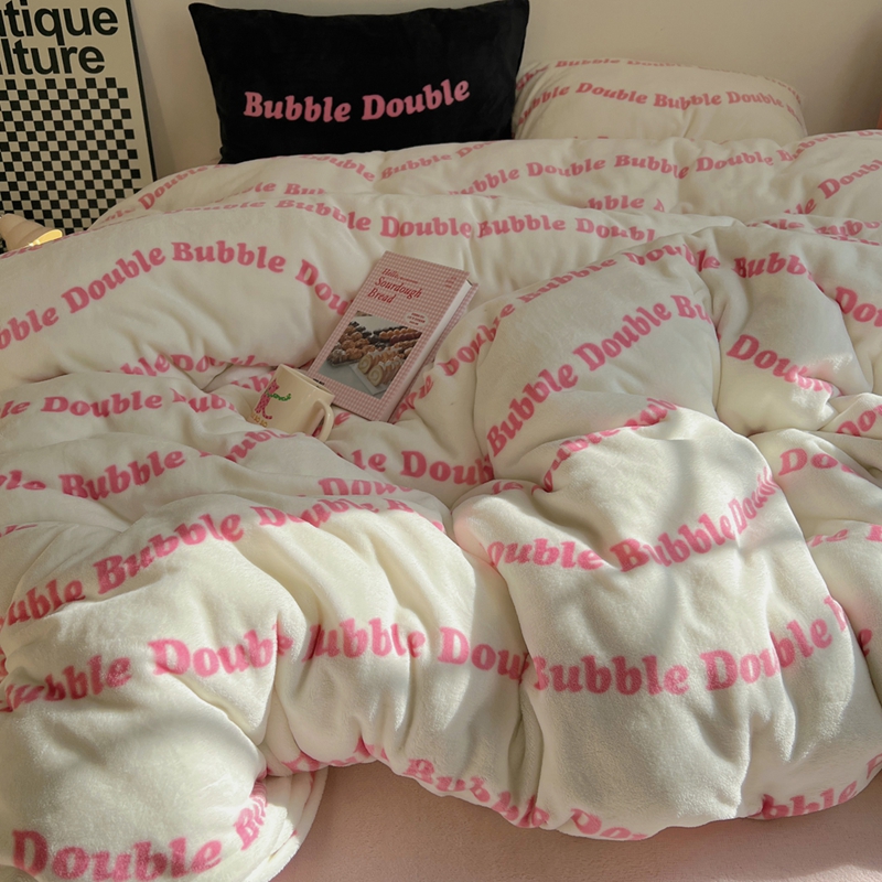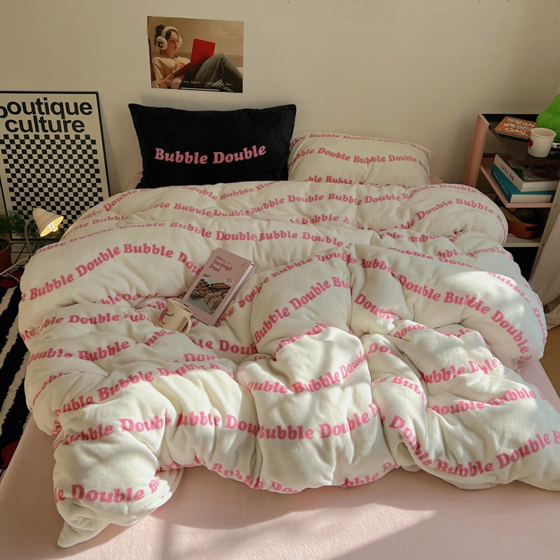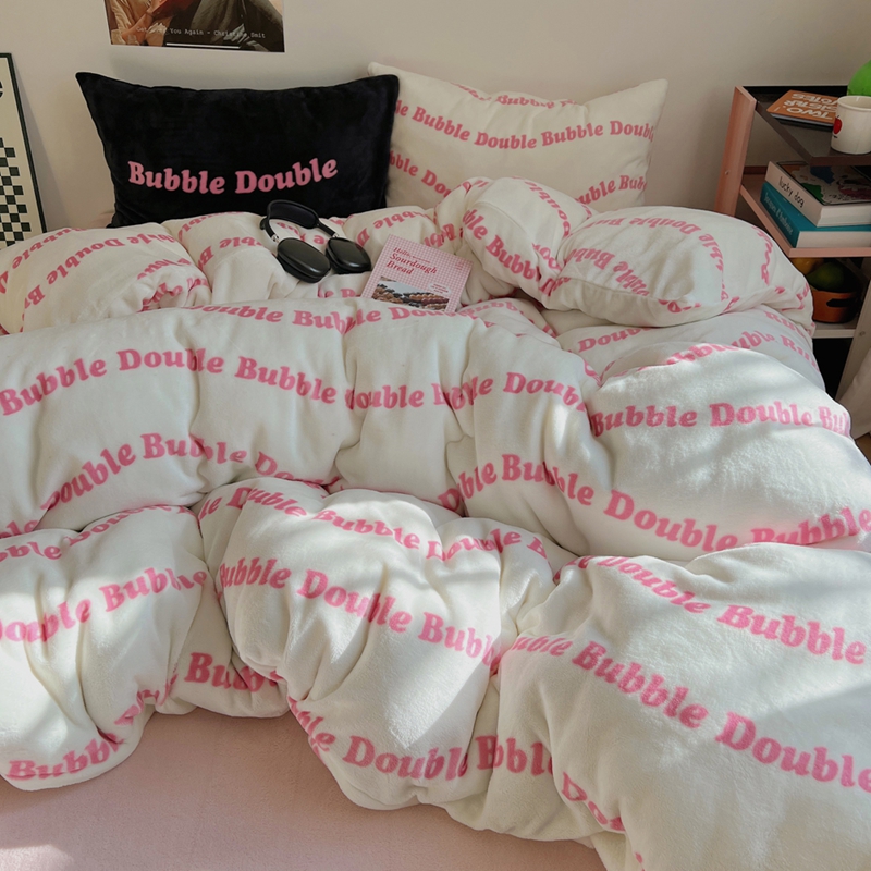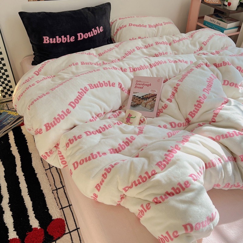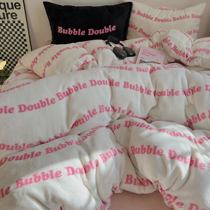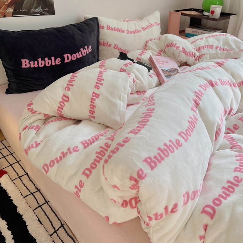 商品名称:桃喜 2024新款多巴胺牛奶绒甜酷时尚混搭系列四件套 粉白字母