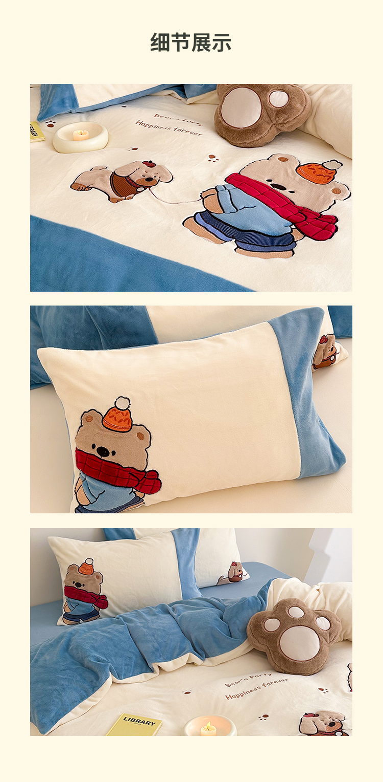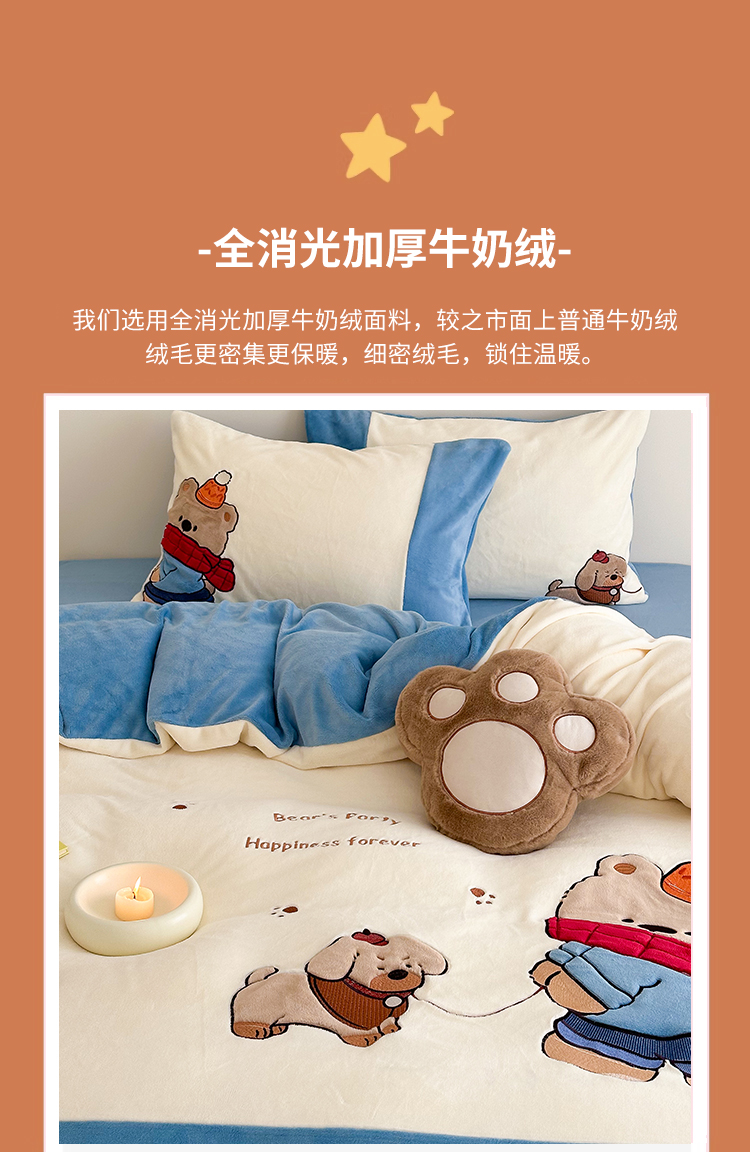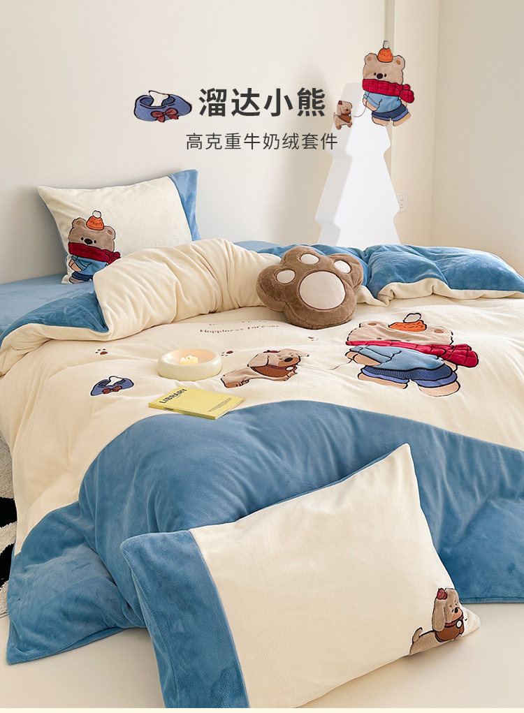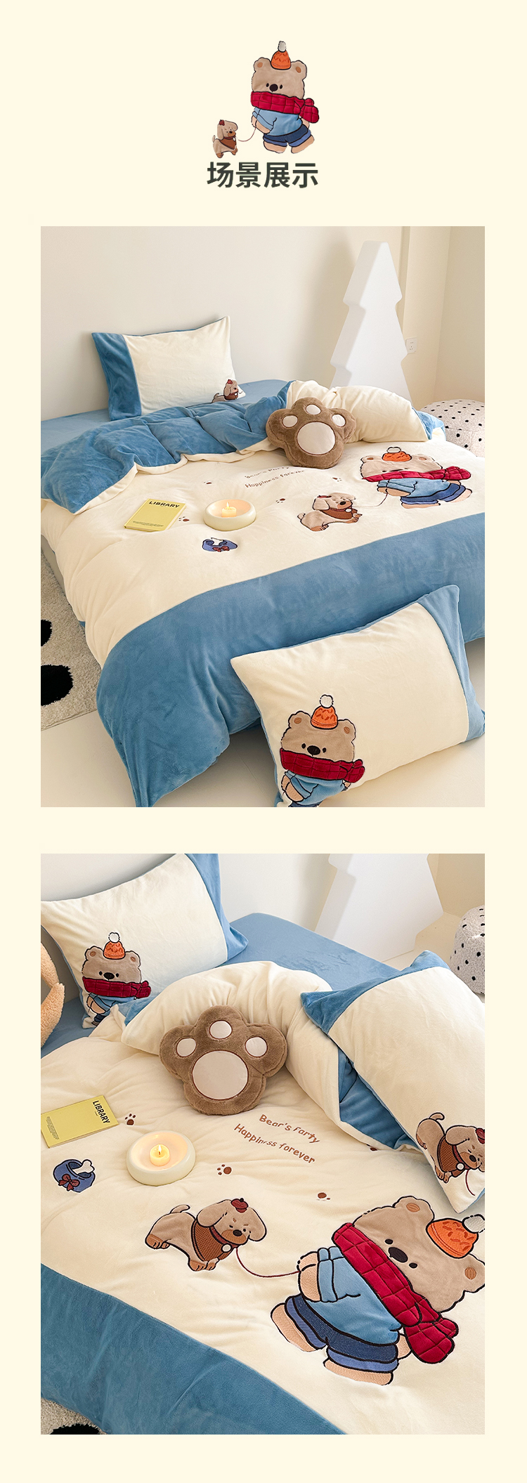 (总)西西家居 2024新款正宗全消光230g牛奶绒四件套-绒-溜达小熊