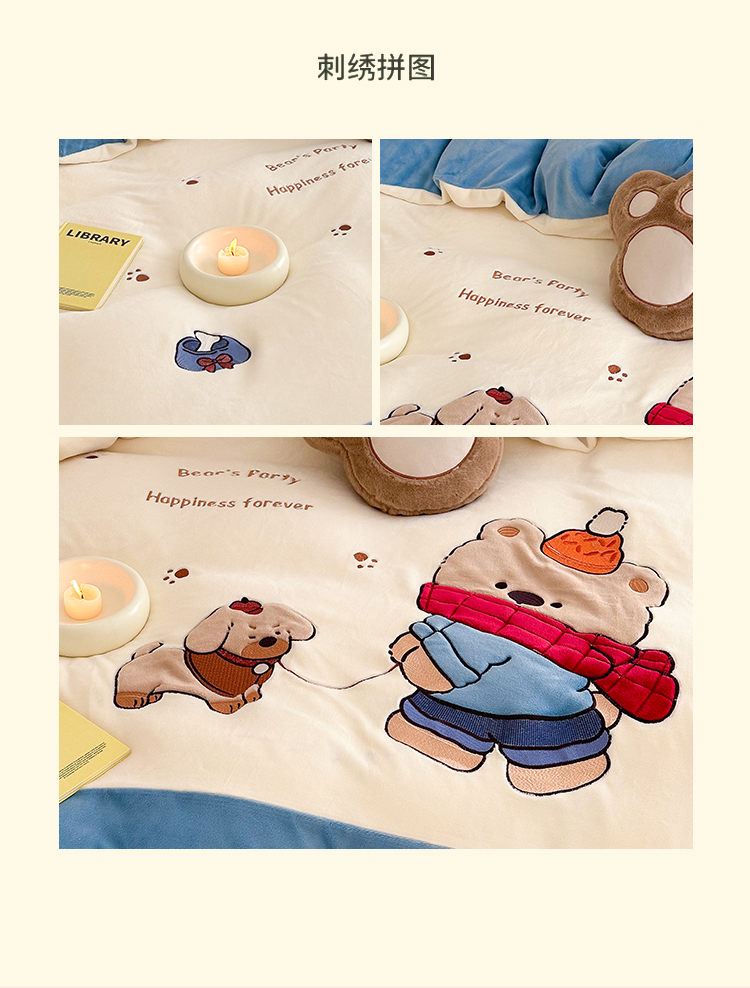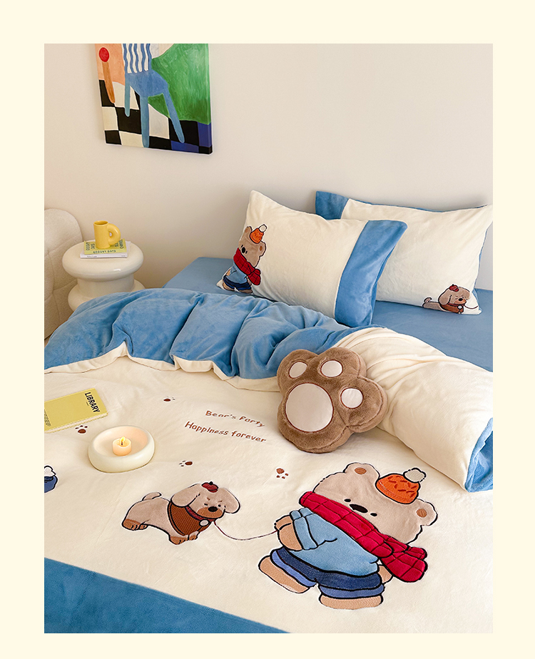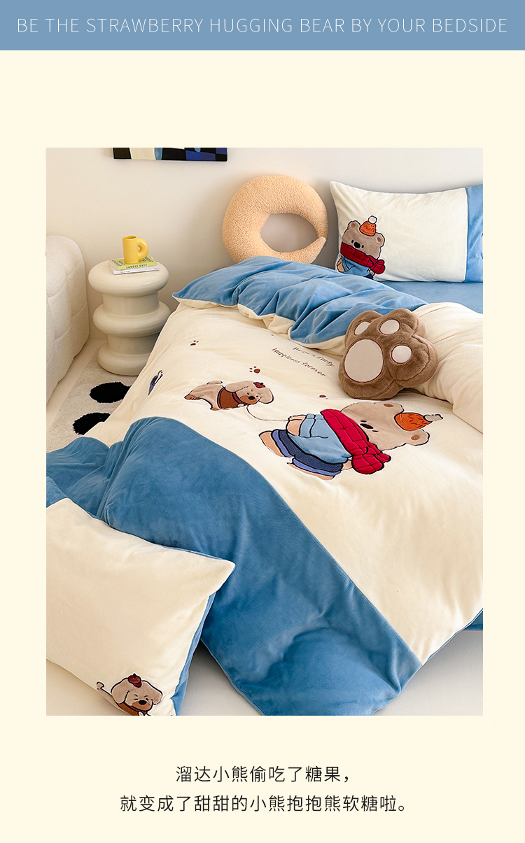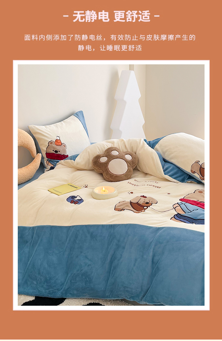 (总)西西家居 2024新款正宗全消光230g牛奶绒四件套-绒-溜达小熊