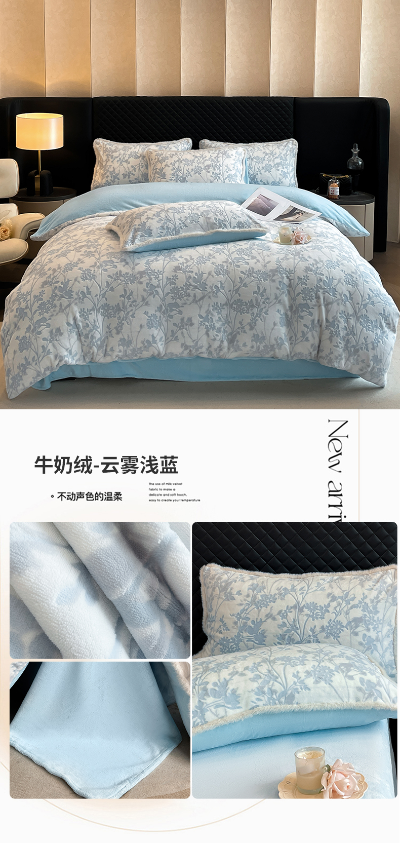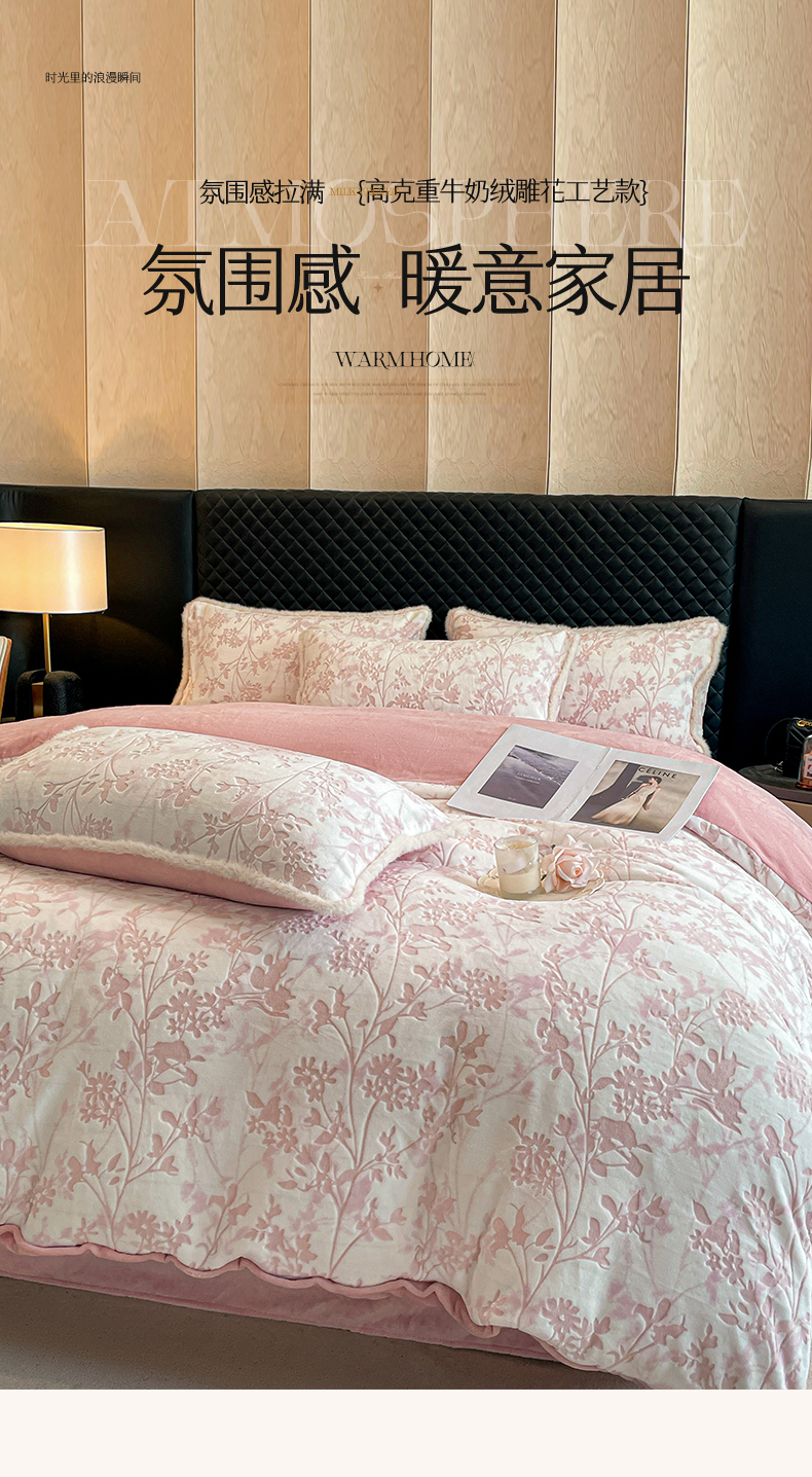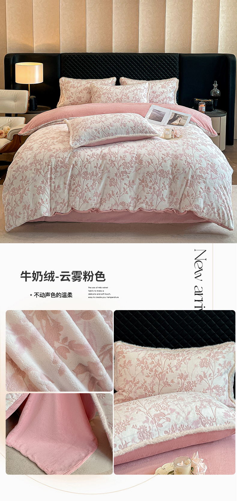 (总)798家纺 2025新款高克重牛奶绒工艺款枕套绒边款四件套