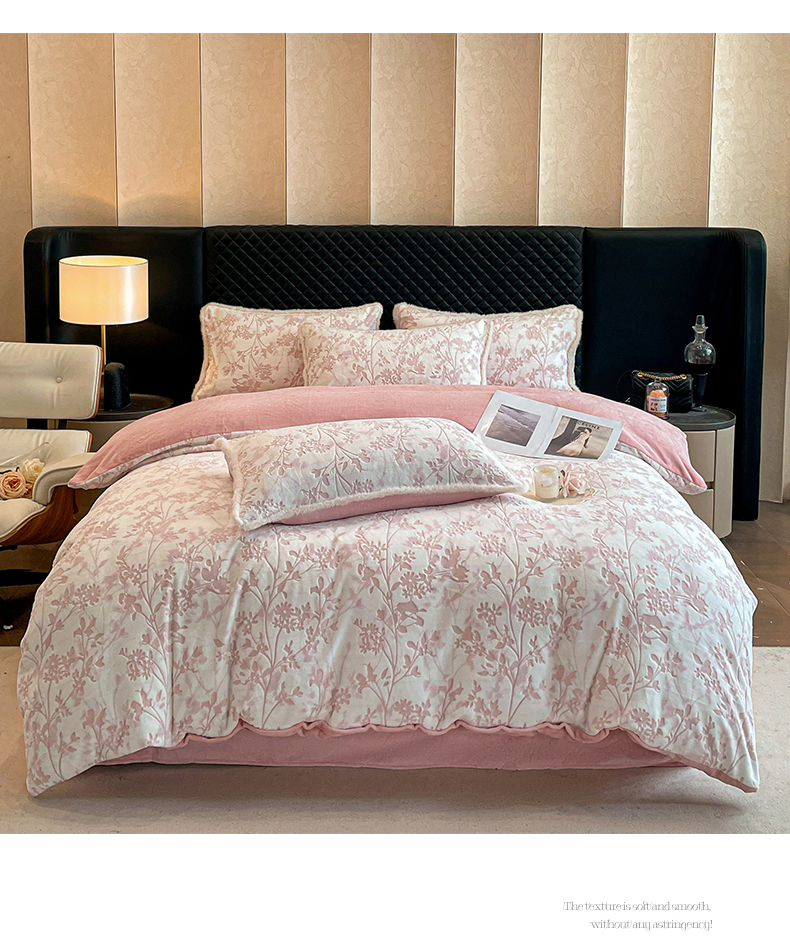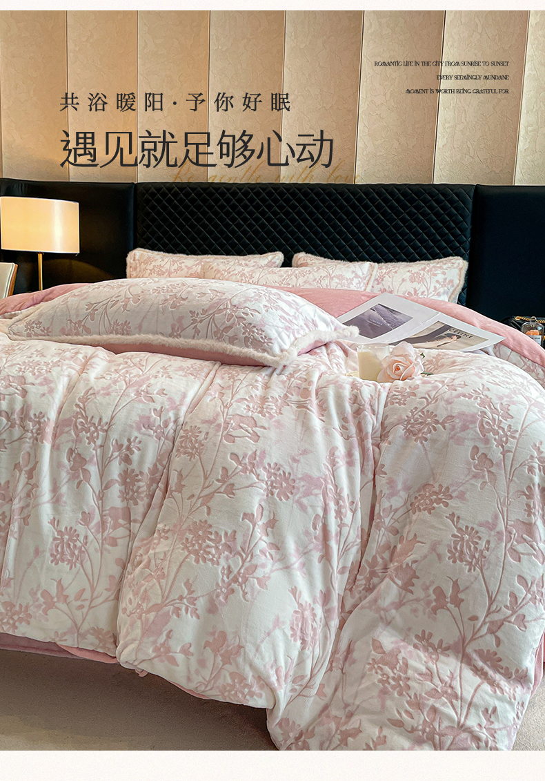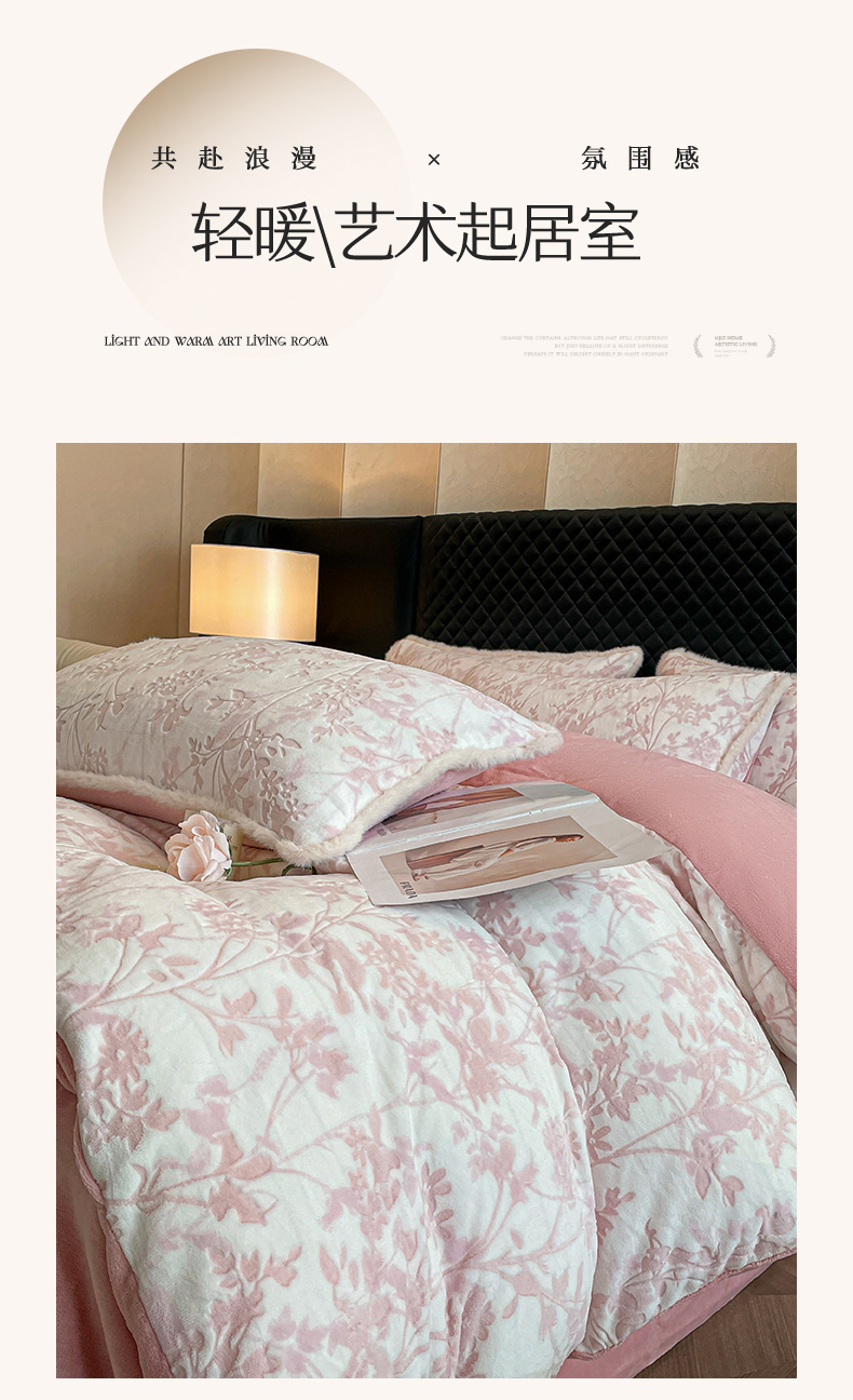 (总)798家纺 2025新款高克重牛奶绒工艺款枕套绒边款四件套