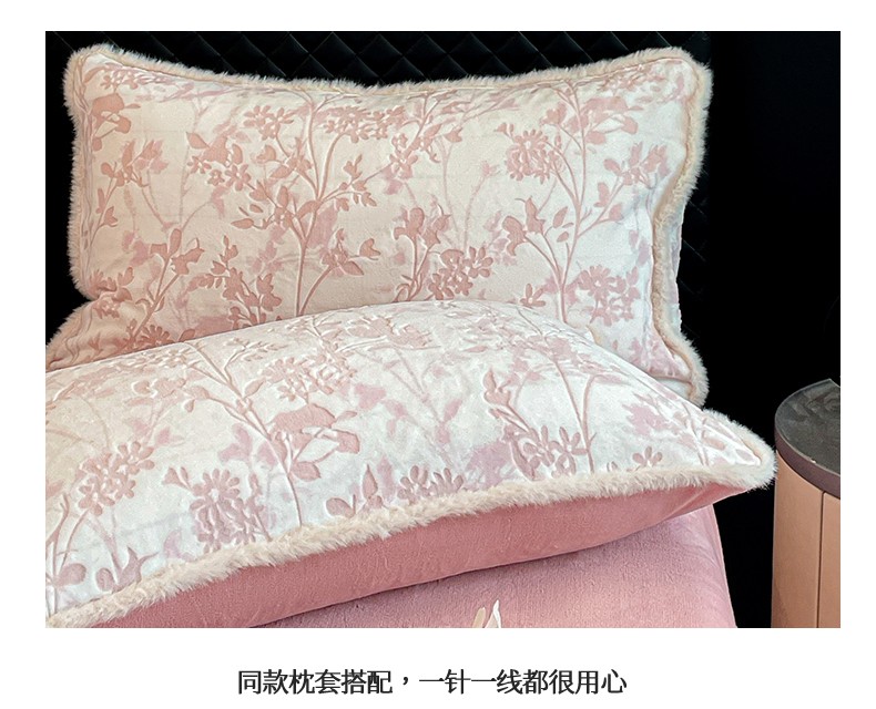 商品名称:(总)798家纺 2025新款高克重牛奶绒工艺款枕套绒边款四件套