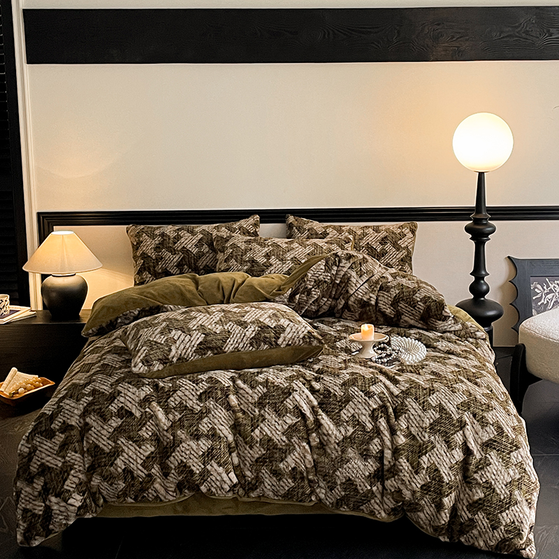 798家纺 2025新款兔毛印花四件套美拉德系列 美拉德-连枝奶黄