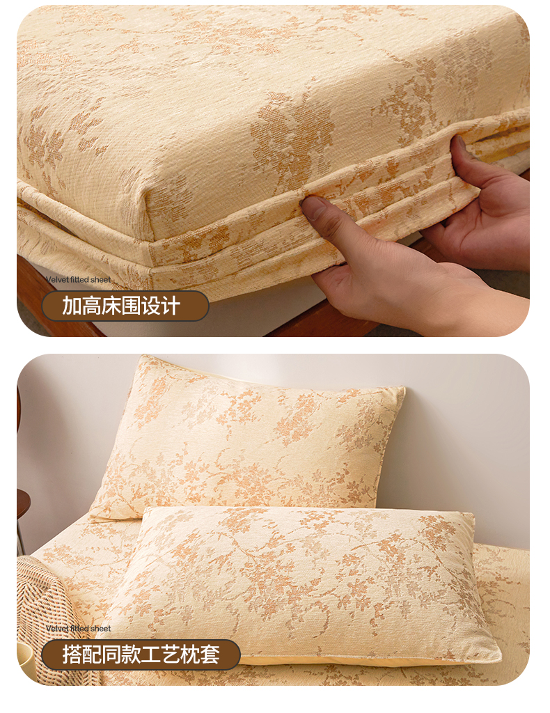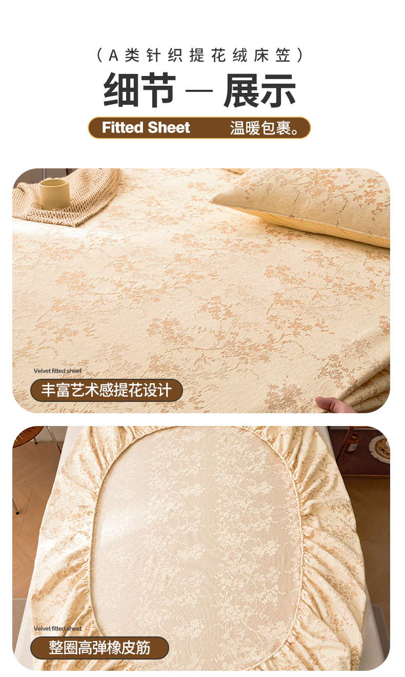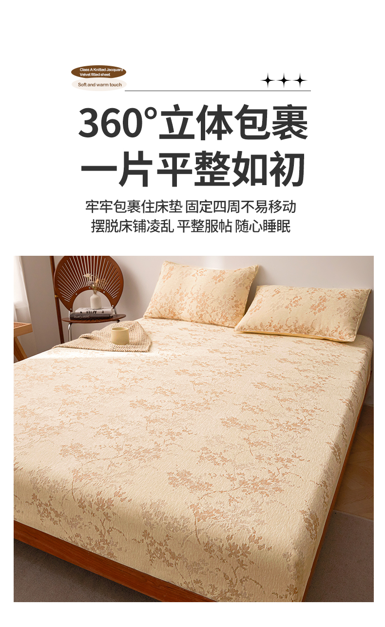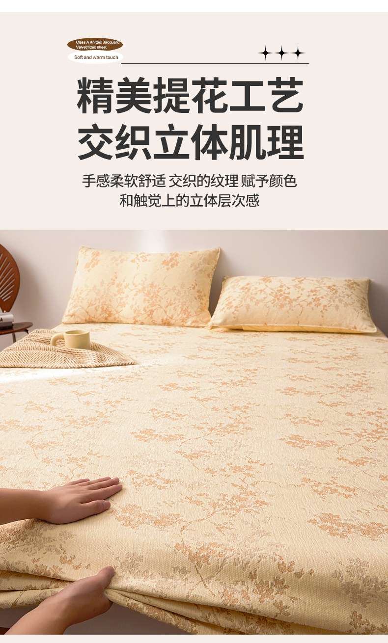 2024新款针织提花绒床笠-叶语 叶语 奶黄